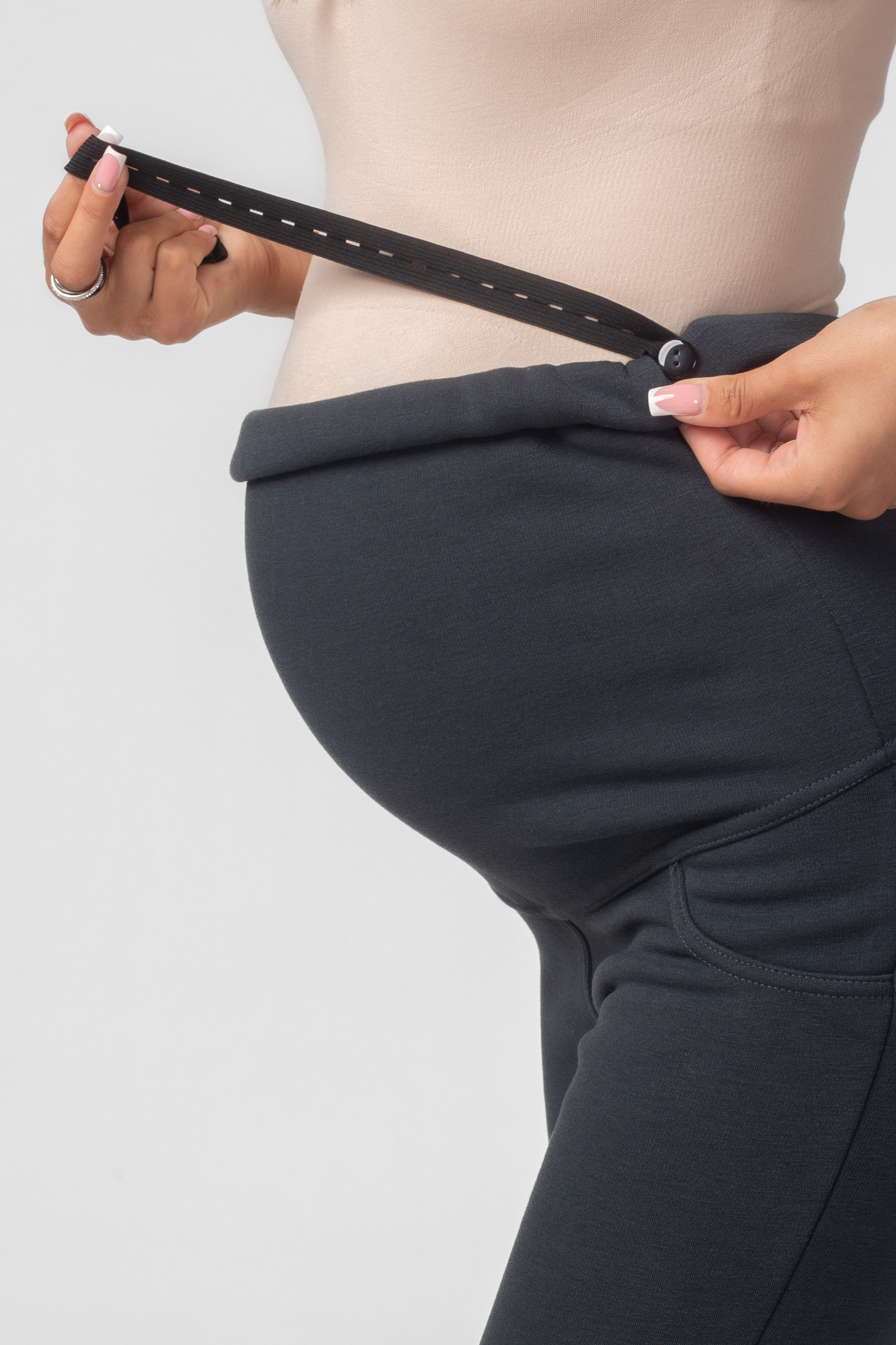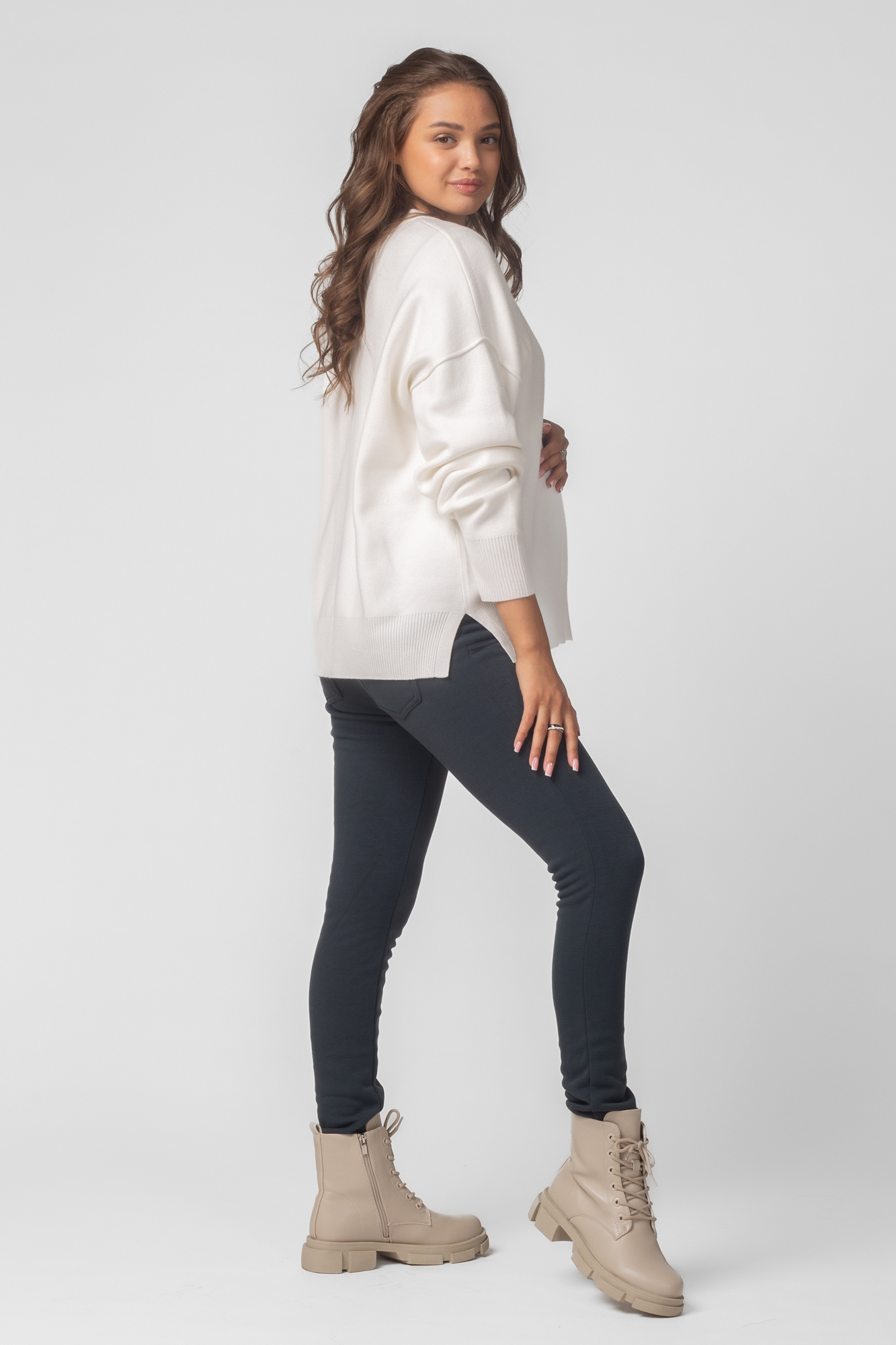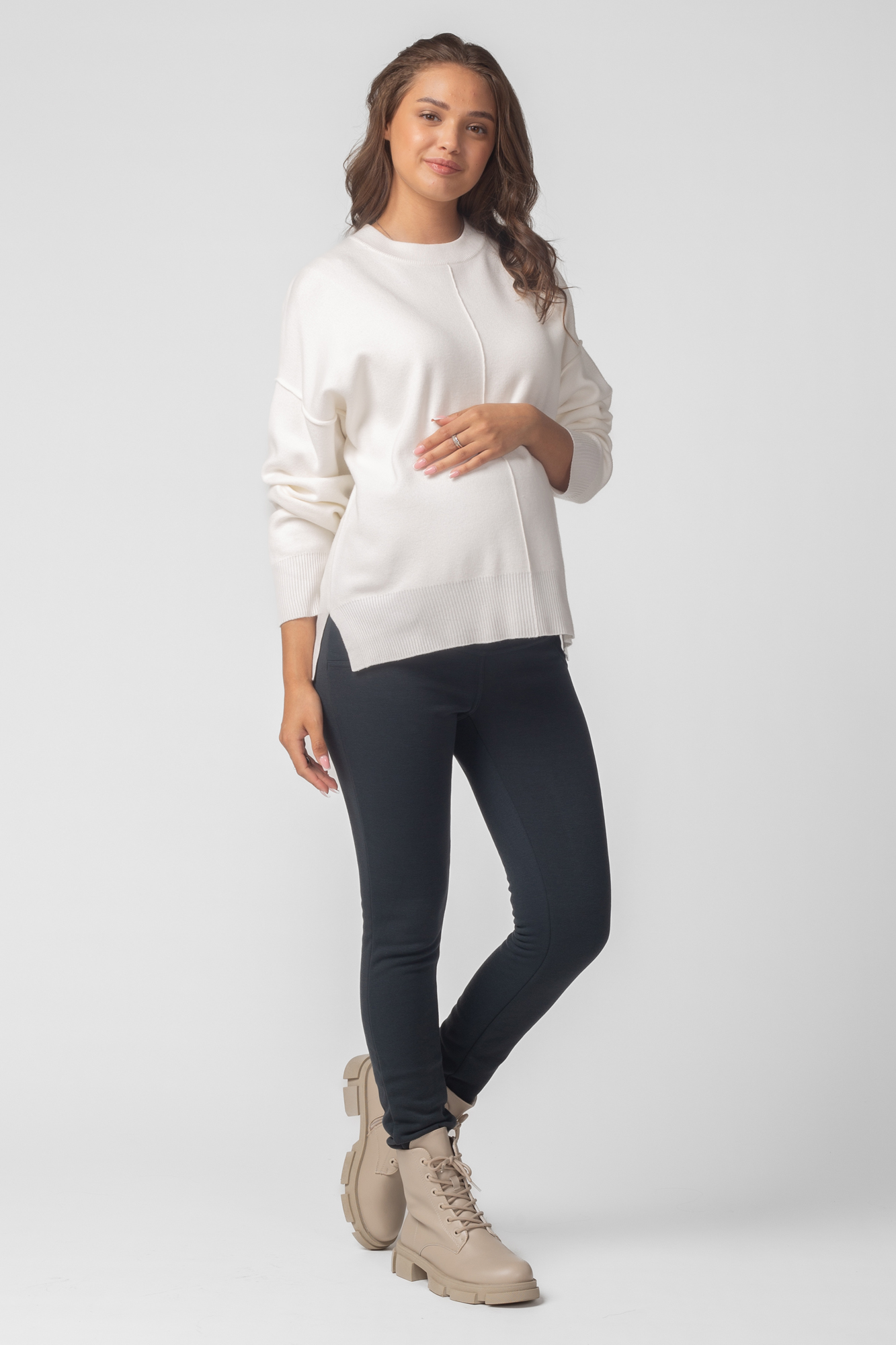 Утепленные леггинсы из плотного джерси с мехом для будущих мам. Эластичный и широкий бандаж позволит чувствовать себя комфортно на любом сроке беременности и после неё. Для регулировки объема предусмотрена перфорированная резинка, перестегивающаяся на пуговицу, продетая в пояс изделия.