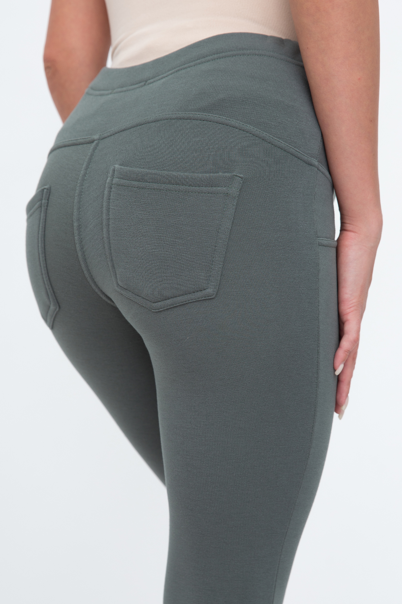 Утепленные леггинсы из плотного джерси с мехом для будущих мам. Эластичный и широкий бандаж позволит чувствовать себя комфортно на любом сроке беременности и после неё. Для регулировки объема предусмотрена перфорированная резинка, перестегивающаяся на пуговицу, продетая в пояс изделия.