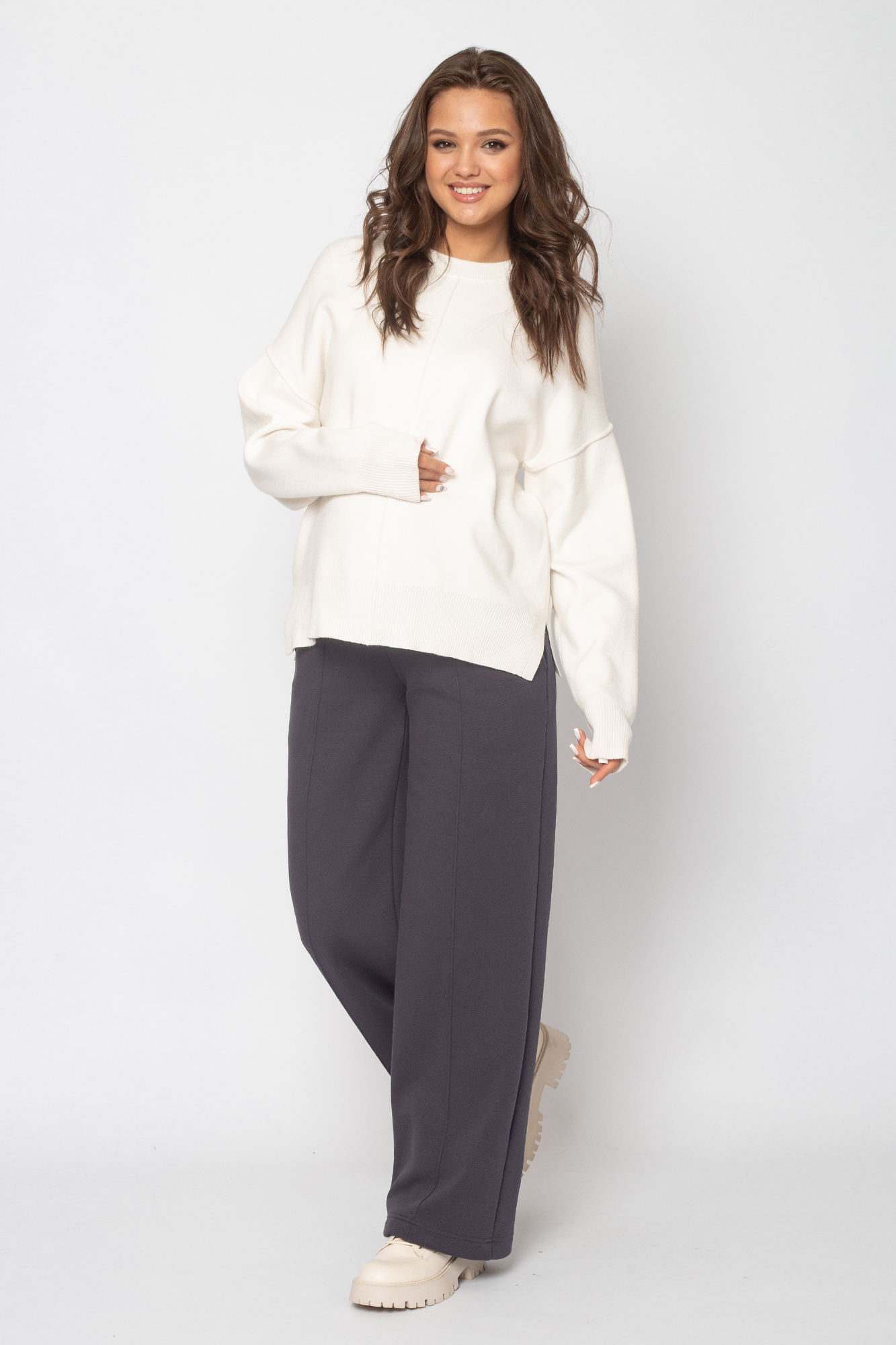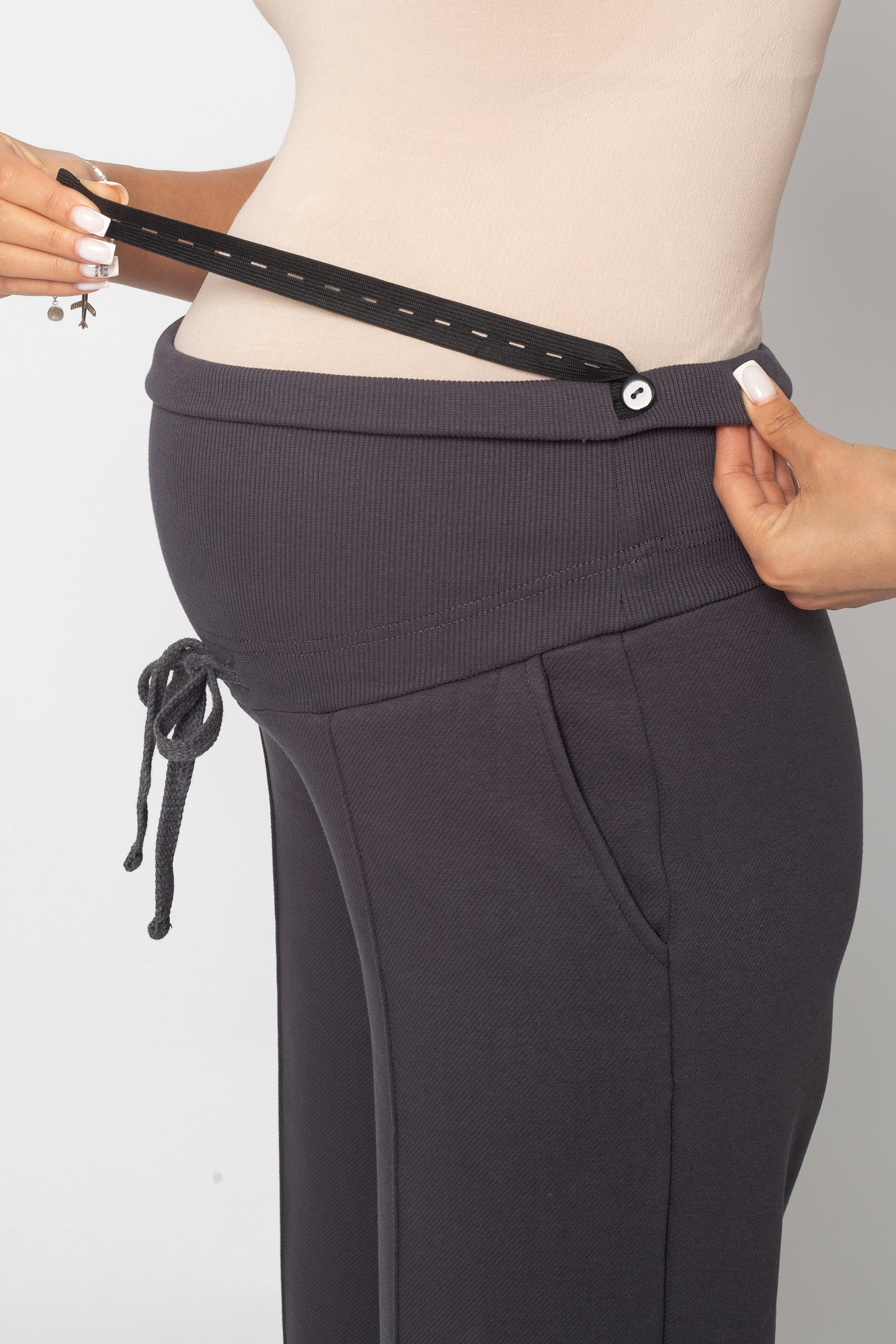 Брюки для беременных теплые выполнены из футера с еврофлисом. Состав: 60% Хлопок 35% Полиэстер 5% Лайкра. Стильные повседневные брюки имеют высокий эластичный пояс бандаж, он мягко и деликатно поддерживает растущий животик. Объем вставки под живот регулируется шнурками в поясе и перфорированной резинкой, которая перестегивается на пуговицу, что позволяет носить флисовые штаны от начала до конца беременности и после родов. Свободный крой палаццо, боковые карманы и стрелки спереди делают штаны любимой вещью в базовом гардеробе беременной женщины. Широкие брюки свободно сидят на бедрах, позволяя коже дышать и обеспечивая максимальный комфорт в течение всего дня. Удобные трикотажные брюки для будущей мамы подойдут на осень и демисезон, согреют зимой в непогоду. Размерная линейка укомплектована полностью и включает большие размеры. Теплые плотные штаны станут отличным дополнением вашего гардероба и помогут вам оставаться стильной, сохраняя комфорт в течение всей беременности.