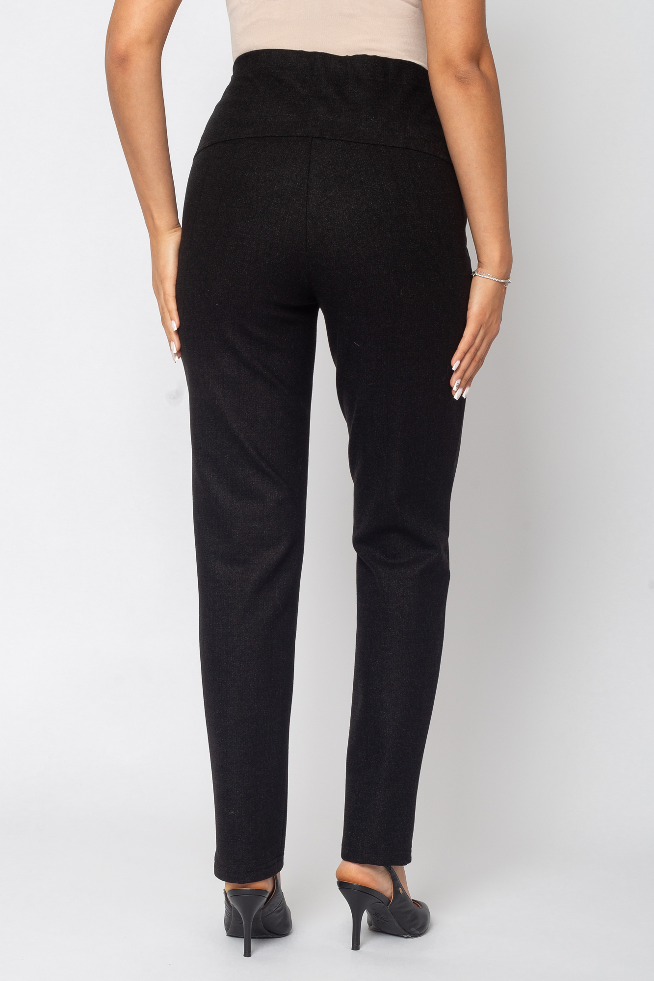 Зауженные брюки для беременных сшиты из теплого трикотажа джерси с начесом. Состав: 65% Вискоза 30% Полиэстер 5% Лайкра. Стильная трикотажная модель для повседневного гардероба будущей мамы. Женские зимние брюки с завышенной талией оснащены поясом, выполняющим функцию бандажа. Пояс можно регулировать по мере роста животика с помощью скрытой резинки на пуговице. Такие штаны подойдут на любой срок беременности, а также и после нее. Крой брюк зауженный, спереди - отстроченные стрелки, высокая посадка. Предусмотрены карманы. Классические брюки отлично подходят для повседневных прогулок холодной осенью или зимой. В них будет комфортно в любую погоду или для офиса. Модель подойдет в качестве одежды женщинам больших размеров.