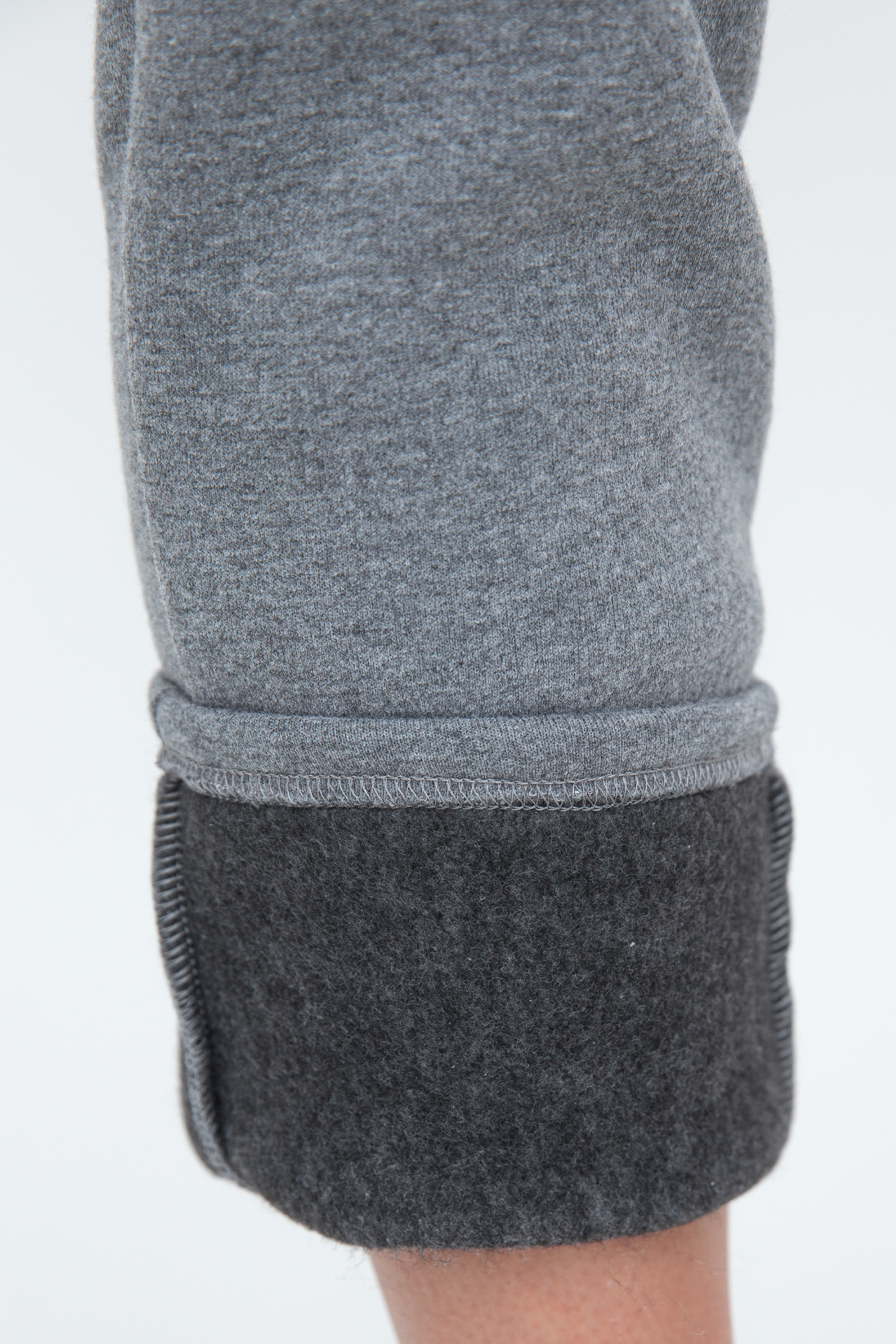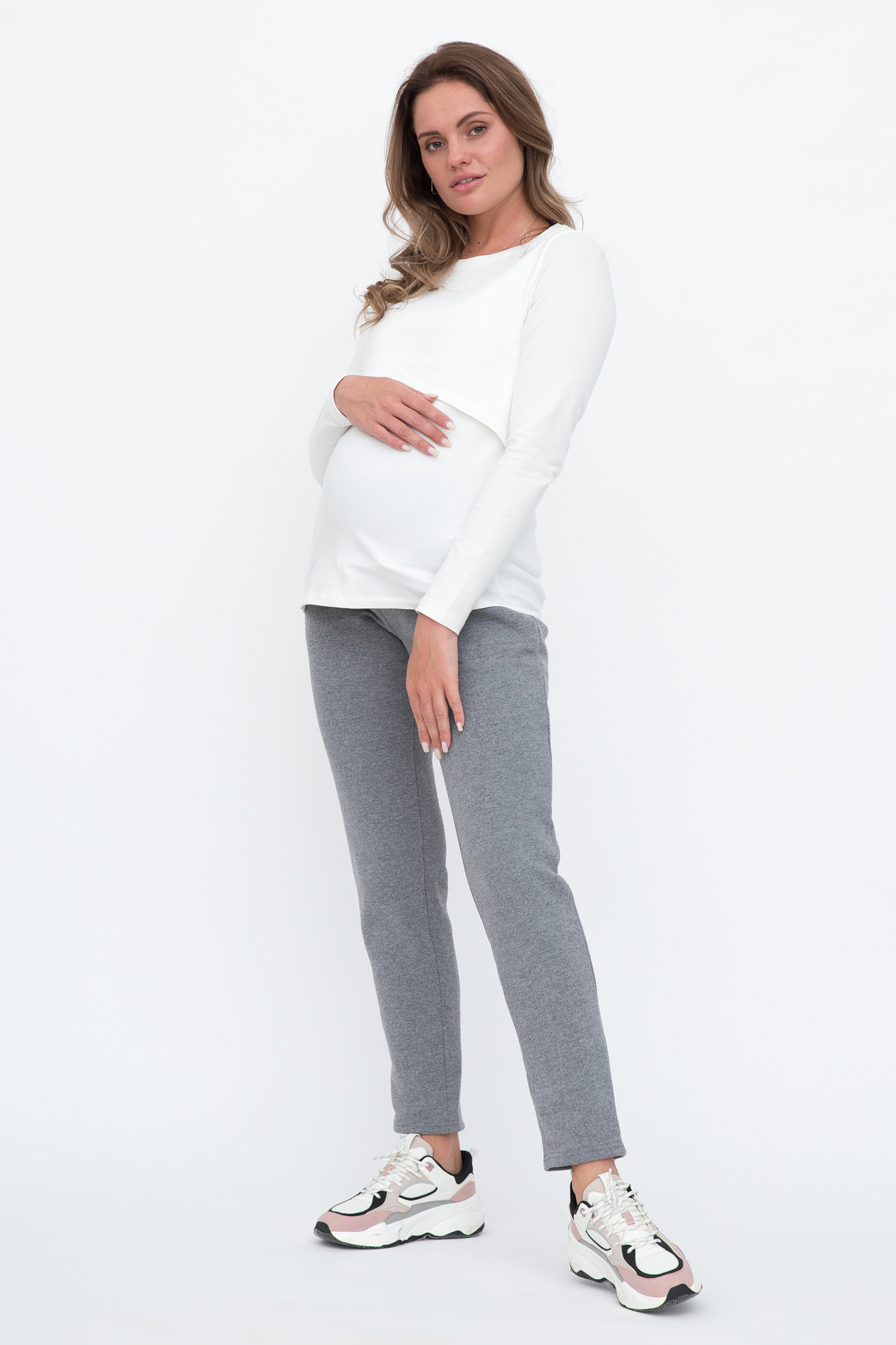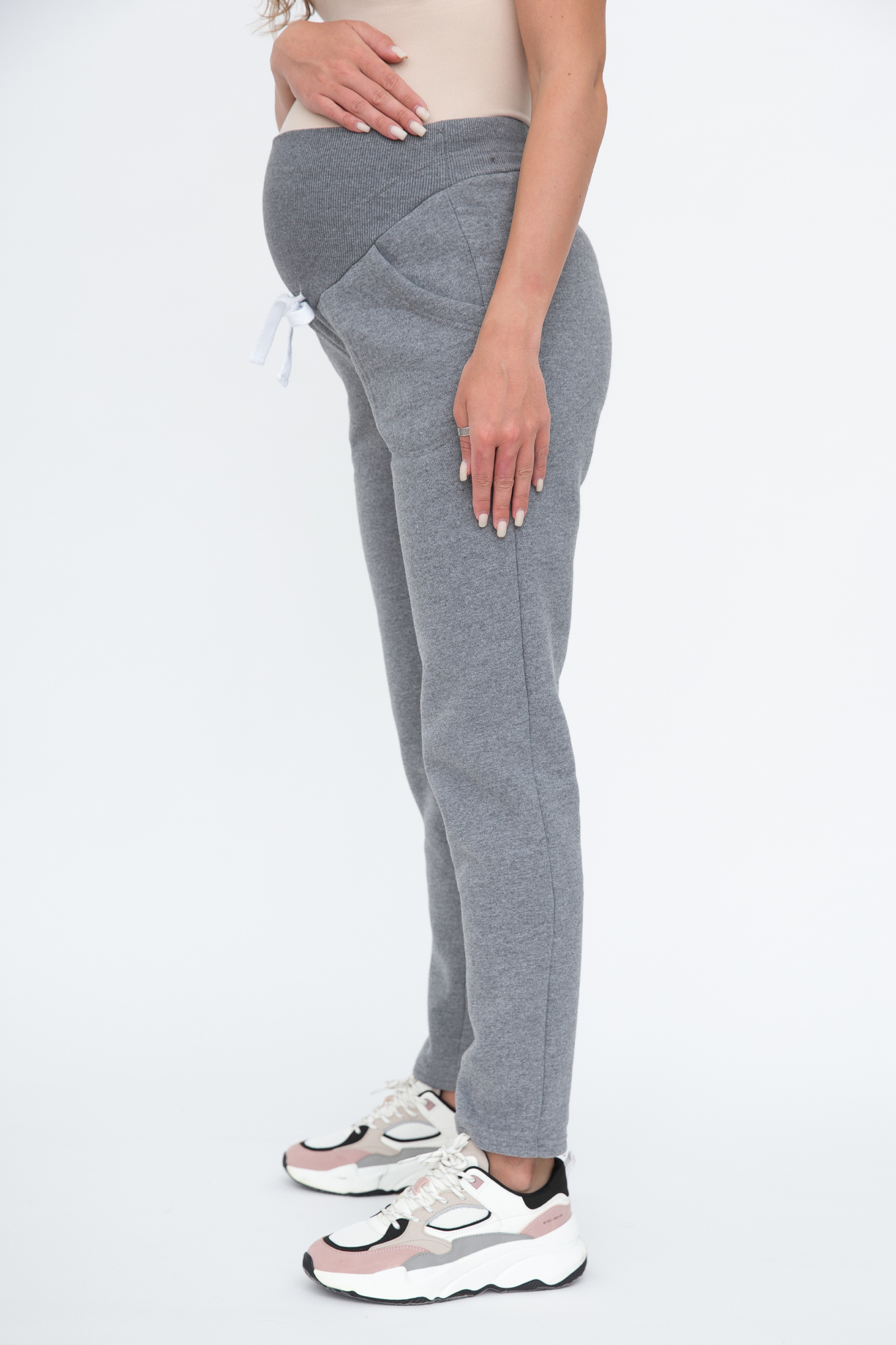 Стильные спортивные брюки из футера c начесом для беременных. Высокий эластичный бандаж мягко и деликатно поддерживает растущий животик. Объем регулируется шнурками в поясе и перфорированной резинкой, перестегивающейся на пуговицу, что позволяет носить брюки от начала до конца беременности и после родов. Невероятно комфортная модель для прогулок, занятий спортом и просто на каждый день.