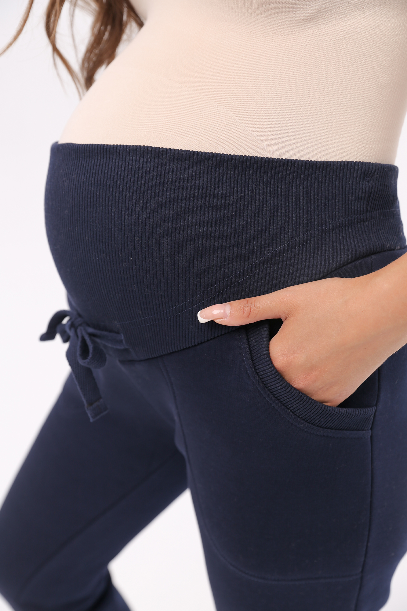 Стильные спортивные брюки-джоггеры из футера c начесом для беременных. Высокий эластичный бандаж мягко и деликатно поддерживает растущий животик. Объем регулируется шнурками в поясе и перфорированной резинкой, перестегивающейся на пуговицу, что позволяет носить брюки от начала до конца беременности и после родов. Невероятно комфортная модель для прогулок, занятий спортом и просто на каждый день.
