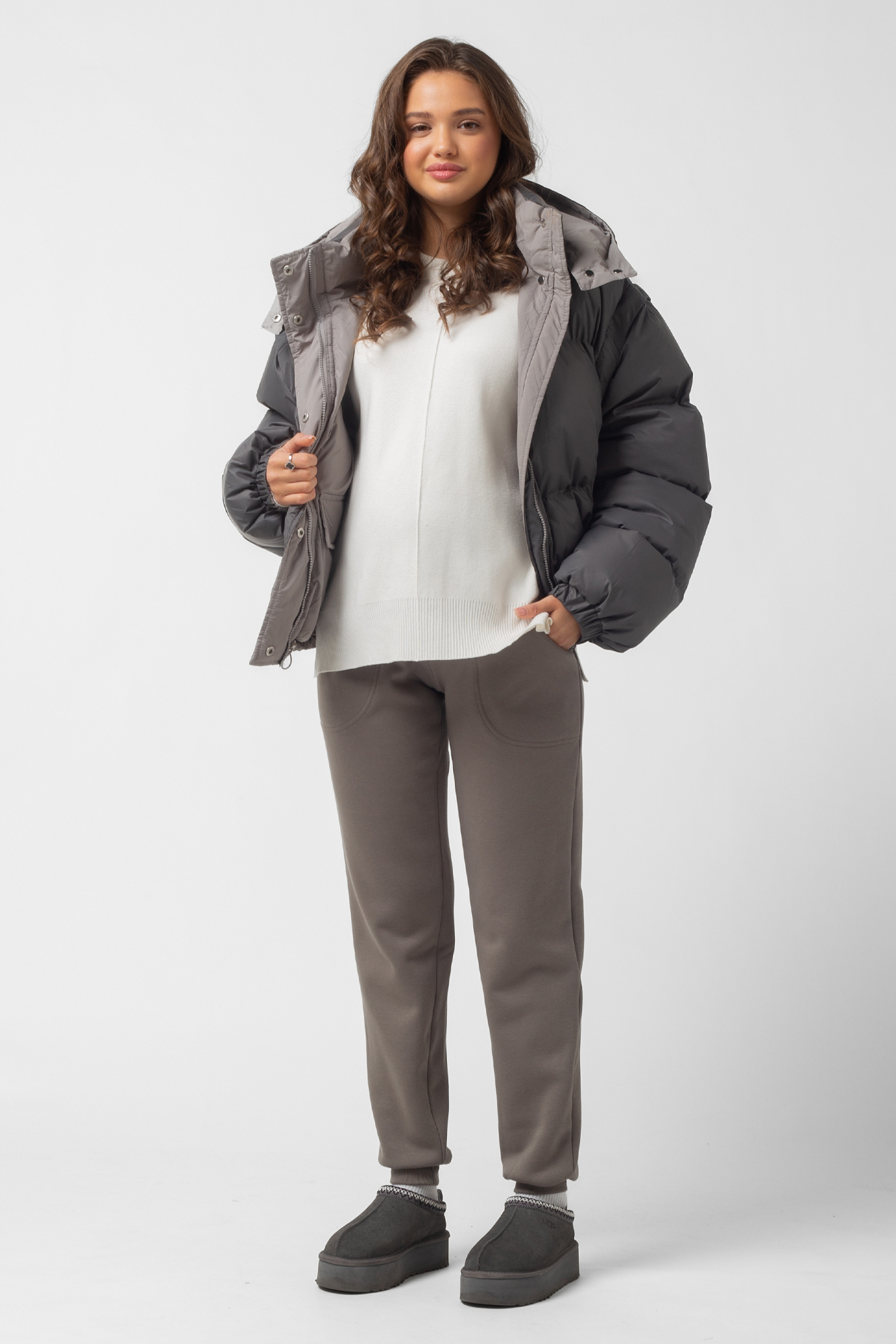 Спортивные брюки для беременных из премиального трехниточного футера "барашка". Ткань обладает высокой износостойкостью и не закатывается. Высокий трикотажный пояс-бандаж мягко и деликатно поддерживает растущий животик. Утепленные джоггеры оснащены шнурками в поясе и перфорированной резинкой, перестегивающейся на пуговицу, что позволяет носить теплые штаны от начала до конца беременности и после родов. На брюках глубокие боковые карманы и манжеты по низу брючин. Брючки подходят на любой рост, длина регулируется подворотом манжета. Невероятно комфортная модель для прогулок, занятий спортом и просто на каждый день осенью или зимой. Брюки можно носить так же в качестве домашней одежды в холодное время года.