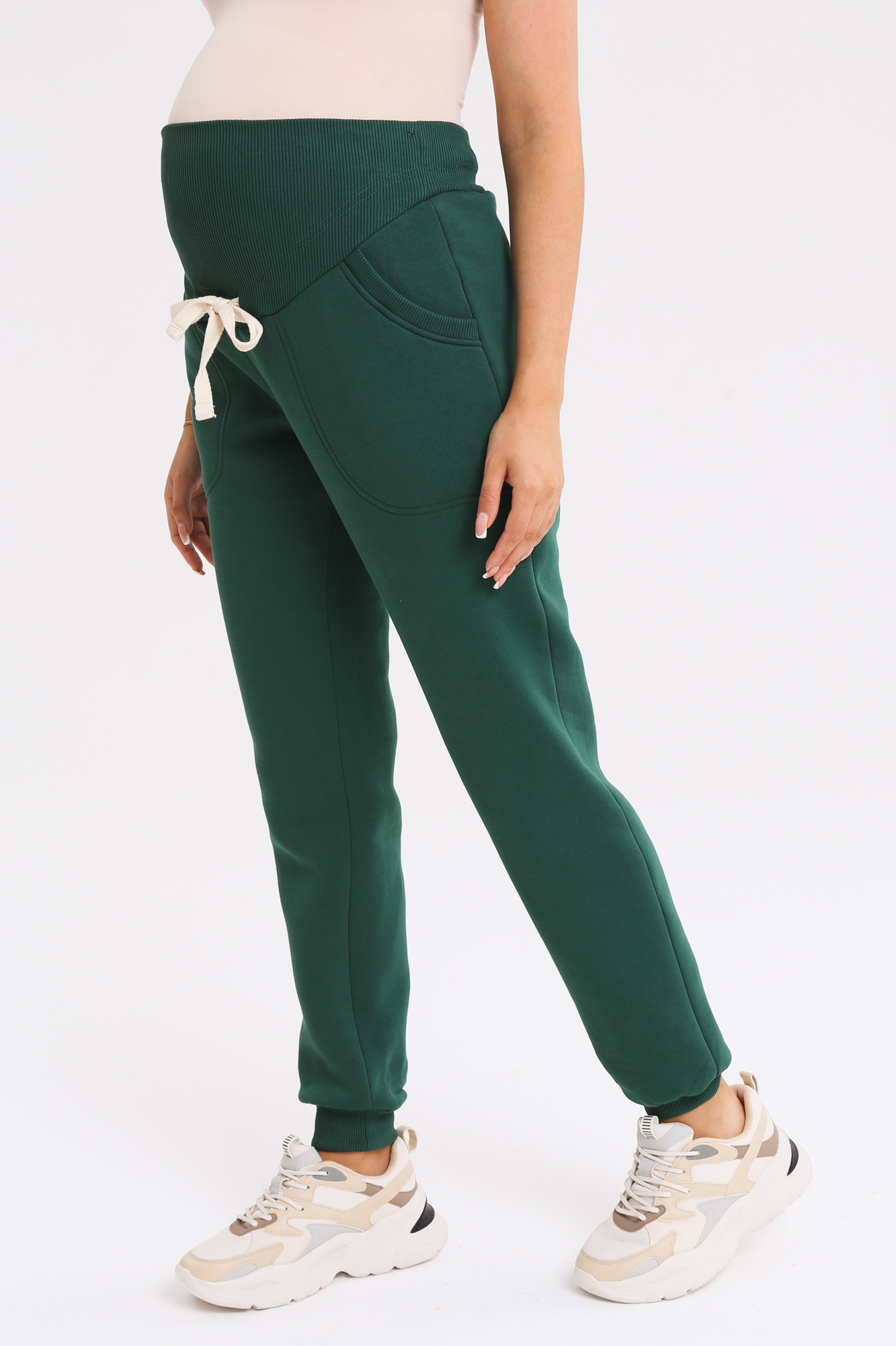 Утепленные спортивные брюки для беременных 16024 темно-зеленый