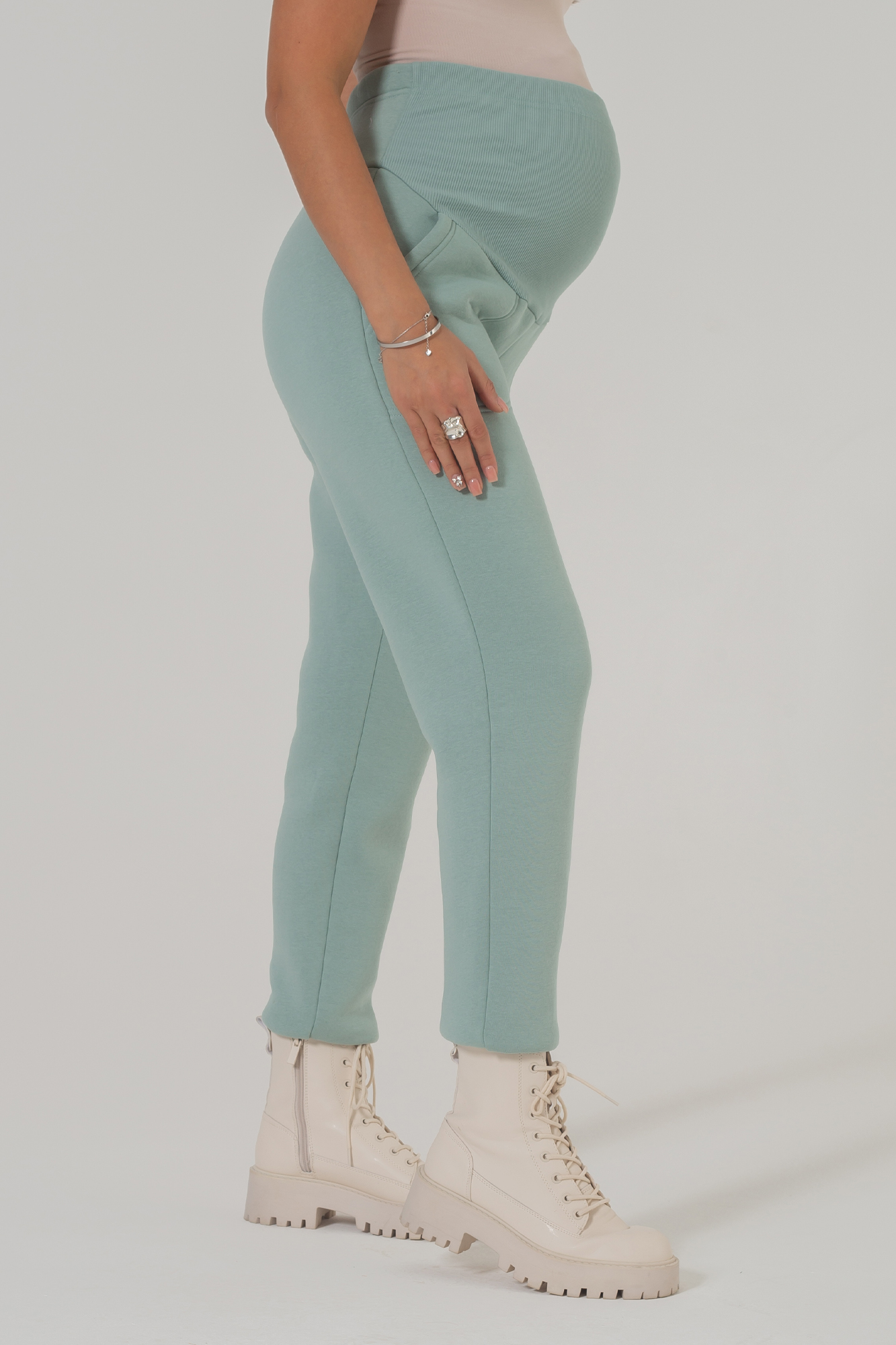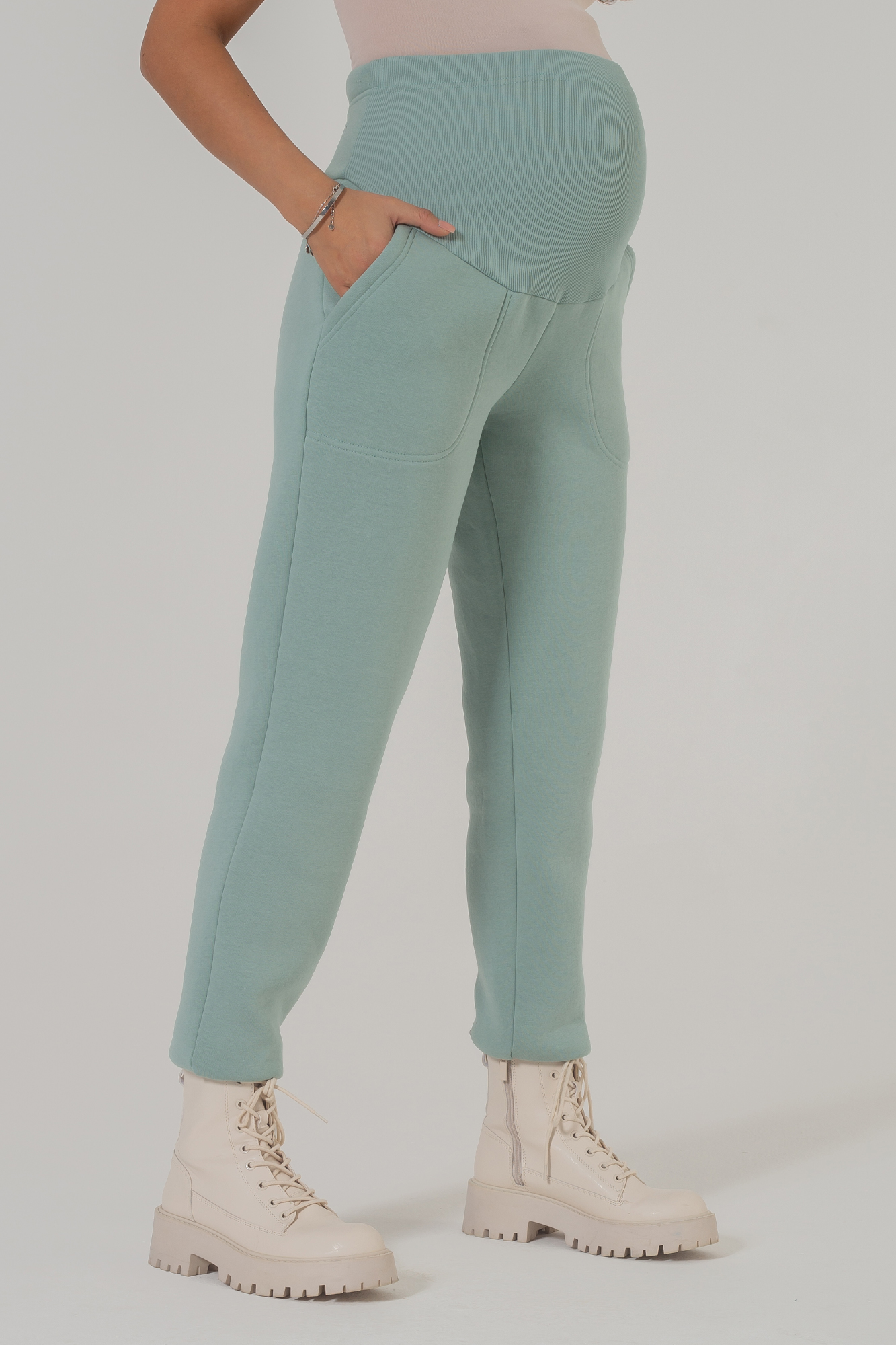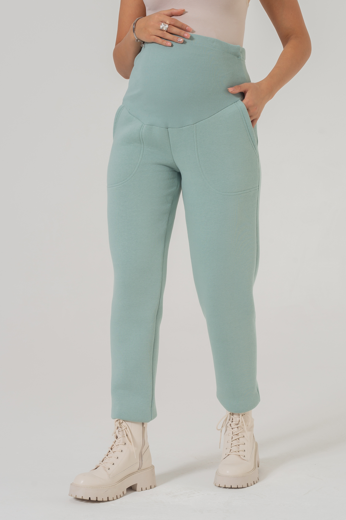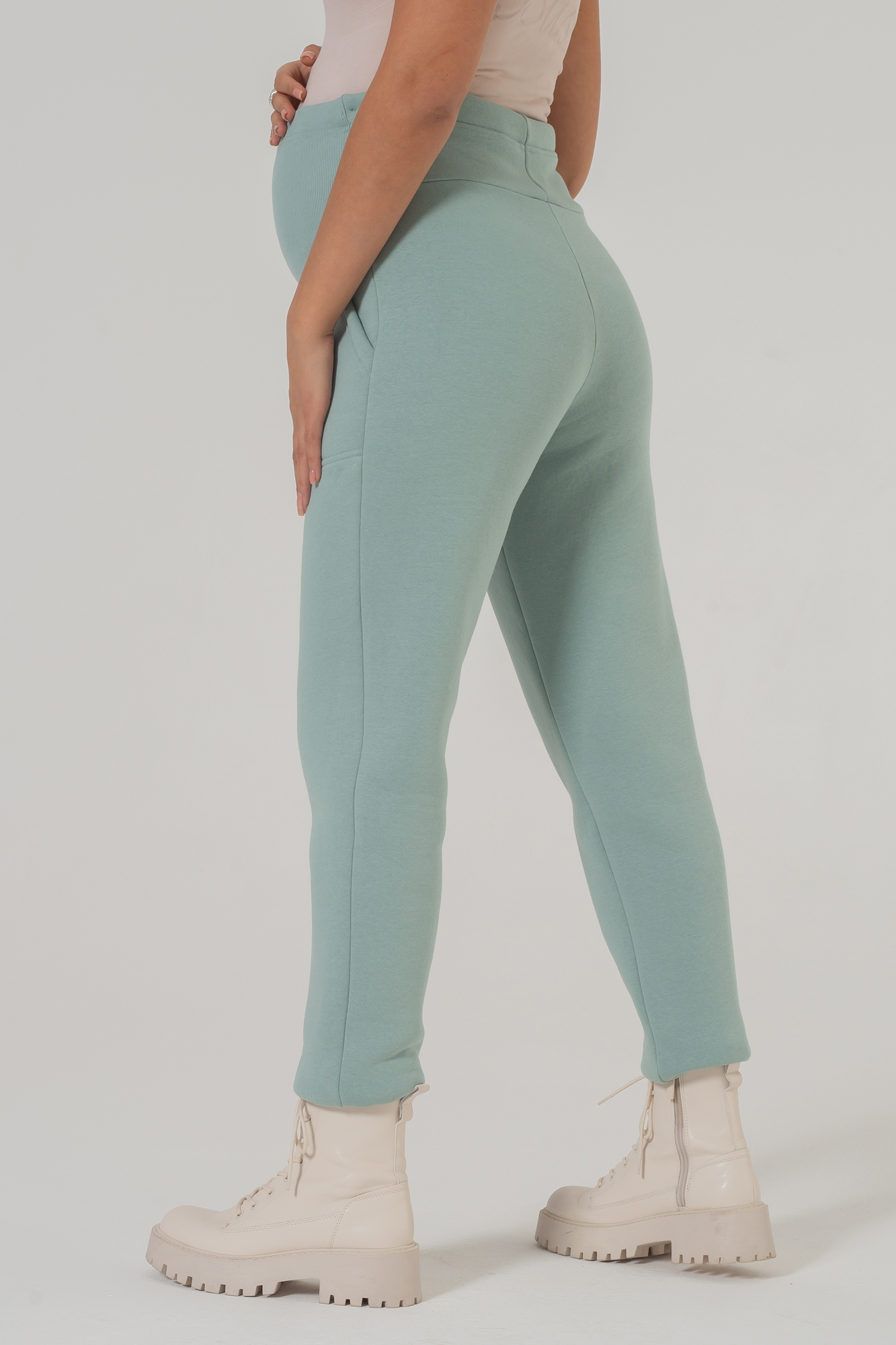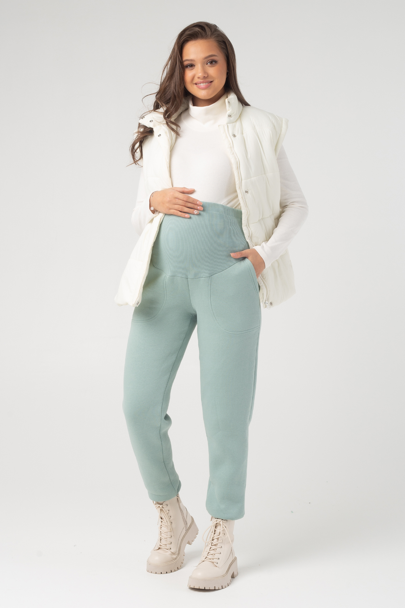 Утепленные брюки для беременных выполнены из мягкого трикотажа на основе натурального хлопка. Ткань с начесом невероятно теплая, приятная на ощупь, поэтому в штанах комфортно на протяжении целого дня. Слегка зауженный оверсайз фасон модели мягко подчеркивает фигуру, позволяет сочетать вещь с высокими сапогами, ботинками и кроссовками. Высокий эластичный пояс с регулировкой объема рассчитан на весь период беременности. Трикотажные хлопковые брюки подойдут для повседневного образа или занятий спортом в демисезонный период весны-осени и зимой. Если позволяет дресс-код, модель можно смело надеть в офис, а также выбрать как вариант удобного наряда для встречи с подругами. Штаны отлично смотрятся со спортивными толстовками и худи, свитерами и водолазками, рубашками и лонгсливами. В линейке предлагается несколько стильных расцветок, включая базовую черную.