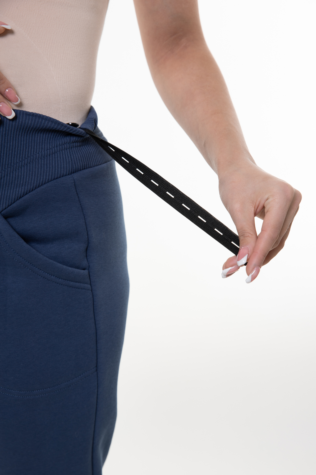 Стильные спортивные брюки из футера c начесом для беременных. Высокий эластичный бандаж мягко и деликатно поддерживает растущий животик. Объем регулируется шнурками в поясе и перфорированной резинкой, перестегивающейся на пуговицу, что позволяет носить брюки от начала до конца беременности и после родов. Невероятно комфортная модель для прогулок, занятий спортом и просто на каждый день.