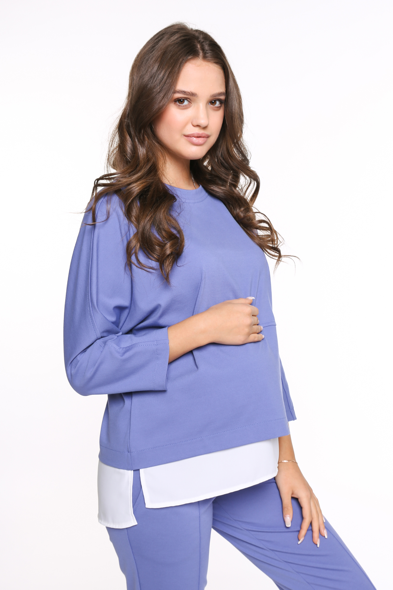 Стильный костюм для беременных выполнен из высококачественного джерси. Костюм состоит из оригинального двуслойного джемпера свободного кроя и брюк с высокой посадкой. Объем регулируется с помощью перфорированной резинки перестегивающейся на пуговицу. Брюки декорированы отстроченными стрпелками. Идеальная посадка на протяжении всей беременности и после родов. Костюм подойдет для офиса, прогулок и просто на каждый день.