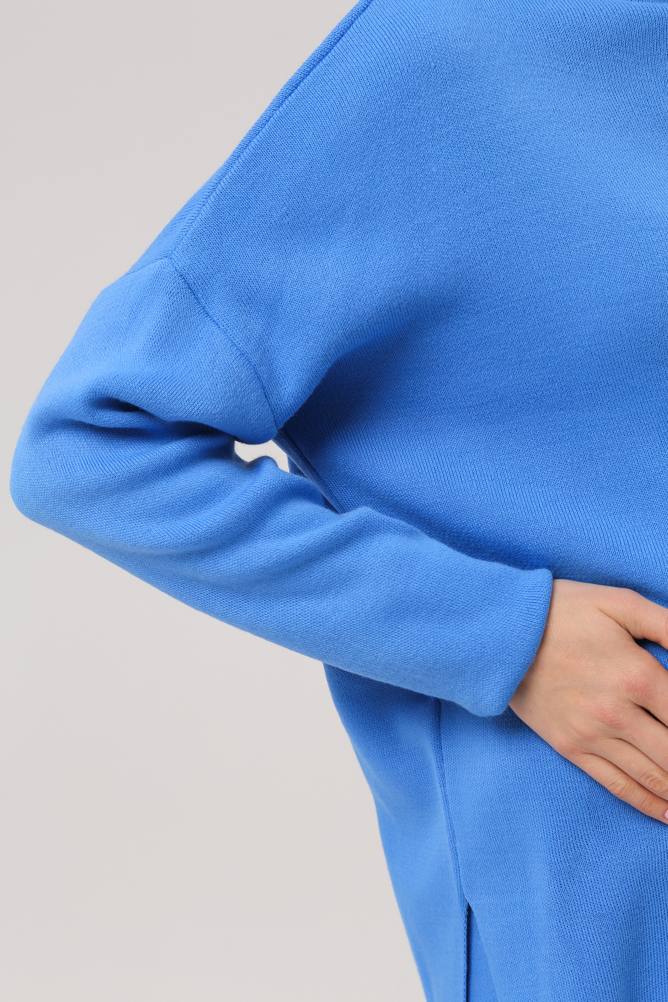 Вязаный костюм для беременных из качественной теплой пряжи на основе шерсти и акрила. Женский костюм из трикотажа - удачный выбор для повседневного ношения в холодное время года. В комплект для будущих мам включены кофта и штаны. Джемпер с аккуратным воротом – стойкой, со спущенной линией плеча слегка удлинен сзади, по бокам - небольшие разрезы. Штаны широкие, прямого кроя, с высоким поясом, который выполняет роль бандажа, и эластичной резинкой. Модель оверсайз рассчитана на весь период беременности. Брючный костюм для беременных подойдет для прогулок, офиса или ношения дома. В осенний и весенний периоды он пригодится на выписку. Модель предлагается в нескольких однотонных расцветках и одном размере (one size). Данная модель рассчитана на рост 170-175.