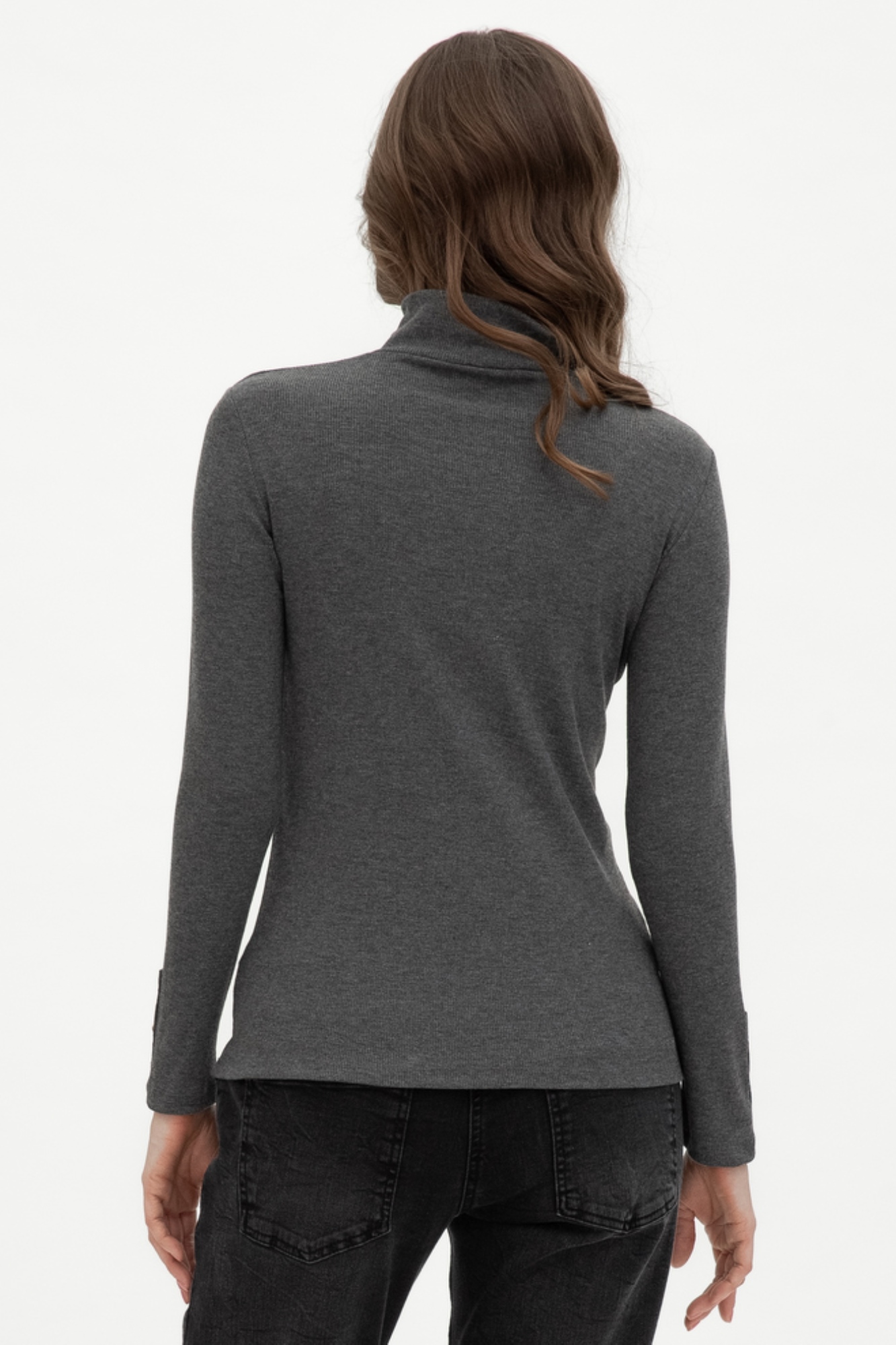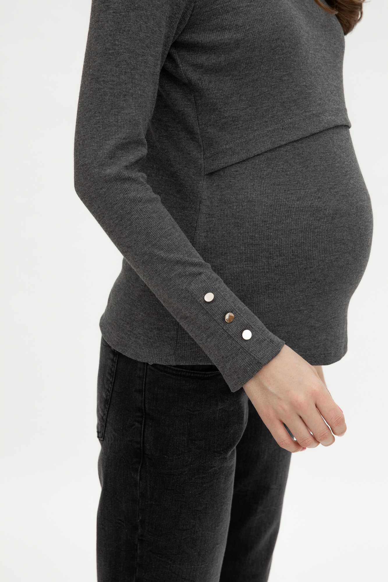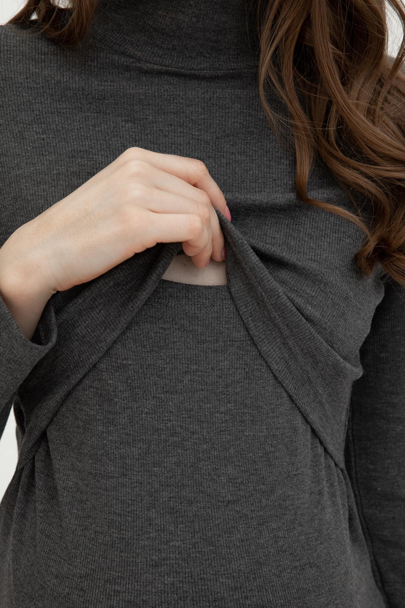 Базовый лонгслив в рубчик для беременных и кормящих. Детали: воротник-стойка, длинный рукав с декором. Специальная конструкция для кормления предоставляет возможность покормить малыша в любой ситуации с повышенным комфортом.