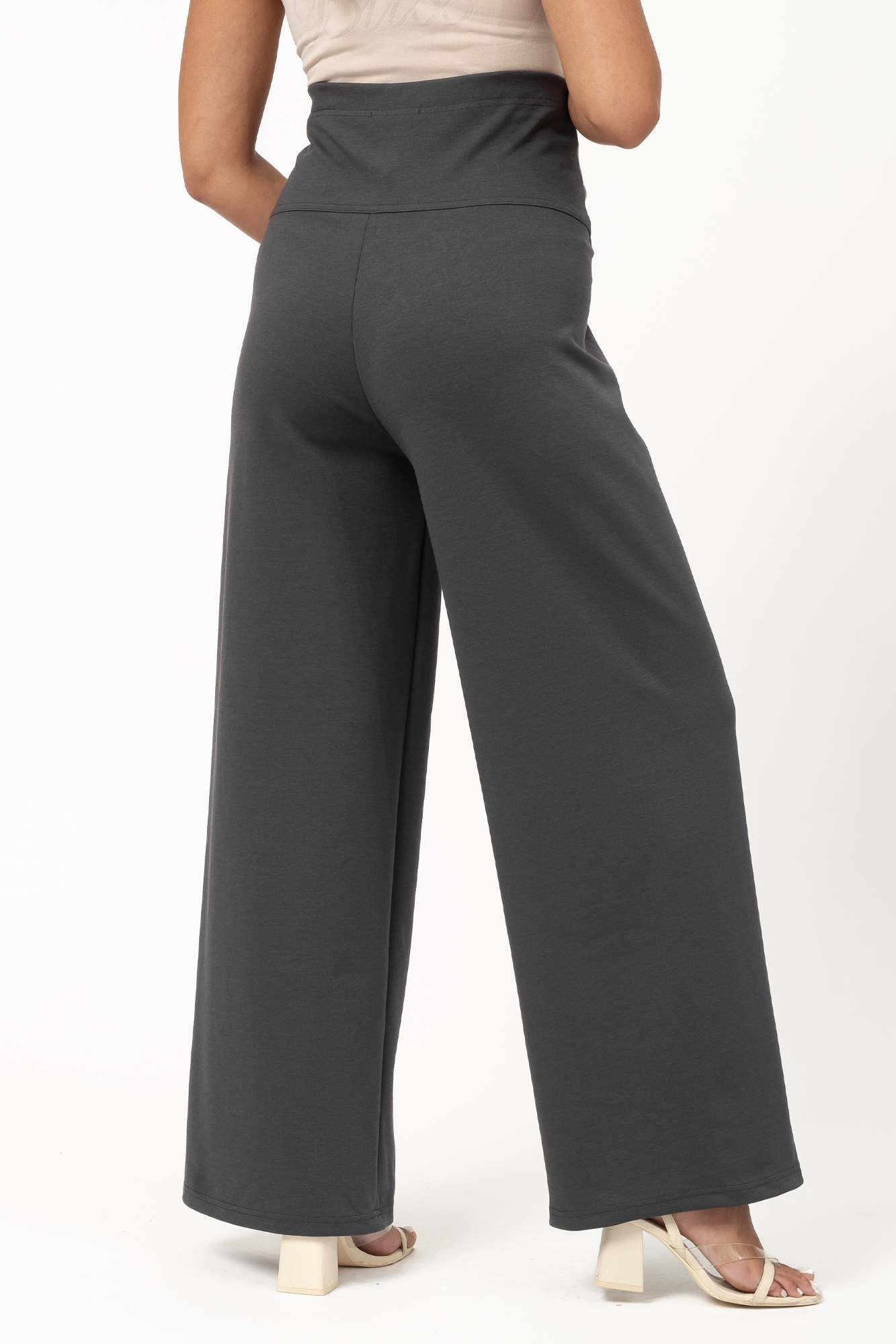 Широкие брюки для беременных сшиты из премиального трикотажа джерси. В его составе вискоза и полиэстер, которые придают ткани высокую износостойкость, устойчивость к появлению катышек и усадке. Классические брюки свободного кроя с высокой посадкой; высокий эластичный пояс оснащен регулировкой объема на резинке, поэтому модель можно носить на любом месяце беременности. Брюки идеально подходят для офиса, отлично сочетаются с деловой женской одеждой. Также они станут эффектным повседневным решением, а при грамотном подборе аксессуаров - стильным вариантом для праздника. Будущая мама может выбрать такие брюки для ношения прохладным летом, весной и осенью. Универсальная однотонная расцветка позволяет удачно комбинировать брюки с разными вещами.