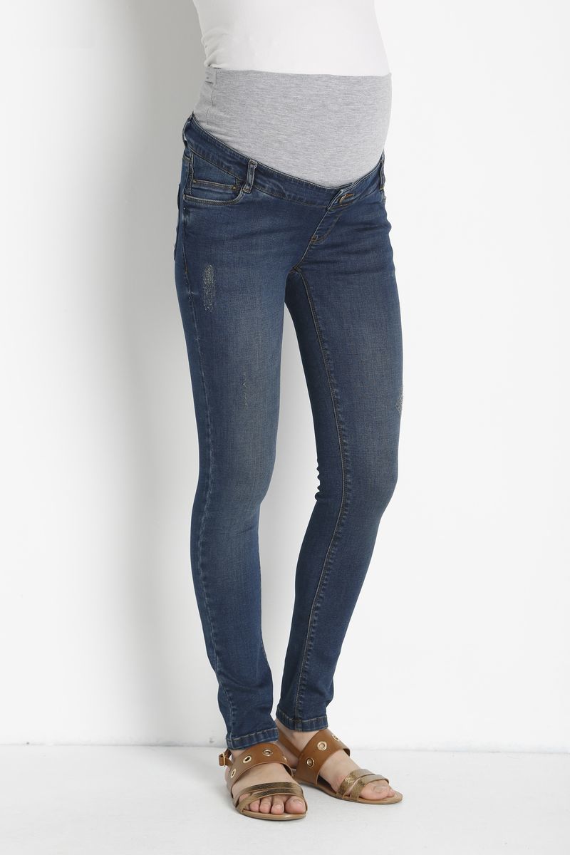 Стильные джинсы выполнены из стрейчевого денима средней плотности. Модель зауженного кроя, средняя посадка без застёжки, имитация пуговицы. Детали: высокая трикотажная вставка для животика, три кармана спереди и два накладных кармана сзади, шлевки для ремня.