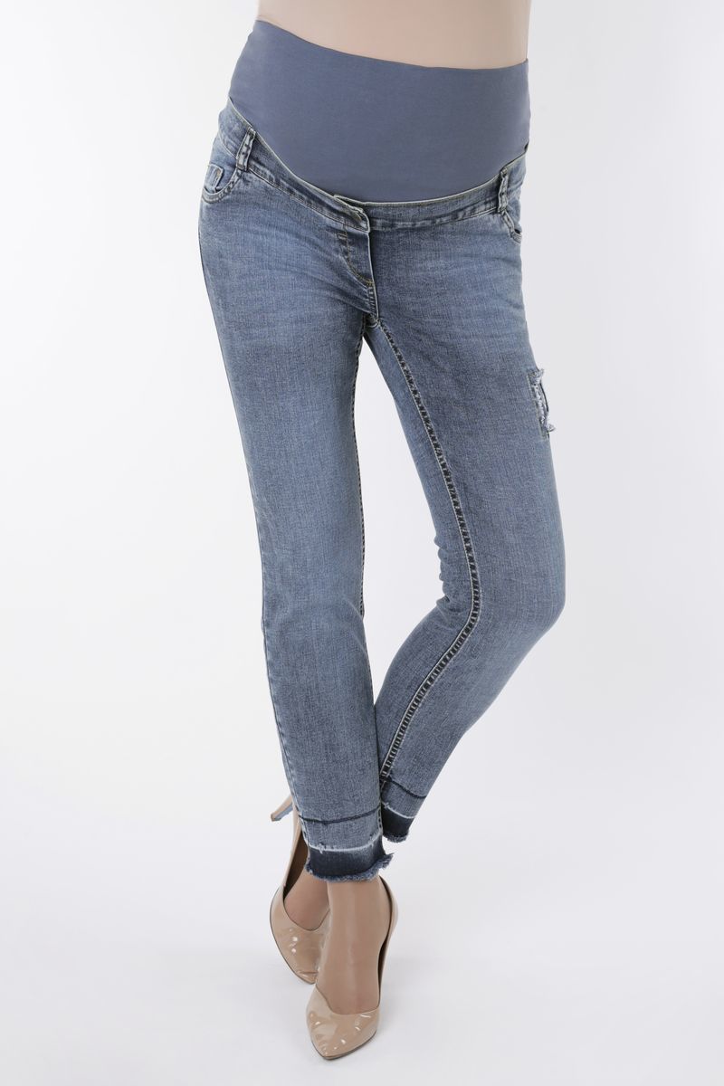 Стильные джинсы выполнены из стрейчевого денима средней плотности. Модель зауженного кроя, средняя посадка без застёжки, имитация пуговицы.Детали: высокая трикотажная вставка для животика, три кармана спереди и два накладных кармана сзади, шлевки для ремня.