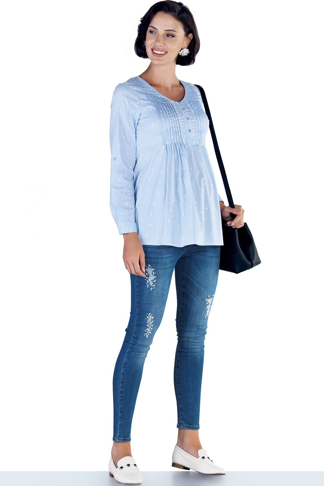 Джинсы — самый удобный и универсальный вид одежды, особенно для будущих мам. Стильные укороченные джинсы-Skinny выполнены из хлопковой, приятной к телу ткани. Удобная эластичная вставка на живот подходит на любой срок беременности, деликатно поддерживает ваш растущий животик снизу, не доставляя дискомфорта. Данную модель можно с удовольствием носить и после беременности.