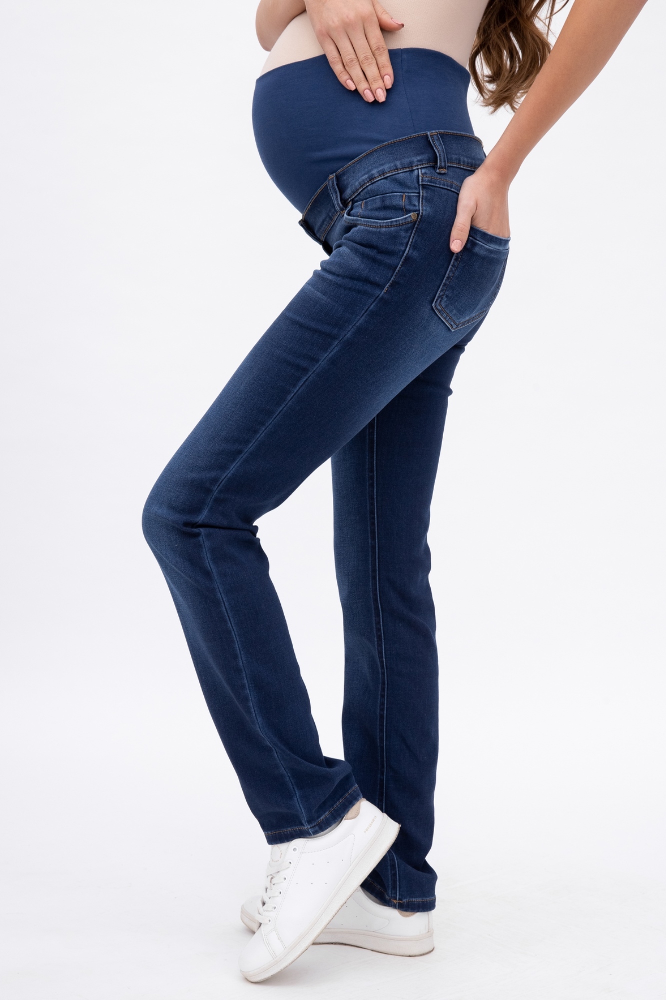 Модель прямого кроя, средняя посадка без застёжки. Джинсы выполнены из мягкого эластичного денима средней плотности, с внутренней стороны - флис. Детали: высокая трикотажная вставка для животика, имитация застежки на пуговицу, три кармана спереди и два накладных кармана сзади, шлевки для ремня.