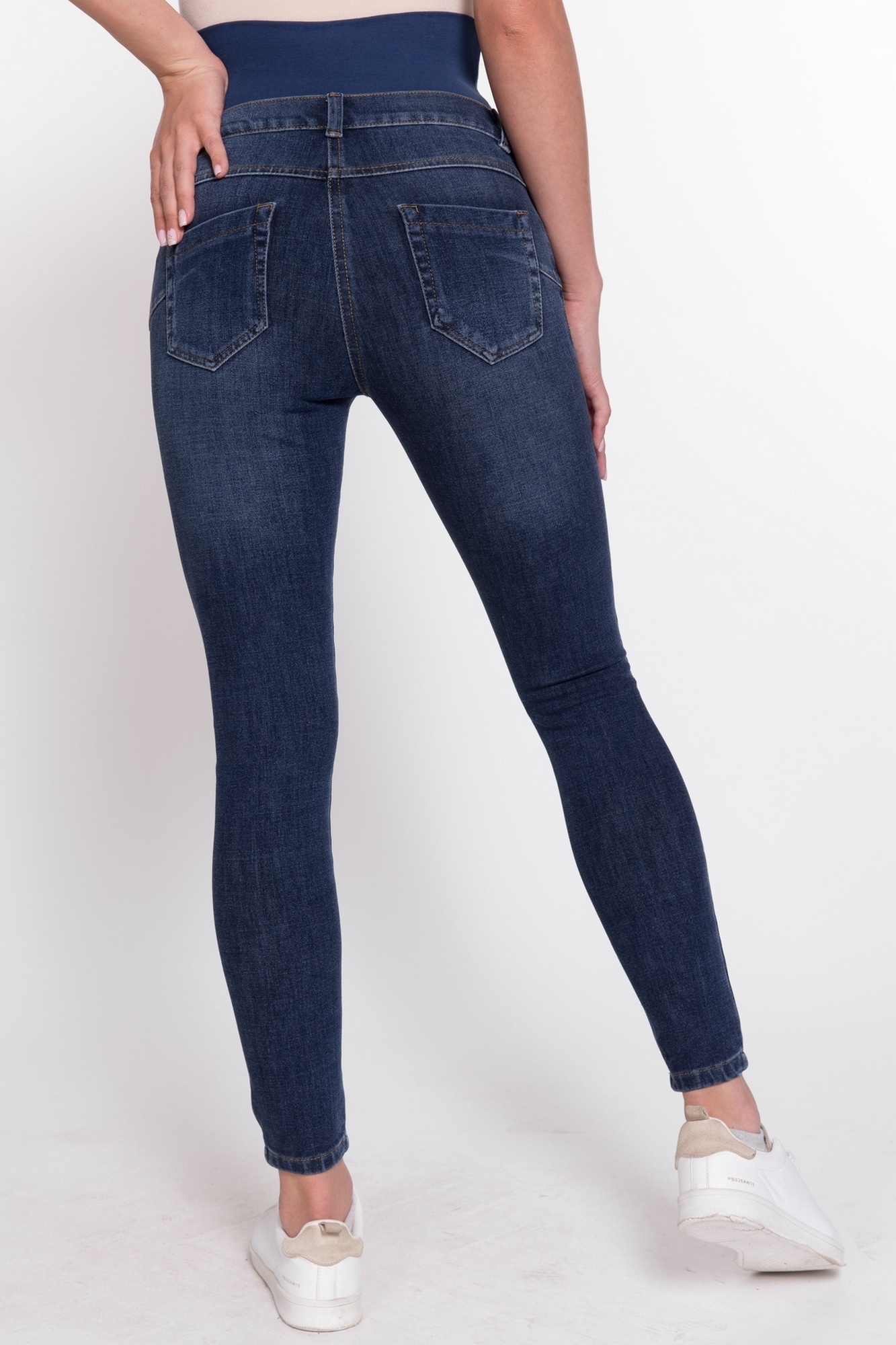 Узкие джинсы для будущих мам. Широкий бандаж великолепно поддерживает животик, вам будет комфортно на любом сроке беременности и после неё. На джинсах два кармана спереди и два накладных кармана сзади, шлевки для ремня.