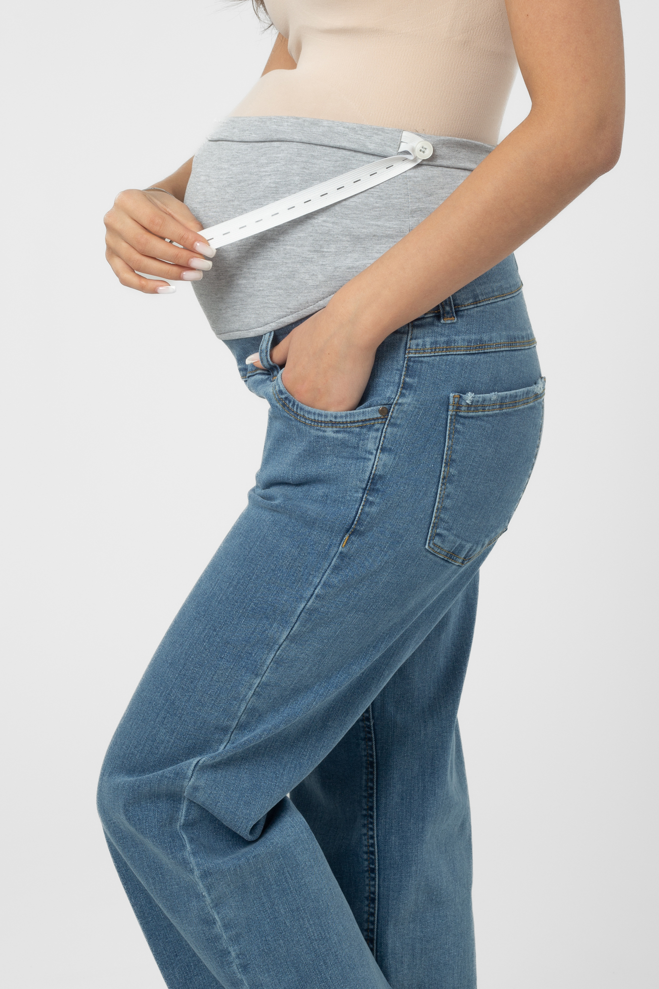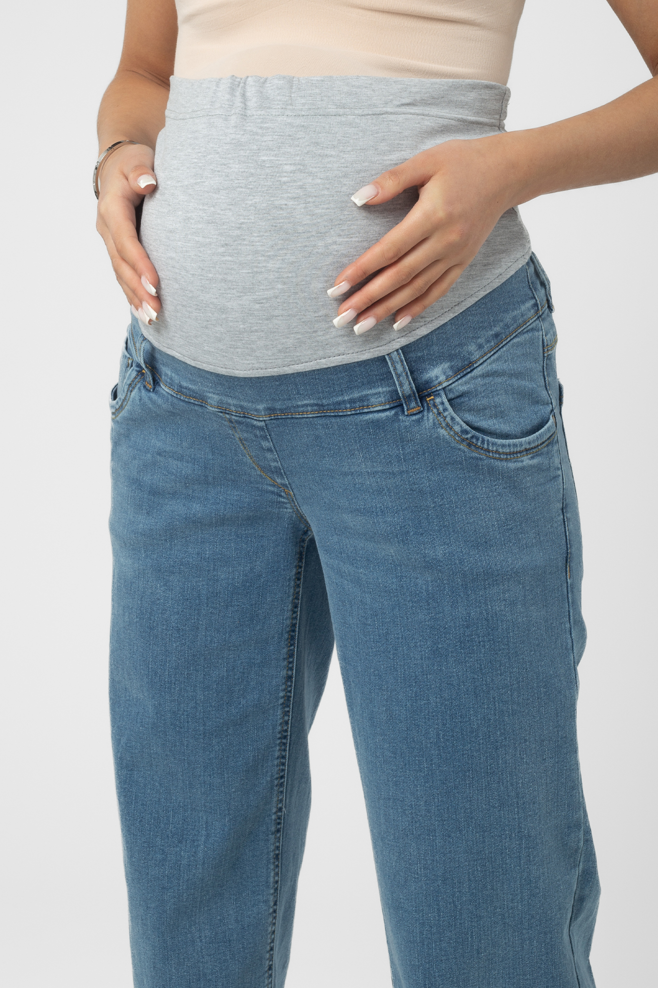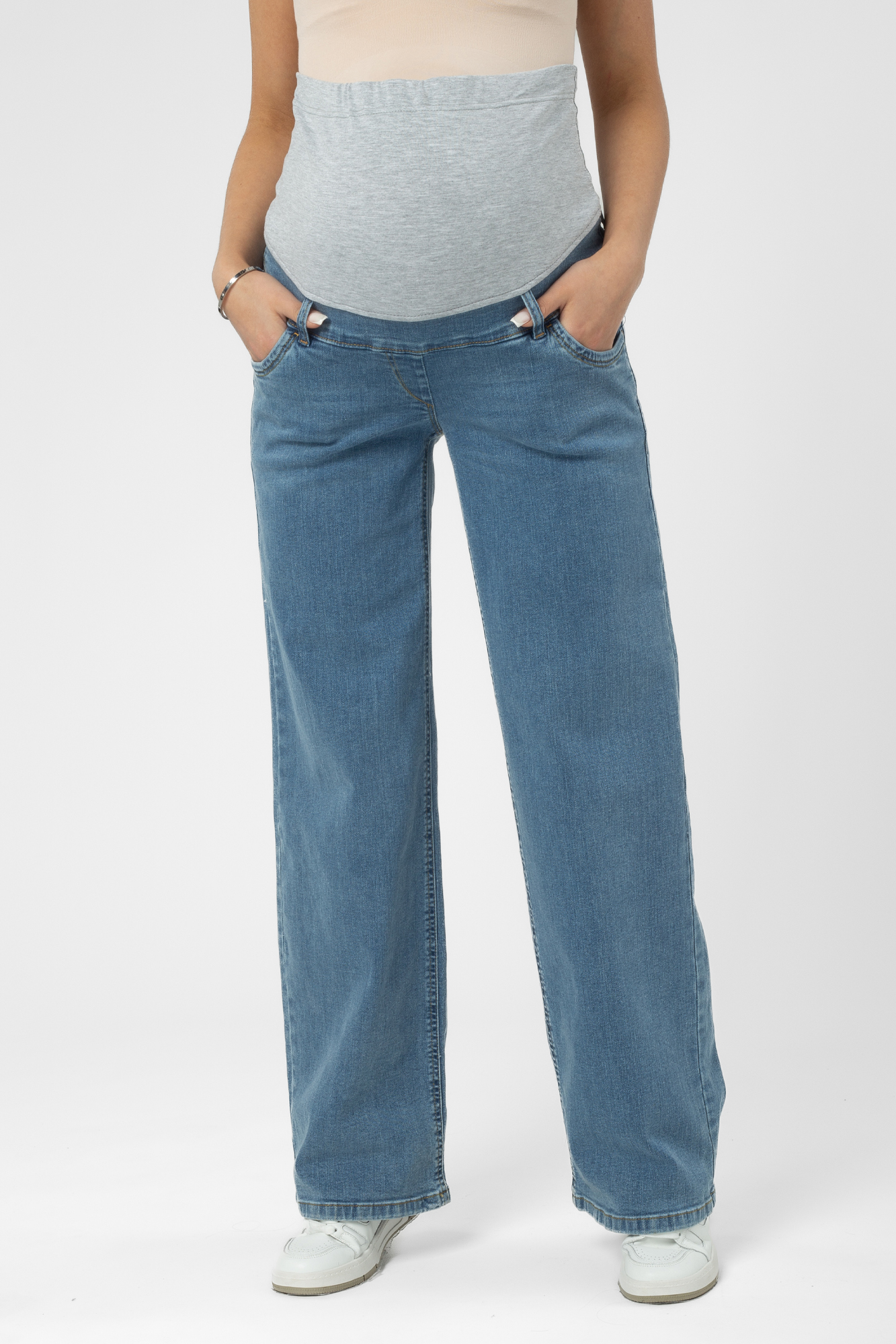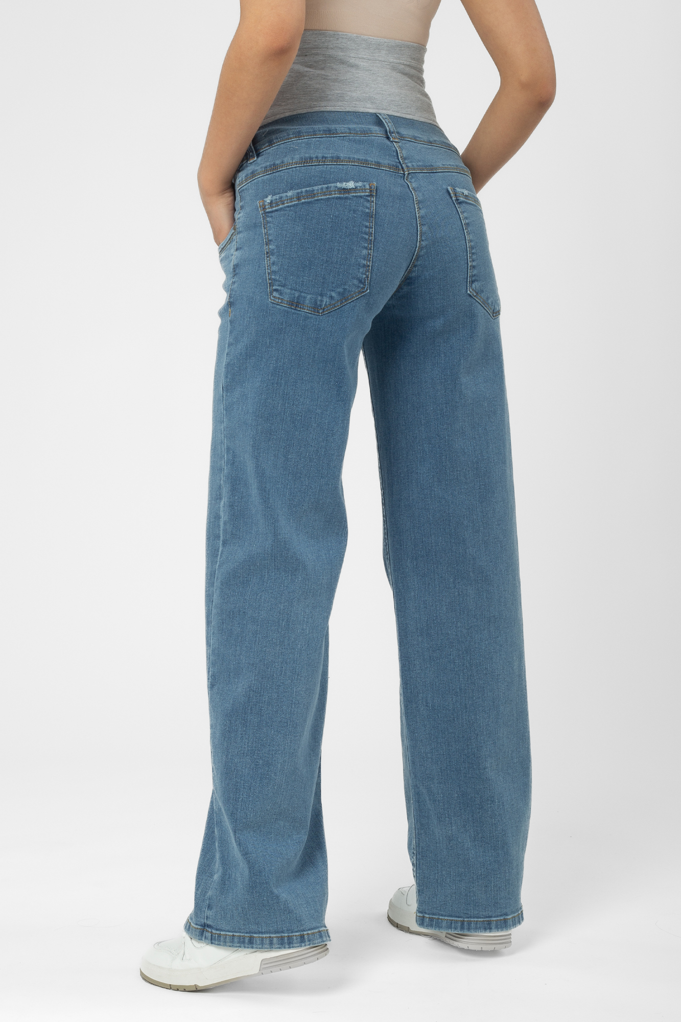 Джинсы для беременных палаццо выполнены из высококачественного стрейчевого денима. На модели высокая трикотажная вставка с эффектом бандажа мягко и деликатно поддерживает растущий животик, объем регулируется за счет резинки, которая перестегивается на пуговицу. Детали: три кармана спереди и два накладных кармана сзади, шлевки для ремня.