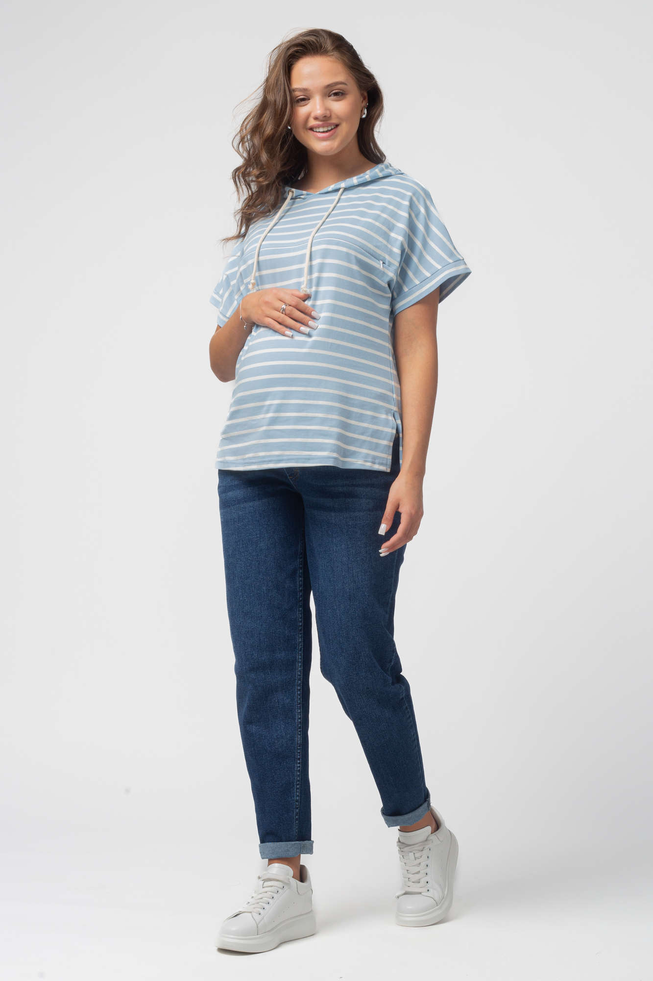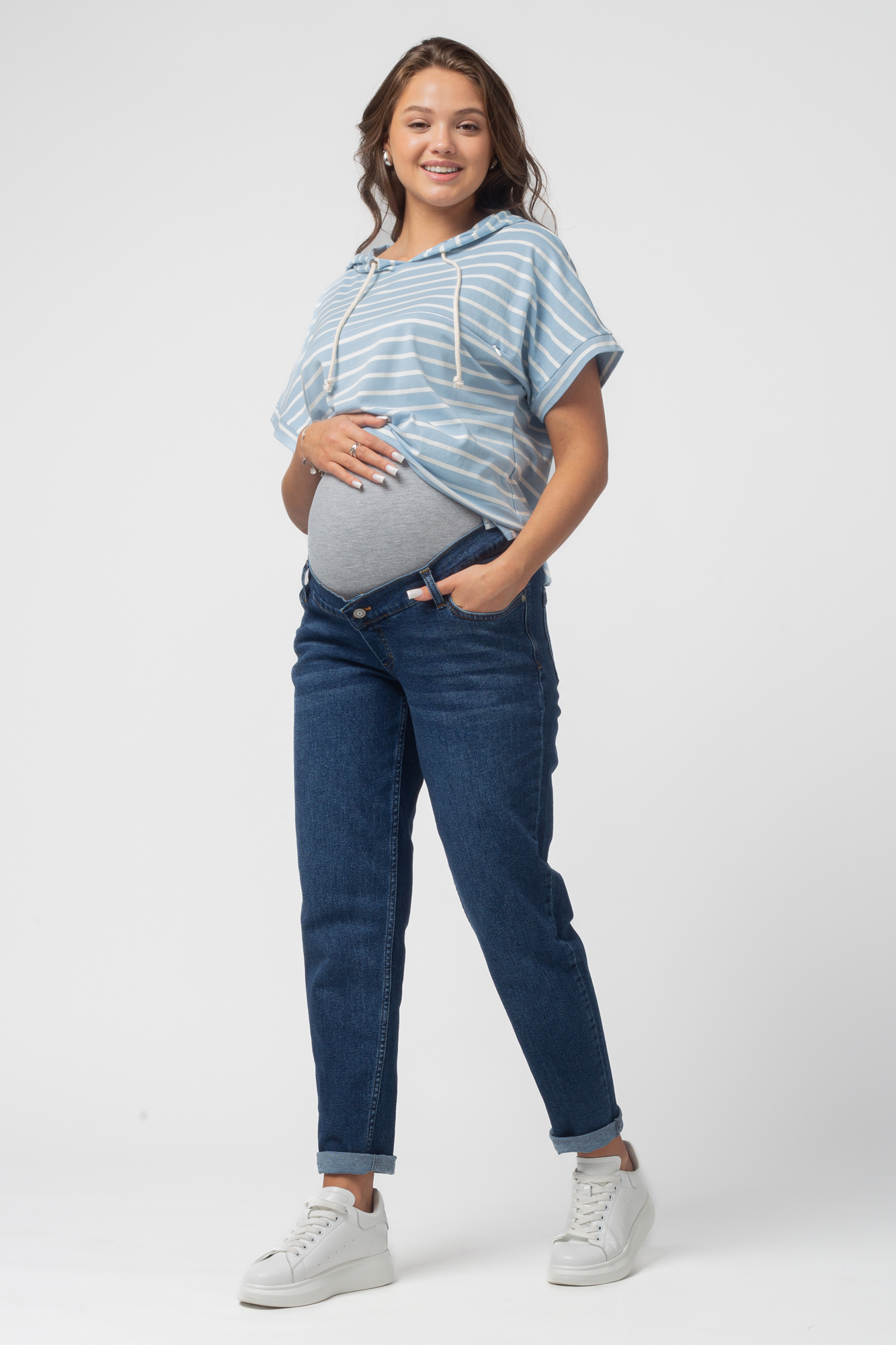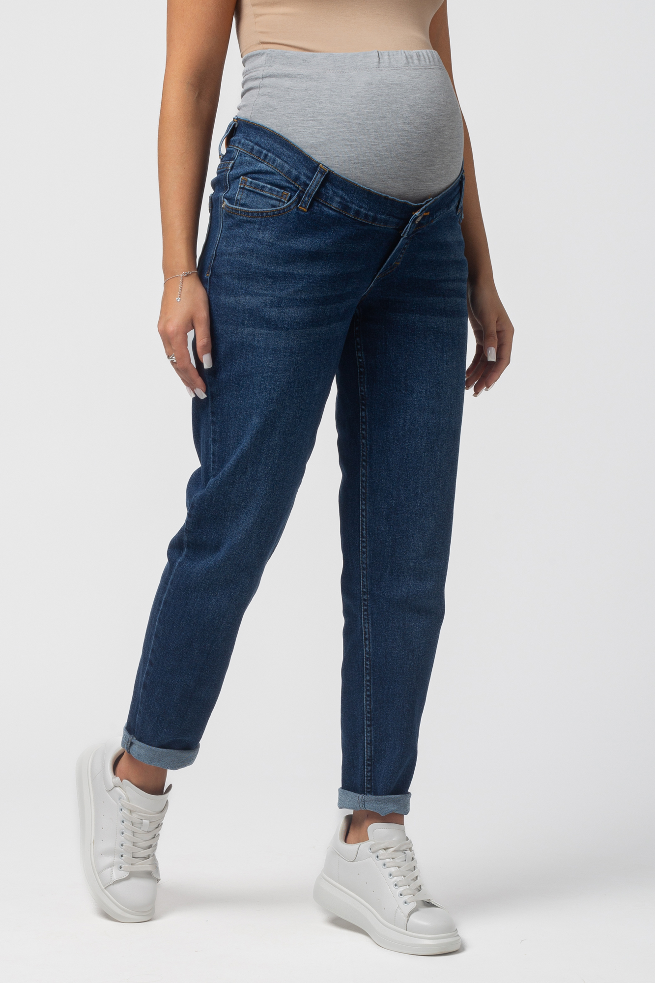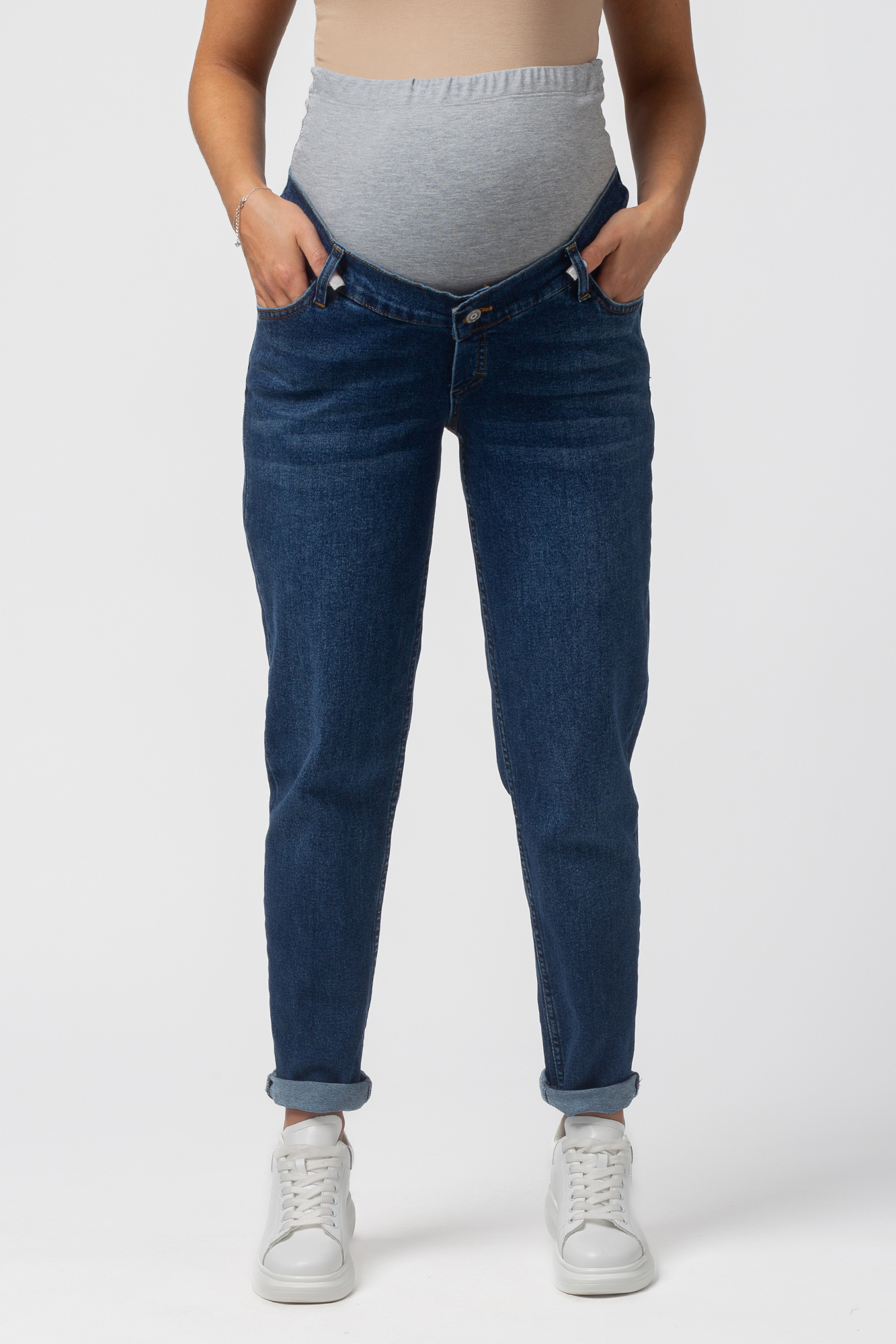 Стильные комфортные джинсы для беременных выполнены из высококачественного премиум денима с добавлением эластана, не стесняющего движений. На модели высокая трикотажная вставка с эффектом бандажа мягко и деликатно поддерживает растущий животик. Объем регулируется за счет скрытой перфорированной резинки, продетой в верхнюю часть, которая перестегивается на пуговицу. Детали модели: три кармана спереди, два накладных кармана сзади, шлевки для ремня. Идеальная посадка на любую фигуру. Специальный крой с учетом анатомических особенностей позволяет носить изделие от начала до конца беременности, а также после родов. Джинсы подойдут не только беременным, но и дамам крупных размеров, желающих приобрести модель, которая не сдавливает и скрывает несовершенства фигуры.