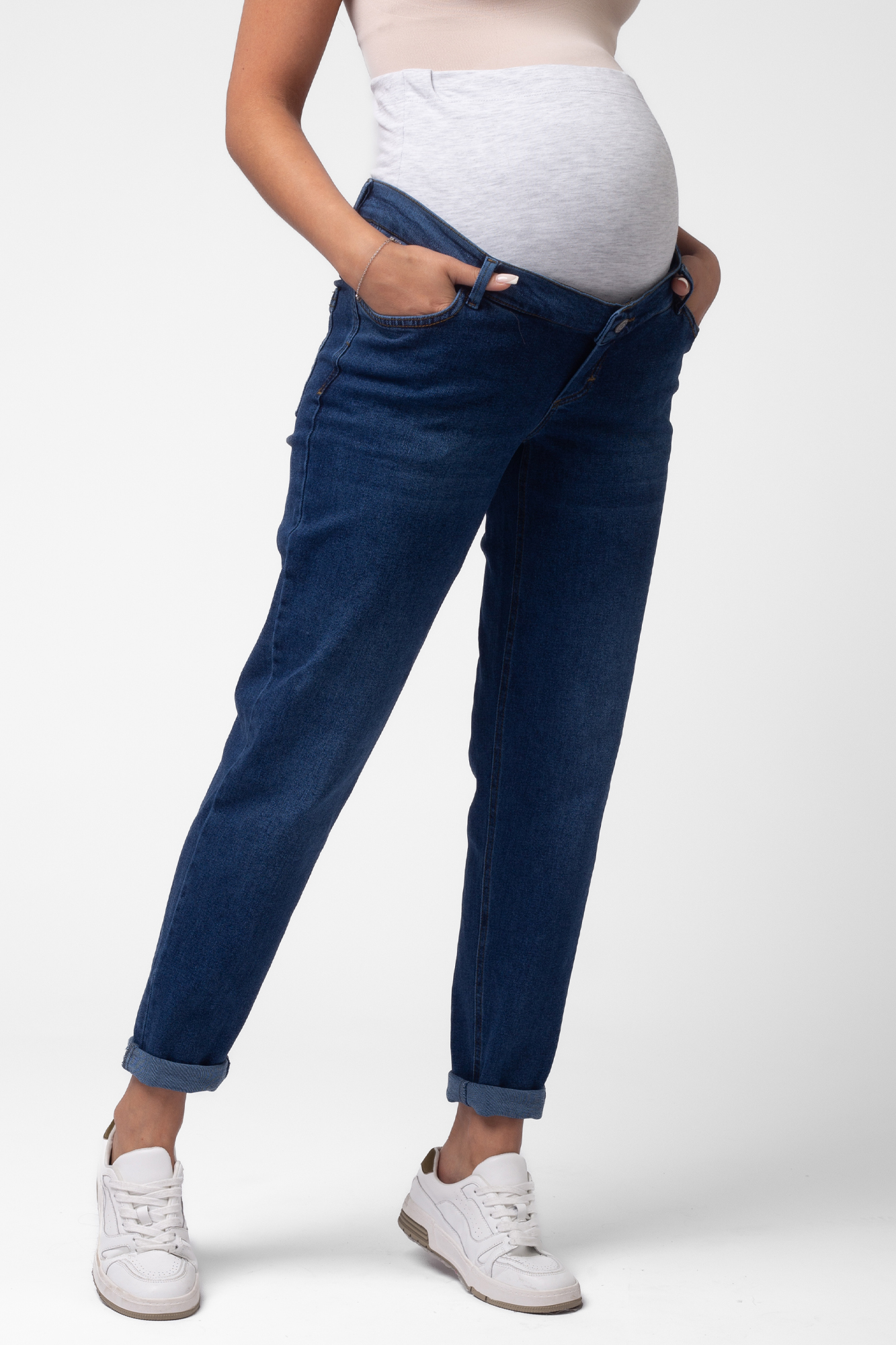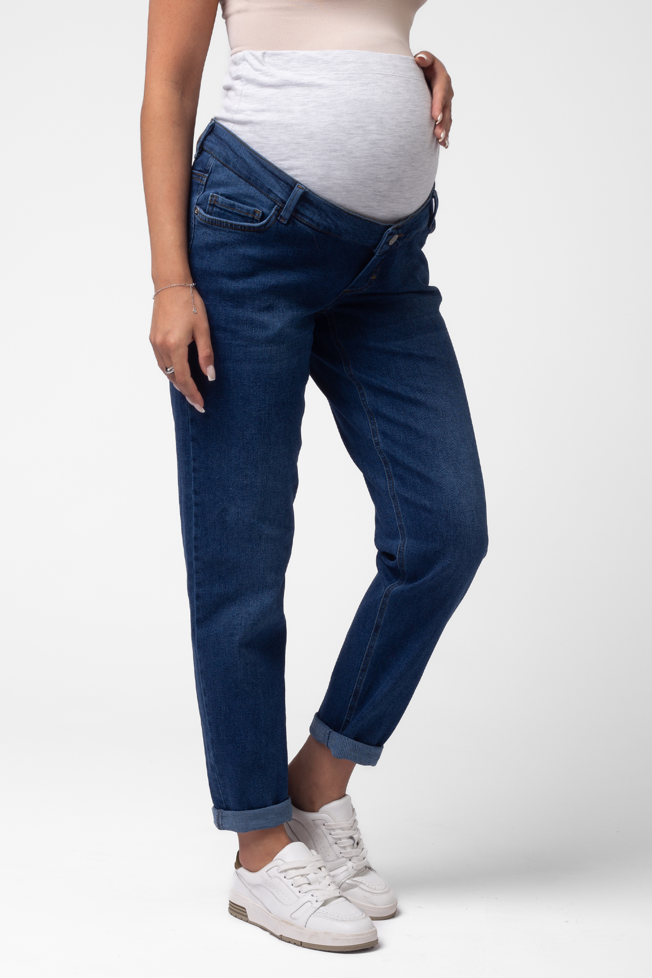 Стильные комфортные джинсы для беременных выполнены из высококачественного премиум денима с добавлением эластана, не стесняющего движений. На модели высокая трикотажная вставка с эффектом бандажа мягко и деликатно поддерживает растущий животик. Объем регулируется за счет скрытой перфорированной резинки, продетой в верхнюю часть и, которая перестегивается на пуговицу. Детали модели: три кармана спереди, два накладных кармана сзади, шлевки для ремня. Идеальная посадка на любую фигуру. Специальный крой с учетом анатомических особенностей позволяет носить изделие от начала до конца беременности, а также после родов. Джинсы подойдут не только беременным, но и дамам крупных размеров, желающих приобрести модель, которая не сдавливает и скрывает несовершенства фигуры.