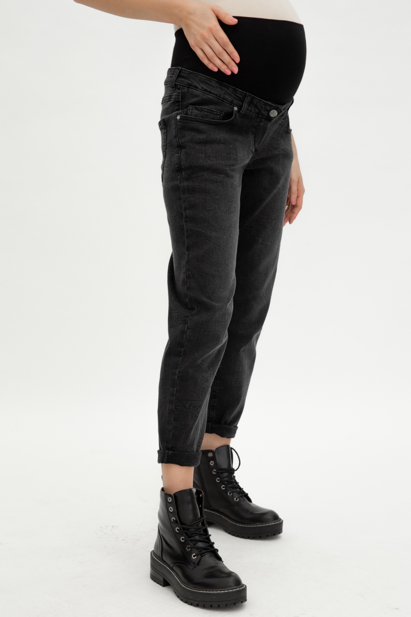 Джинсы-бойфренды для беременных выполнены из высококачественного стрейчевого денима. Особый вар ручной работы делает данную модель уникальной и оригинальной. На модели высокая трикотажная вставка с эффектом бандажа мягко и деликатно поддерживает растущий животик, объем регулируется за счет резинки, которая перестегивается на пуговицу. Детали: три кармана спереди и два накладных кармана сзади, шлевки для ремня.