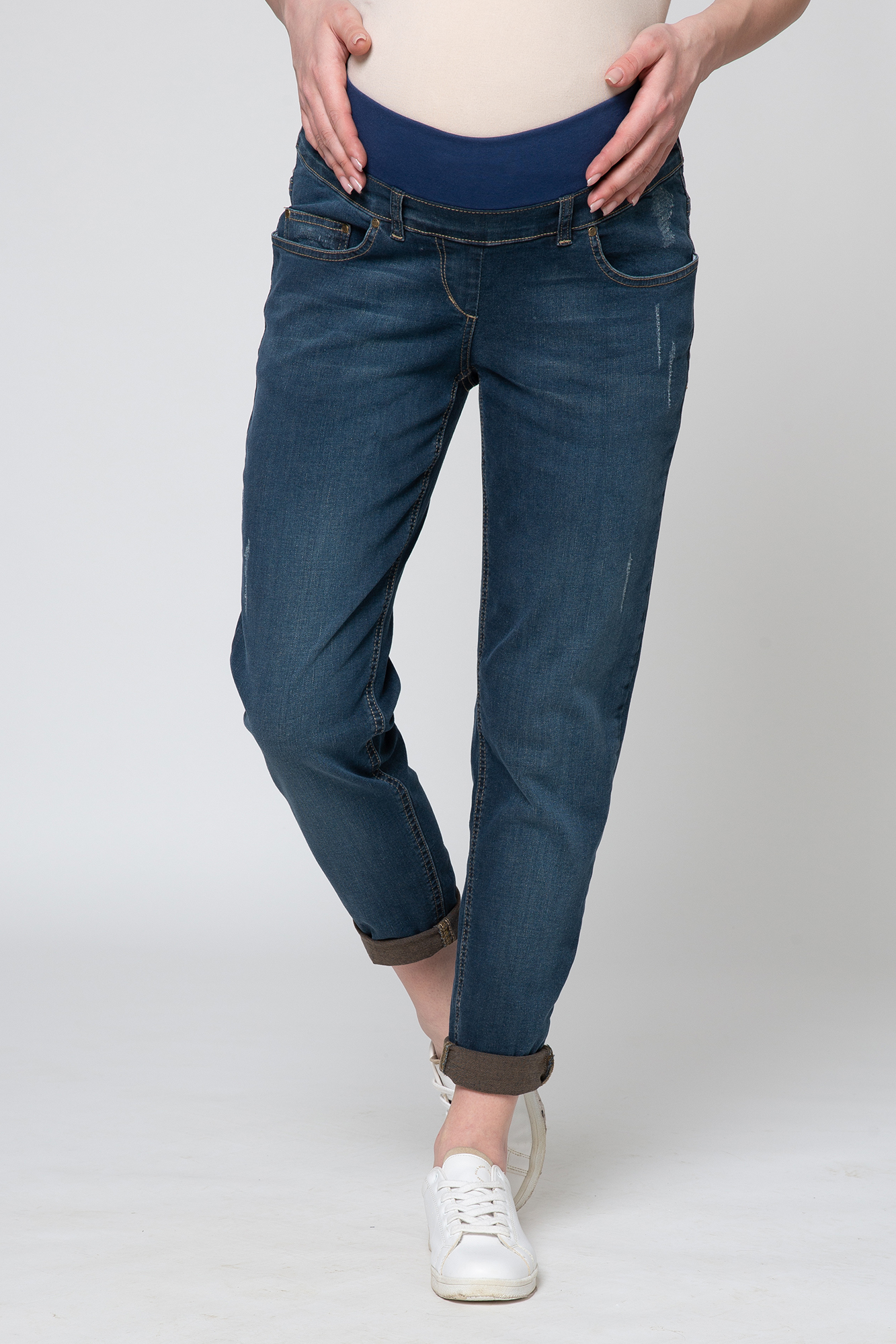 Джинсы-бойфренды для будущих мам выполнены из высококачественного денима с добавлением эластана. Мягкая бандажная резинка под живот не сдавливает и поддерживает. На джинсах два кармана спереди, два накладных кармана сзади, шлевки для ремня, легкие потертости. Идеальная посадка на любом сроке беременности и после нее.