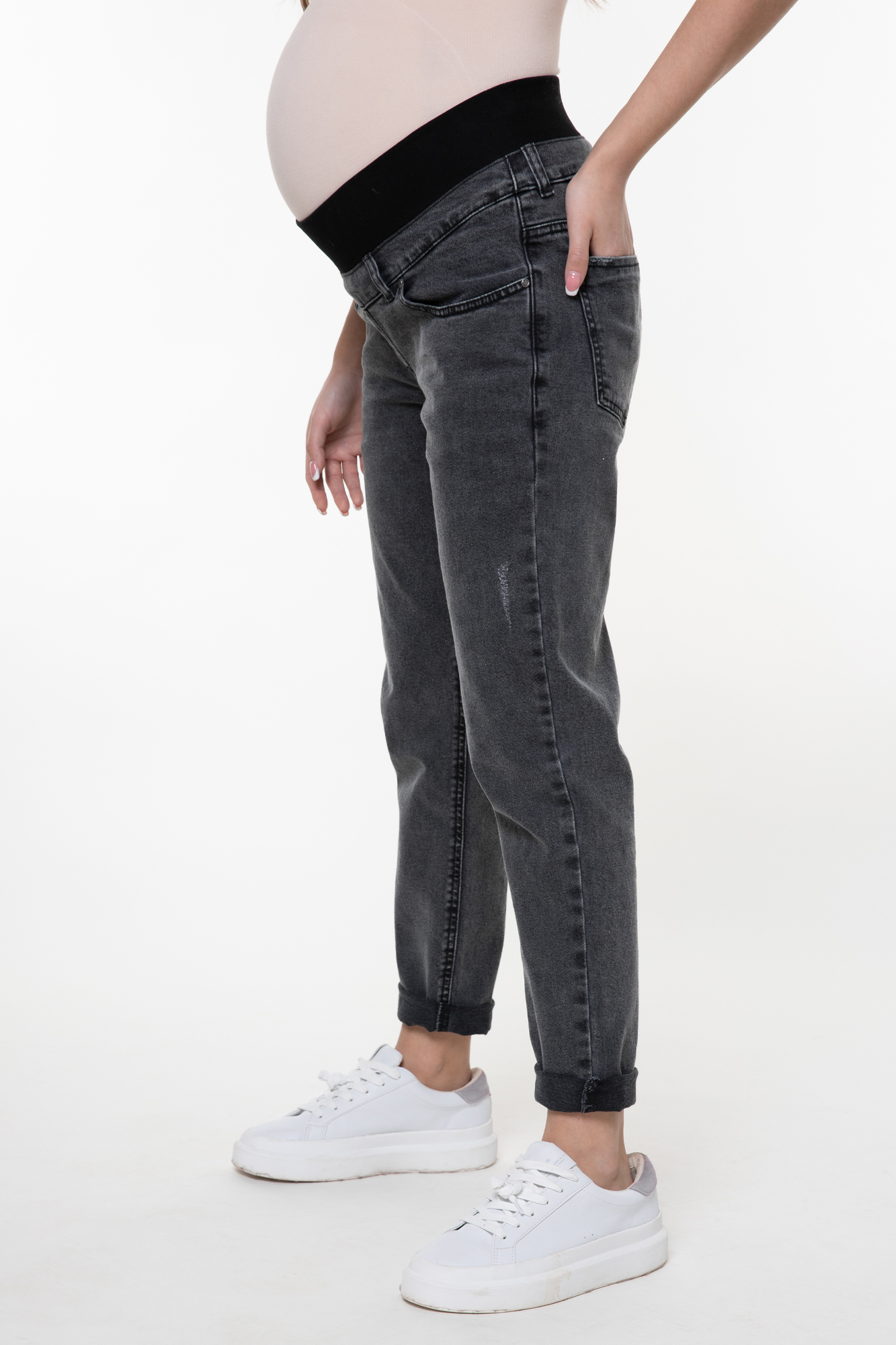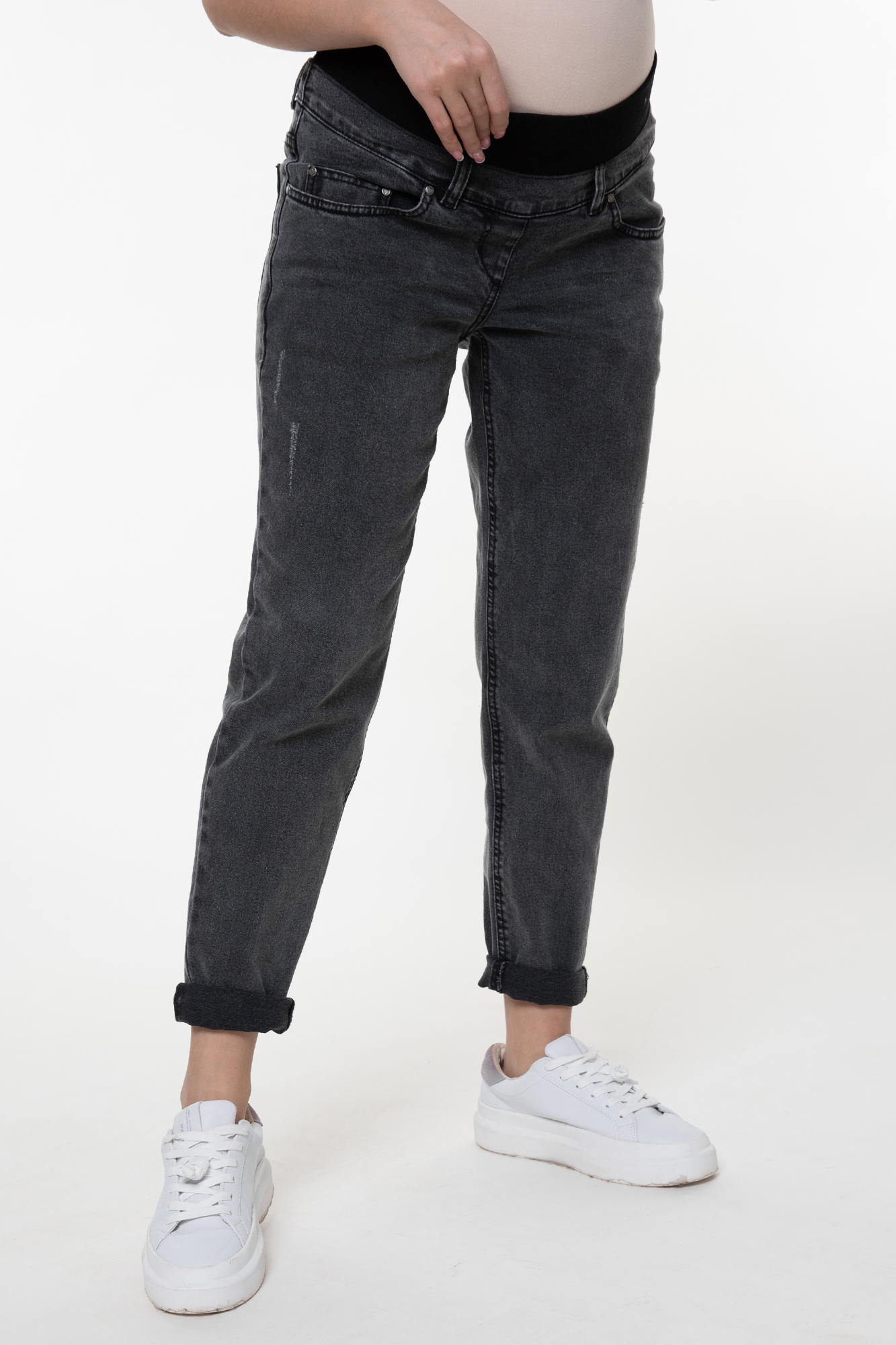 Джинсы-бойфренды для беременных выполнены из высококачественного денима с добавлением эластана. Мягкая бандажная резинка под живот не сдавливает и поддерживает. На джинсах два кармана спереди, два накладных кармана сзади, шлевки для ремня, легкие потертости. Идеальная посадка на любом сроке беременности и после нее.