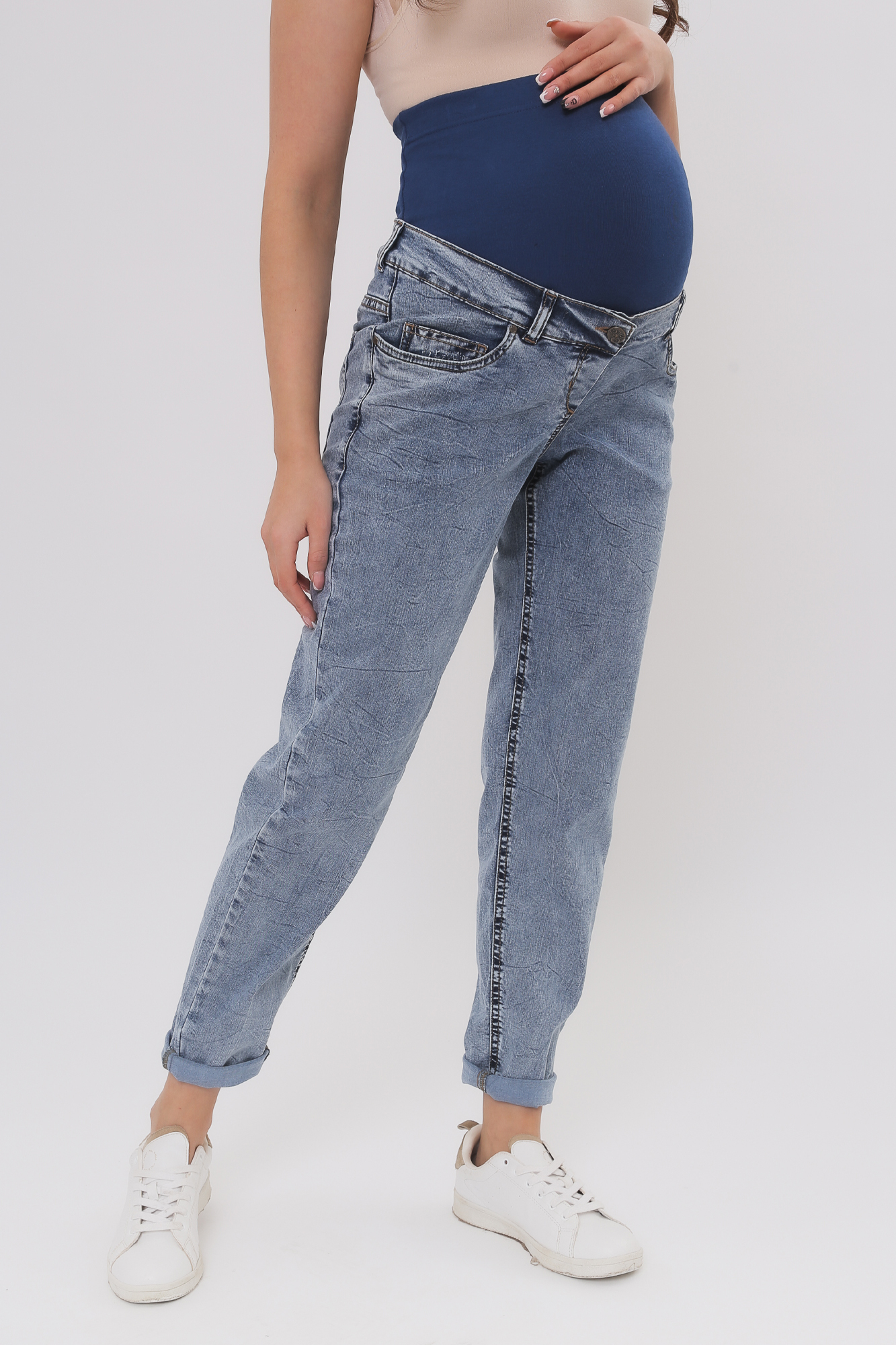 Джинсы-бойфренды для беременных выполнены из высококачественного стрейчевого денима. Особый вар ручной работы делает данную модель уникальной и оригинальной. На модели высокая трикотажная вставка с эффектом бандажа мягко и деликатно поддерживает растущий животик, объем регулируется за счет резинки, которая перестегивается на пуговицу. Детали: три кармана спереди и два накладных кармана сзади, шлевки для ремня.