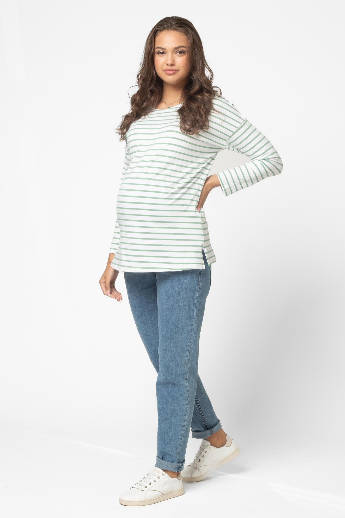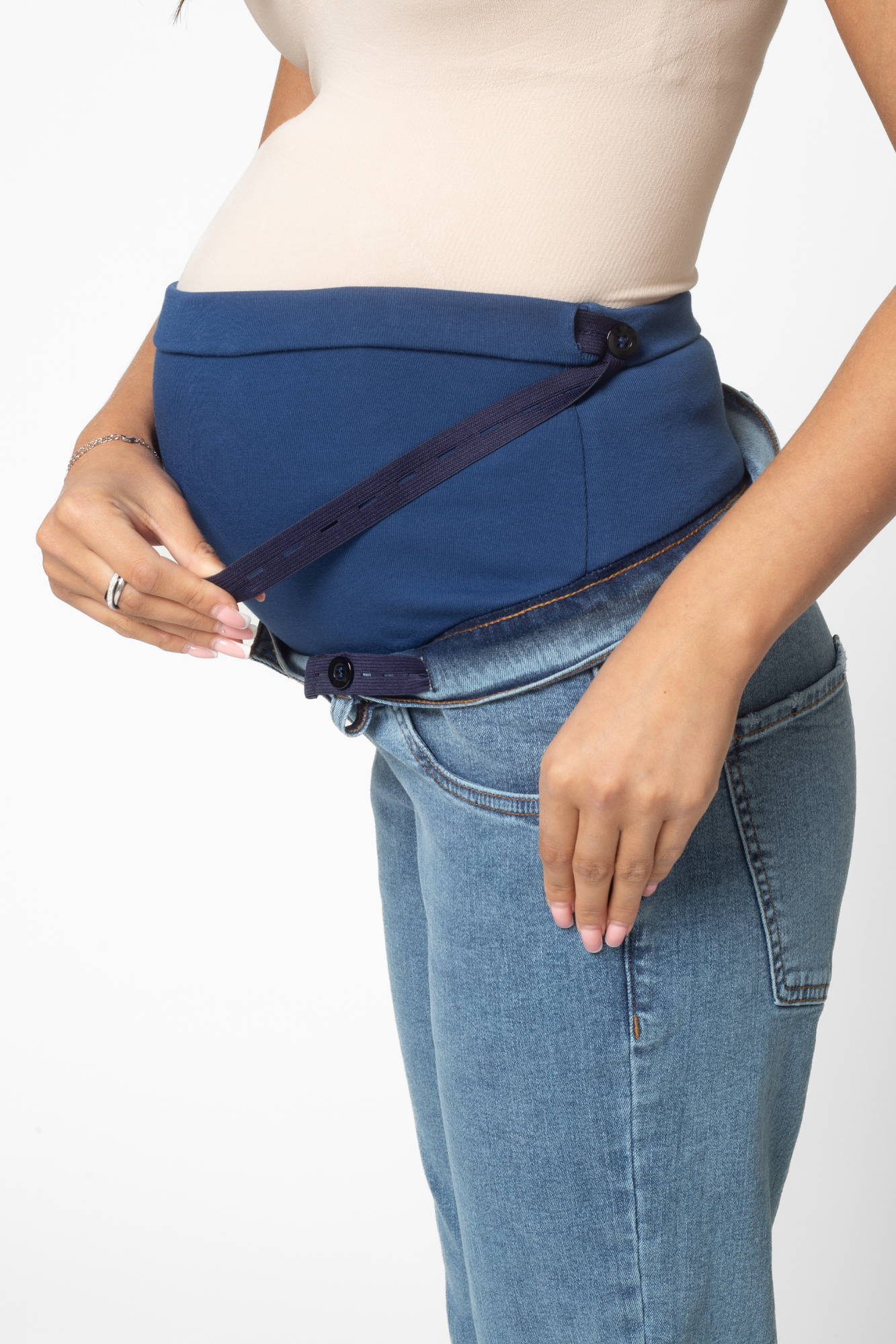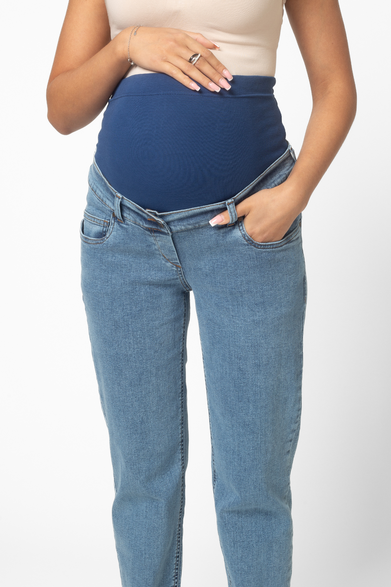Стильные джинсы-бойфренды для беременных выполнены из высококачественного стрейчевого денима, не стесняющего движений. На модели высокая трикотажная вставка с эффектом бандажа мягко и деликатно поддерживает растущий животик. Объем регулируется за счет перфорированной резинки, продетой в пояс изделия, которая перестегивается на пуговицу. Детали модели: три кармана спереди, два накладных кармана сзади, шлевки для ремня, застежка на пуговицу. Специальный крой с учетом анатомических особенностей позволяет носить изделие от начала до конца беременности, а также после родов.