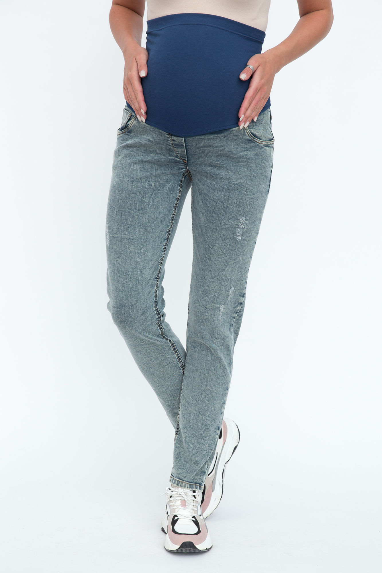 Джинсы-мом (mom fit) для беременных выполнены из высококачественного стрейчевого денима. На модели трикотажная вставка с эффектом бандажа мягко и деликатно поддерживает растущий животик, объем регулируется за счет резинки, которая перестегивается на пуговицу, продетой в верхнюю часть изделия. Детали: три кармана спереди и два накладных кармана сзади, шлевки для ремня.