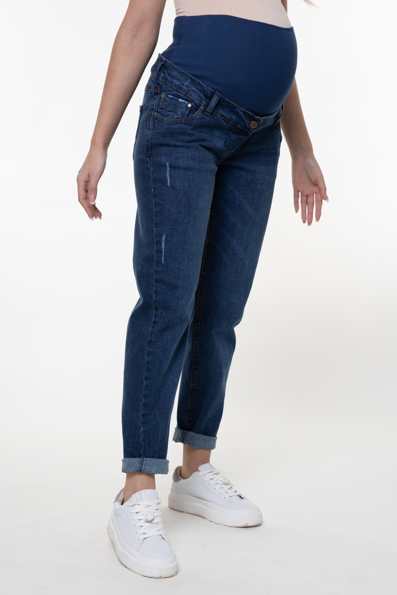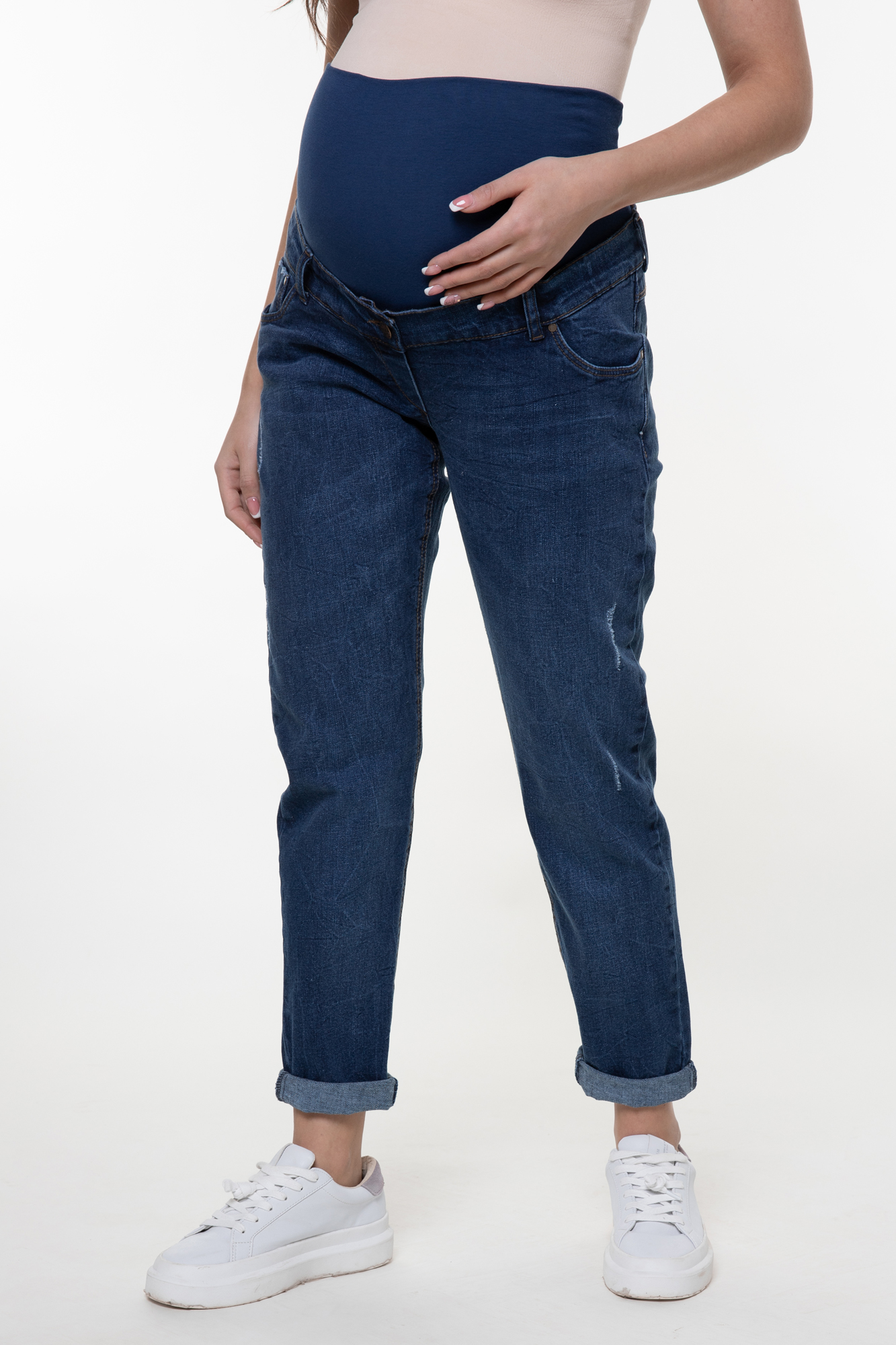 Стильные джинсы МОМ для беременных выполнены из высококачественного стрейчевого денима, не стесняющего движений. На модели высокая трикотажная вставка с эффектом бандажа мягко и деликатно поддерживает растущий животик. Объем регулируется за счет перфорированной резинки, продетой в пояс изделия, которая перестегивается на пуговицу. Детали модели: три кармана спереди, два накладных кармана сзади, шлевки для ремня, застежка на пуговицу. Специальный крой с учетом анатомических особенностей позволяет носить изделие от начала до конца беременности, а также после родов.