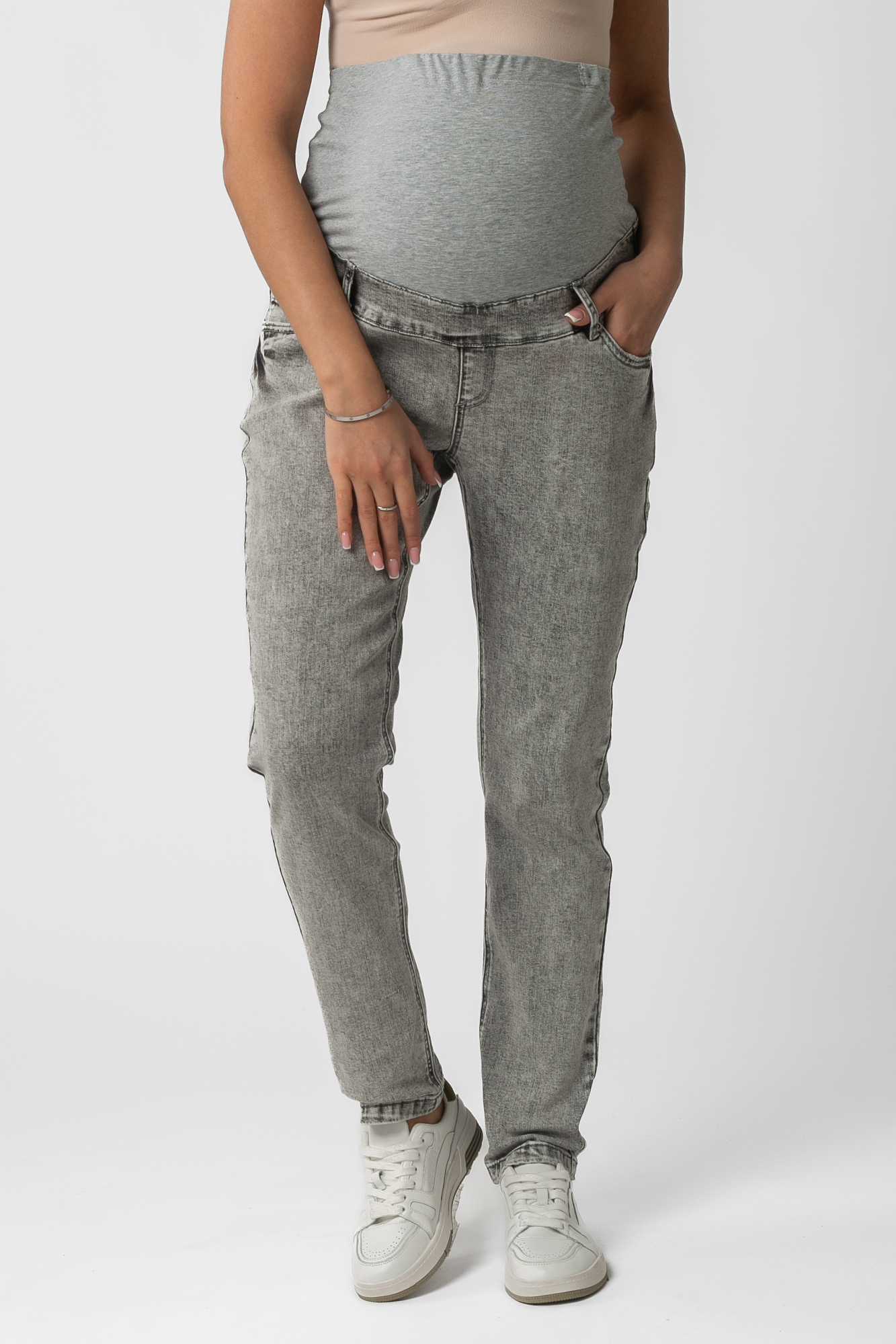 Стильные комфортные прямые джинсы для беременных выполнены из высококачественного премиум денима с добавлением эластана, не стесняющего движений. На модели высокая трикотажная вставка с эффектом бандажа мягко и деликатно поддерживает растущий животик. Объем регулируется за счет скрытой перфорированной резинки, продетой в верхнюю часть и, которая перестегивается на пуговицу. Детали модели: три кармана спереди, два накладных кармана сзади, шлевки для ремня. Идеальная посадка на любую фигуру. Специальный крой с учетом анатомических особенностей позволяет носить изделие от начала до конца беременности, а также после родов. Джинсы подойдут не только беременным, но и дамам крупных размеров, желающих приобрести модель, которая не сдавливает и скрывает несовершенства фигуры.