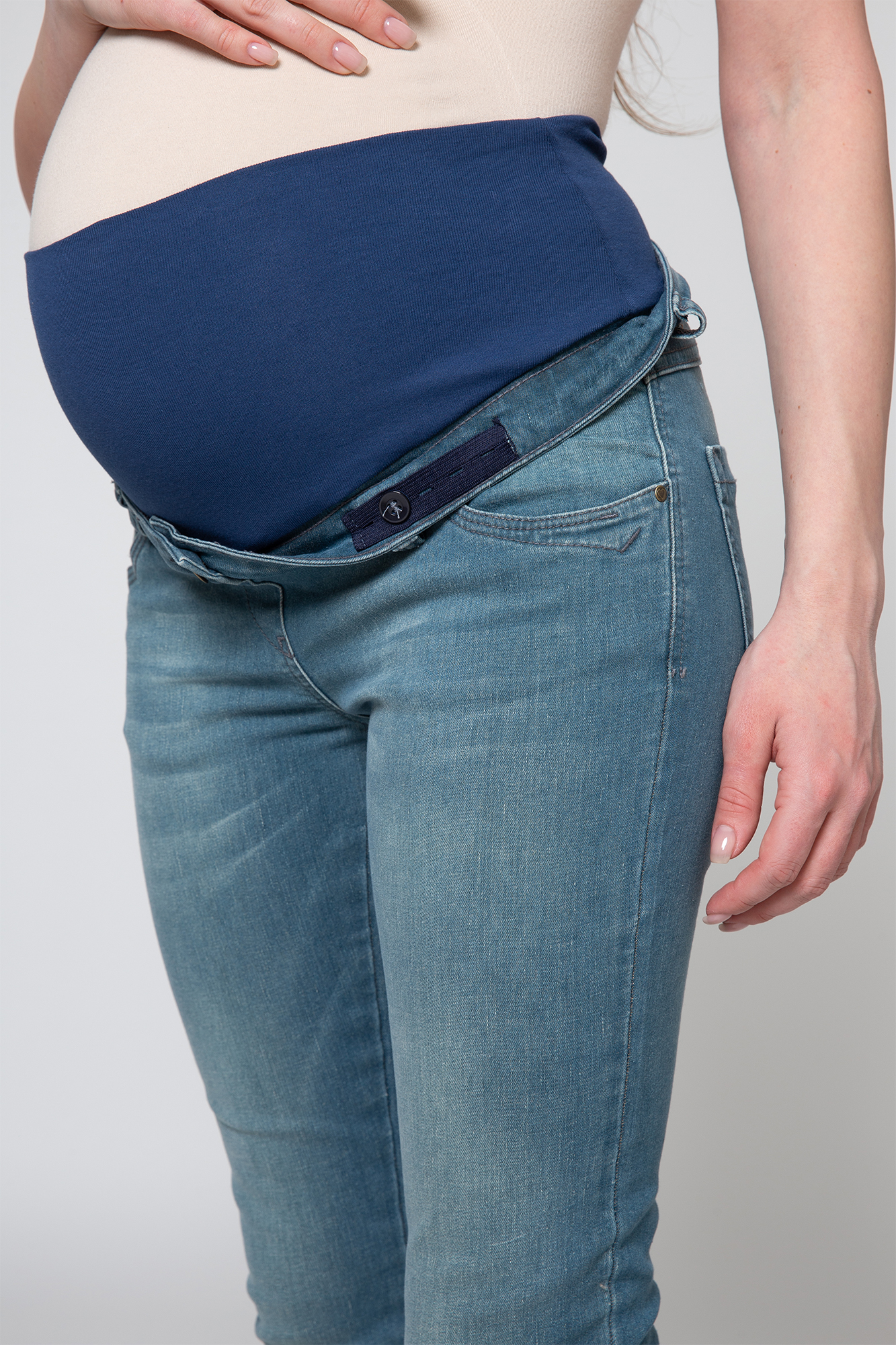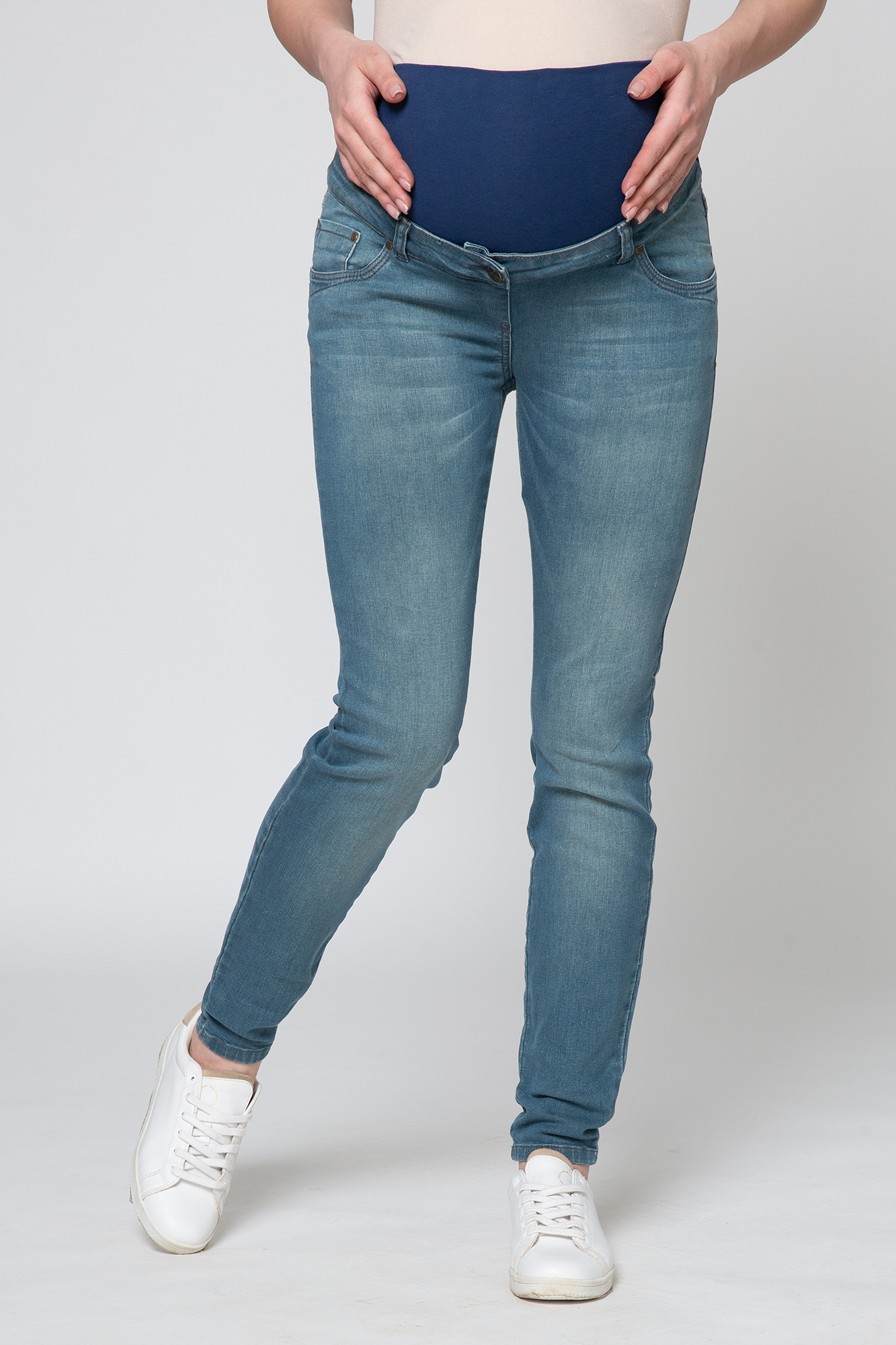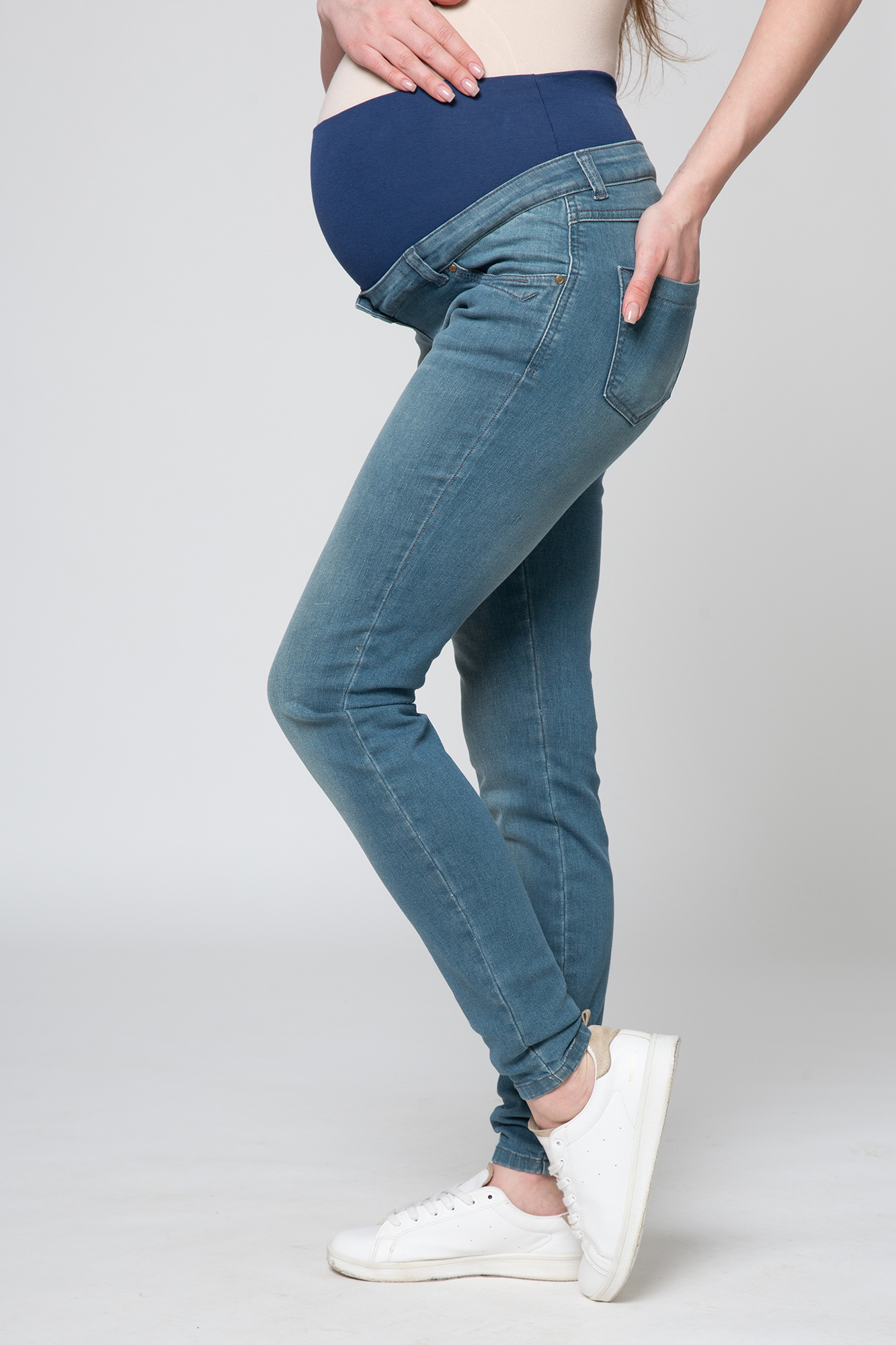 Зауженные джинсы для будущих мам выполнены из высококачественного денима с добавлением эластана. Высокий эластичный бандаж не сдавливает и поддерживает животик на всем протяжении беременности. Объем регулируется с помощью перфорированной резинки перестегивающейся на пуговицу, продетой в пояс изделия. Детали: высокая трикотажная вставка для животика, два кармана спереди и два накладных кармана сзади, имитация застежки на пуговицу, шлевки для ремня.