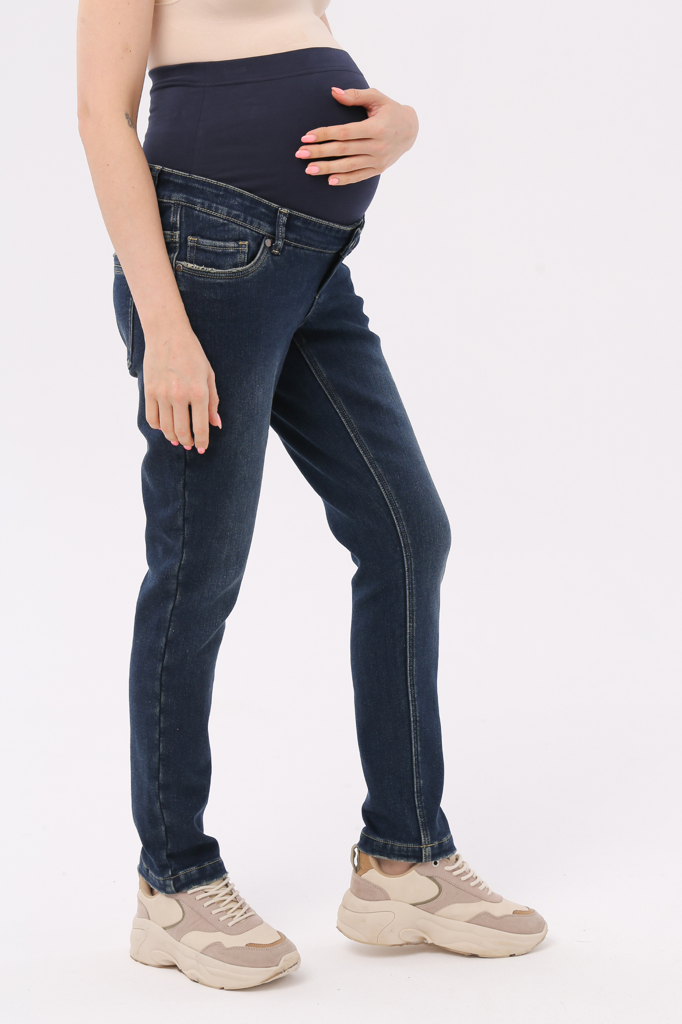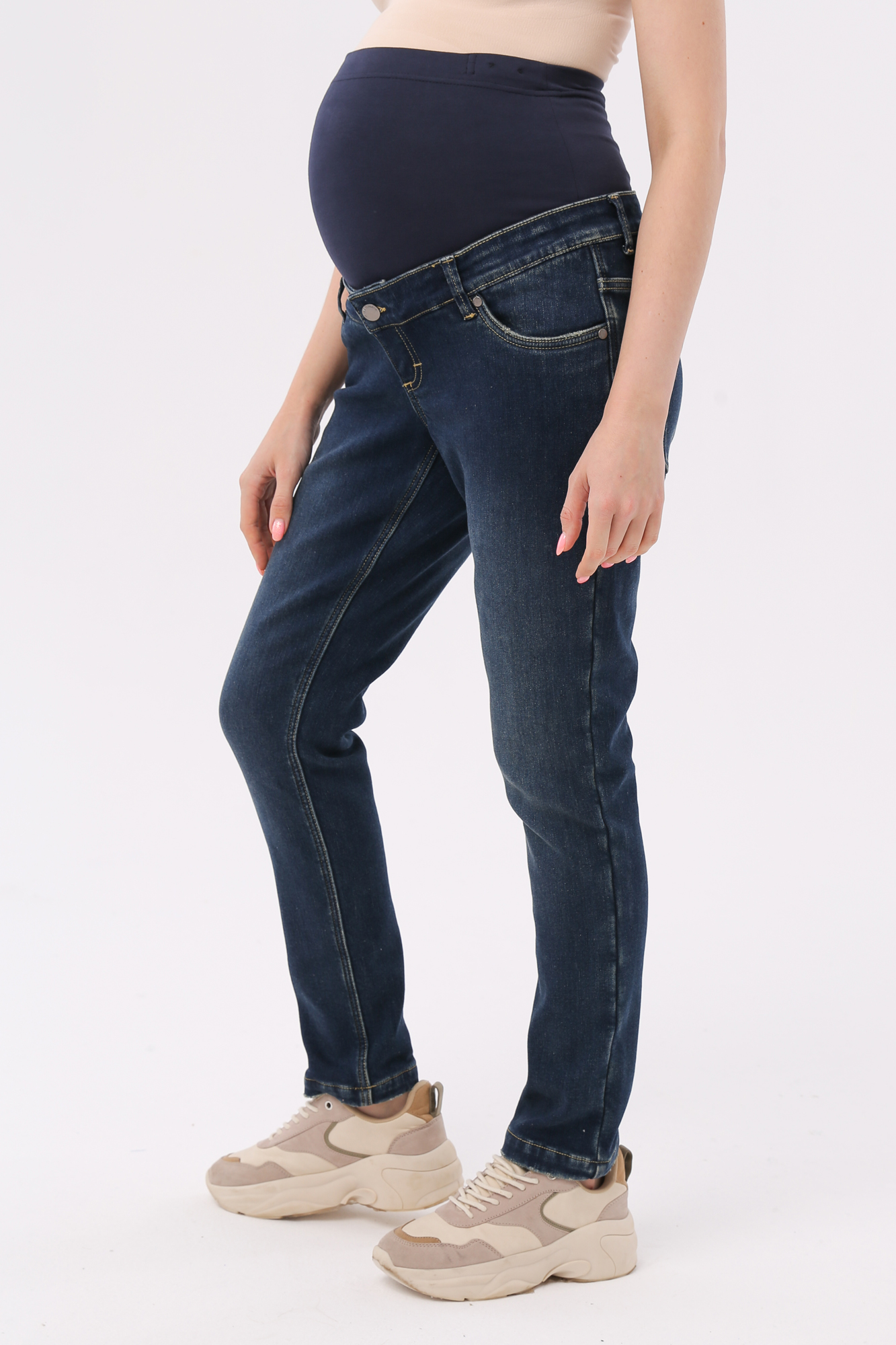 Утепленные джинсы для беременных (STRAIGHT CUT) 14156 темно-синий