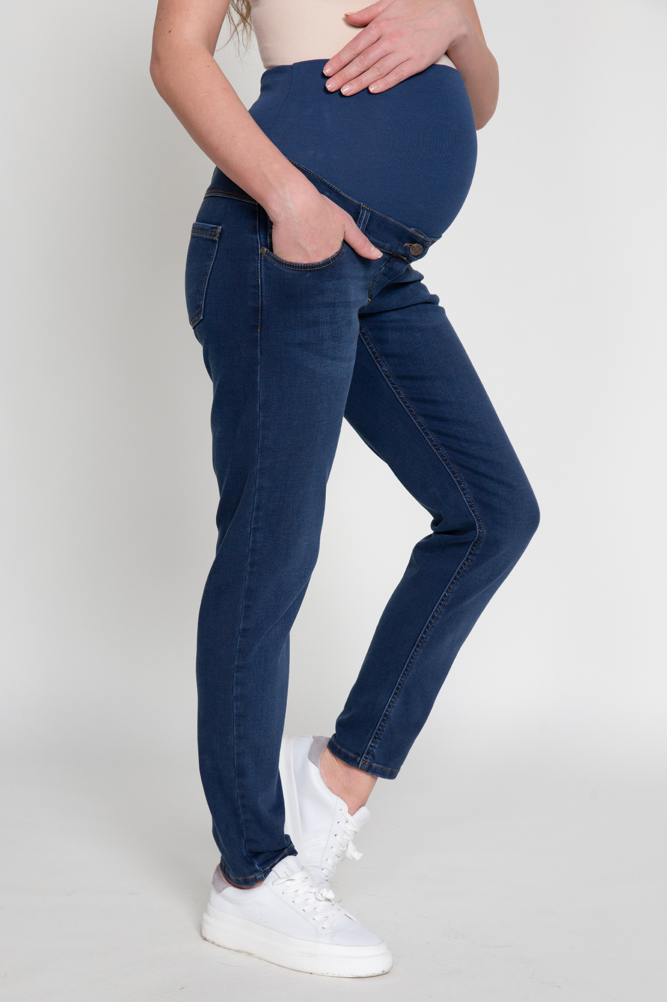 Утепленные джинсы-мом для беременных выполнены из высококачественного стрейчевого денима с начесом. Особый вар ручной работы делает данную модель уникальной и оригинальной. На модели высокая трикотажная вставка с эффектом бандажа мягко и деликатно поддерживает растущий животик, объем регулируется за счет резинки, которая перестегивается на пуговицу. Детали: три кармана спереди и два накладных кармана сзади, шлевки для ремня.