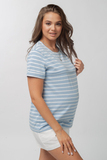 Футболка для беременных и кормящих 18072 голубой тофу полоска
