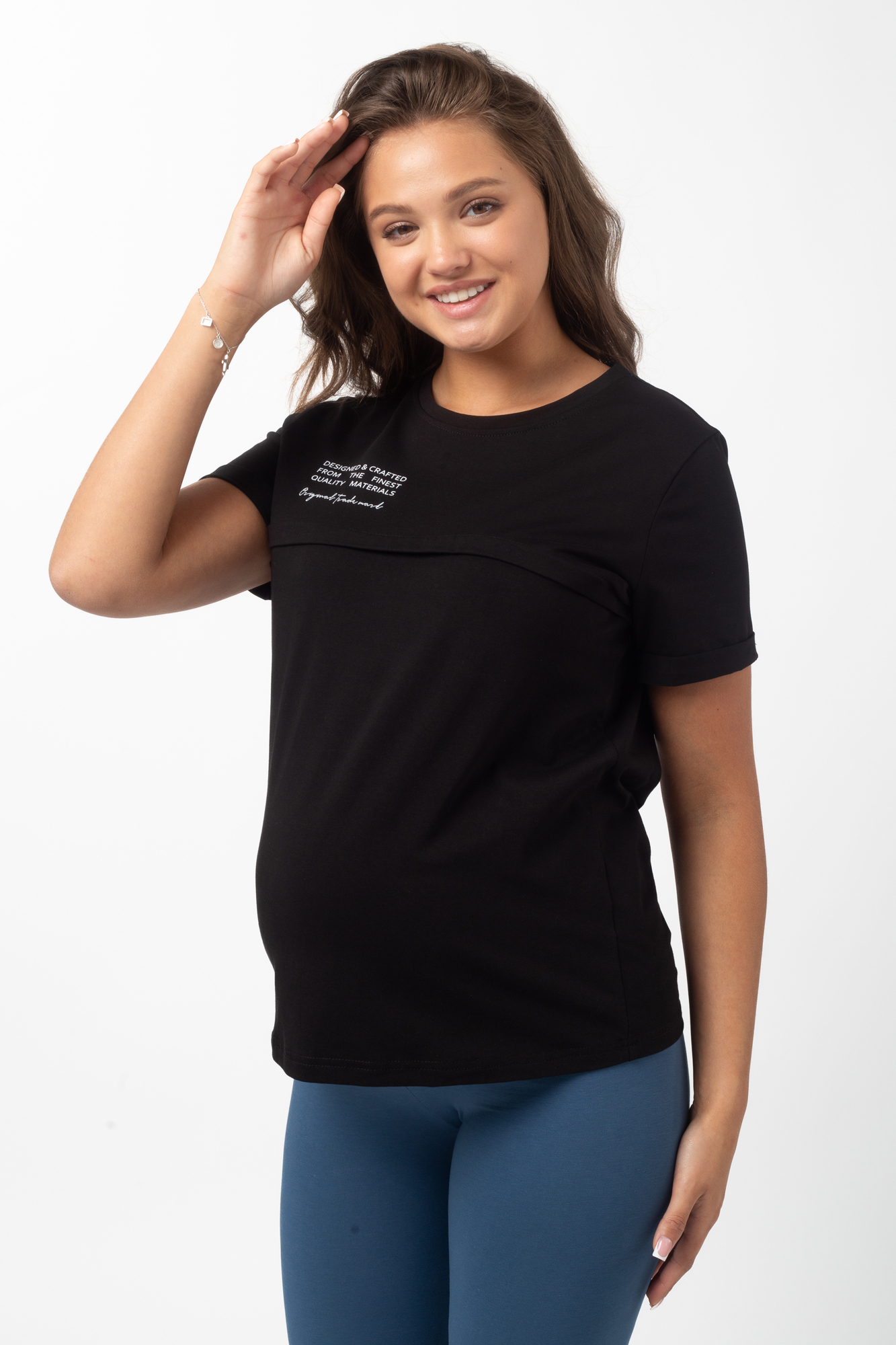 Футболка для беременных и кормящих из высококачественного хлопкового трикотажа. Особый крой обеспечивает идеальную посадку на всем протяжении беременности и после родов. Благодаря горизонтальным потайным молниям можно покормить малыша с комфортом в любой ситуации.