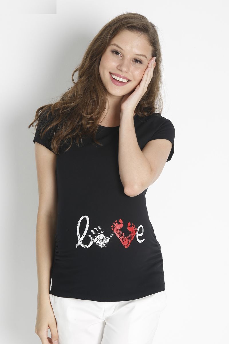 Модная футболка для беременных из хлопка, очень мягкая и приятная к телу. Красивый принт нанесенный на ткань, который не смывается и не теряет цвет при стирке. Летняя модель с коротким рукавом.Состав: 92% Хлопка, 8% Эластан.
