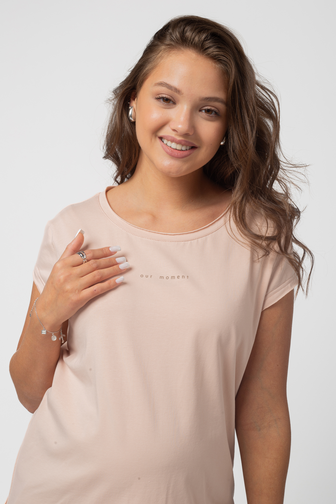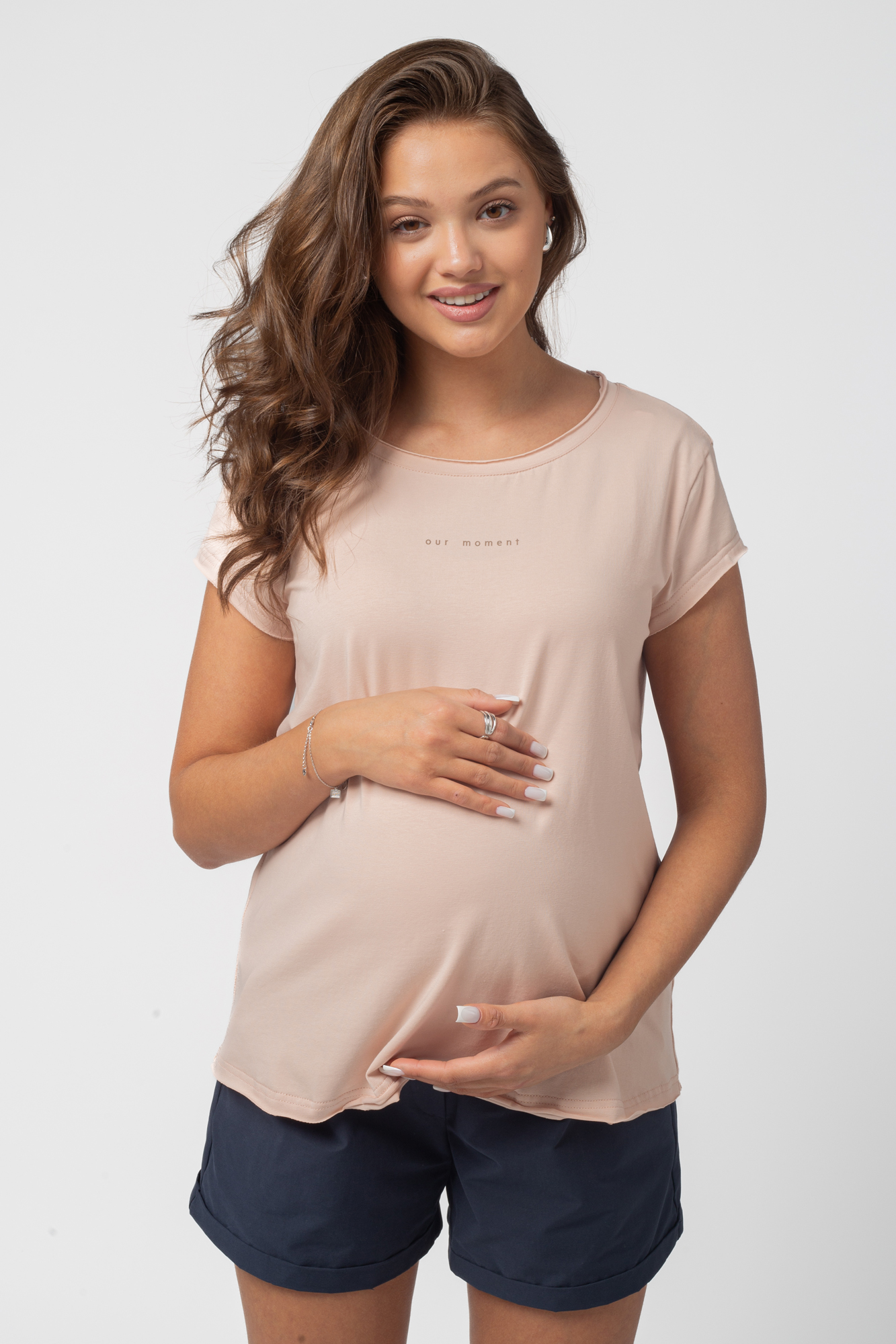 Футболка для будущих мам. Благодаря особенностям кроя не стесняет движений и замечательно подходит для ежедневных прогулок. Отличная посадка на любом сроке беременности и после нее.