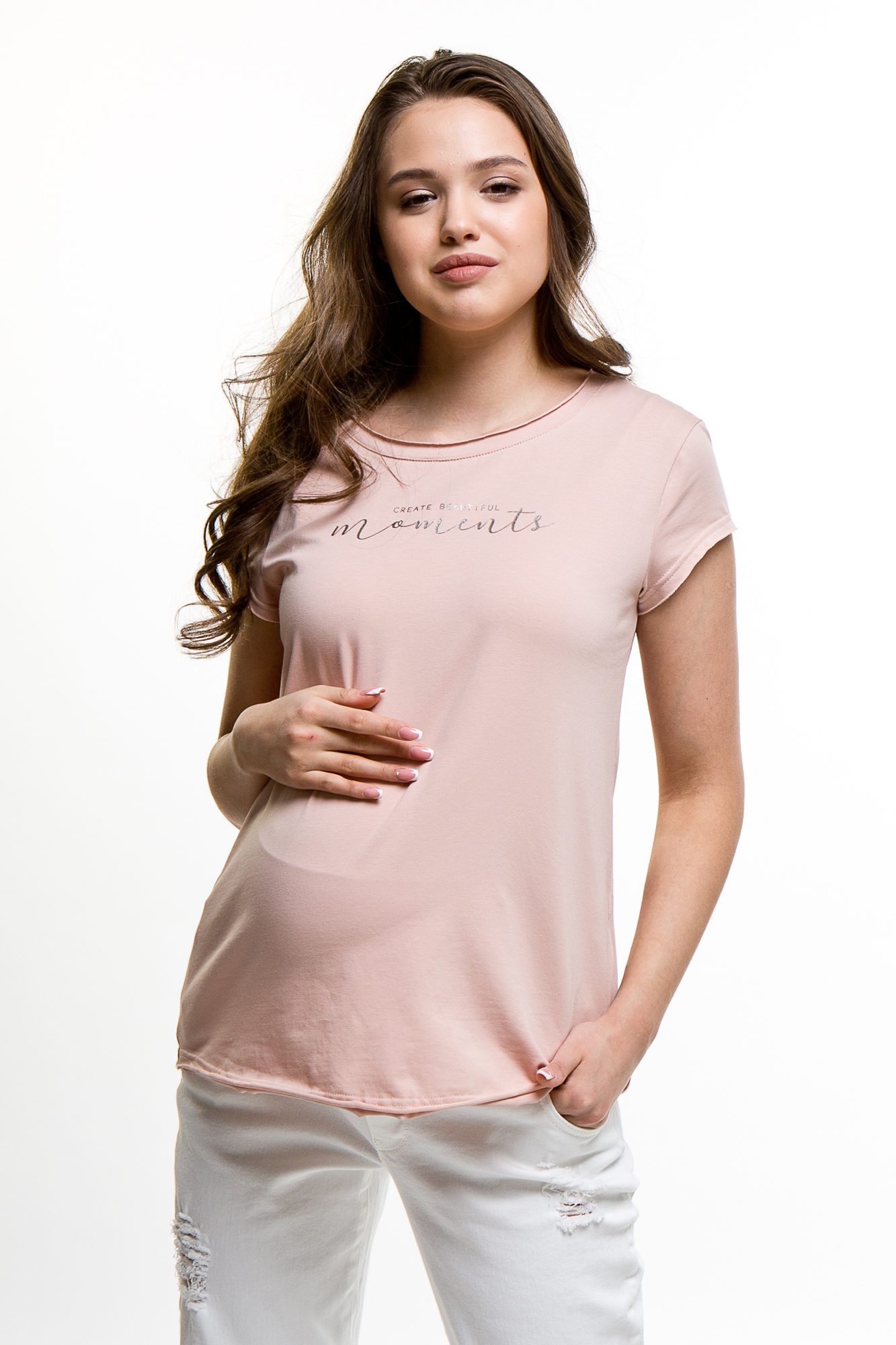 Футболка для будущих мам. Благодаря особенностям кроя не стесняет движений и замечательно подходит для ежедневных прогулок. Отличная посадка на любом сроке беременности и после нее.