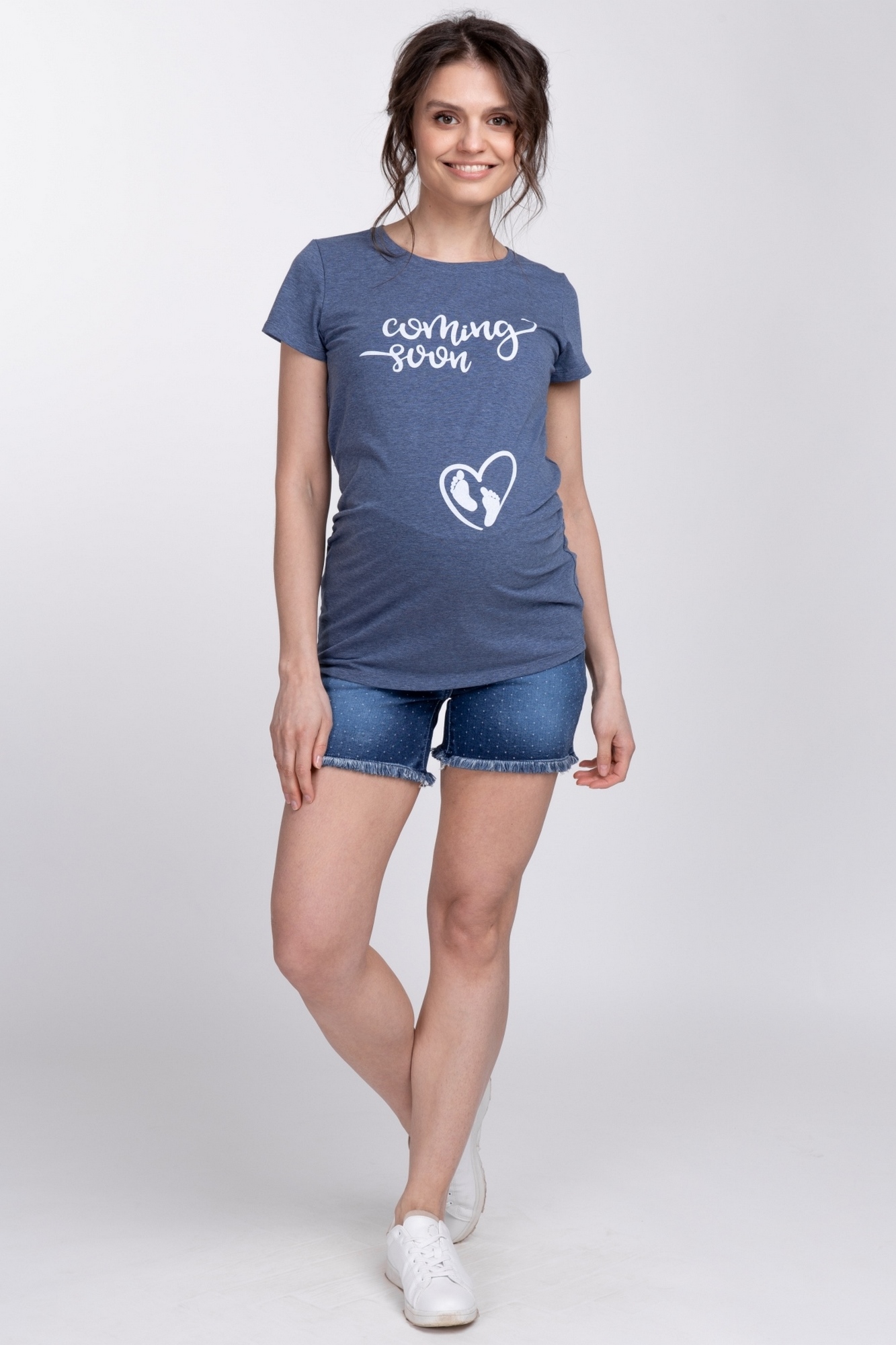 Модная футболка для беременных из хлопка, очень мягкая и приятная к телу. Красивый принт нанесенный на ткань не смывается и не теряет цвет при стирке. Летняя модель с коротким рукавом. Специальный крой позволяет носить изделие на любом сроке беременности и после родов.