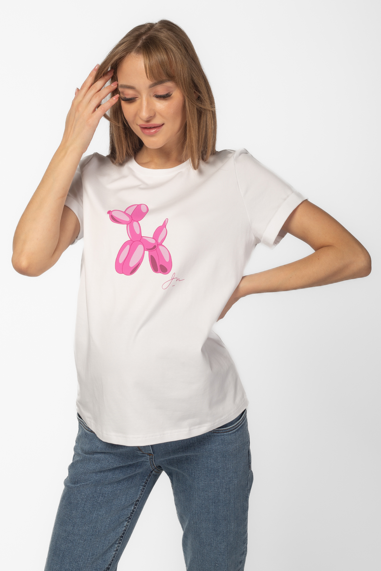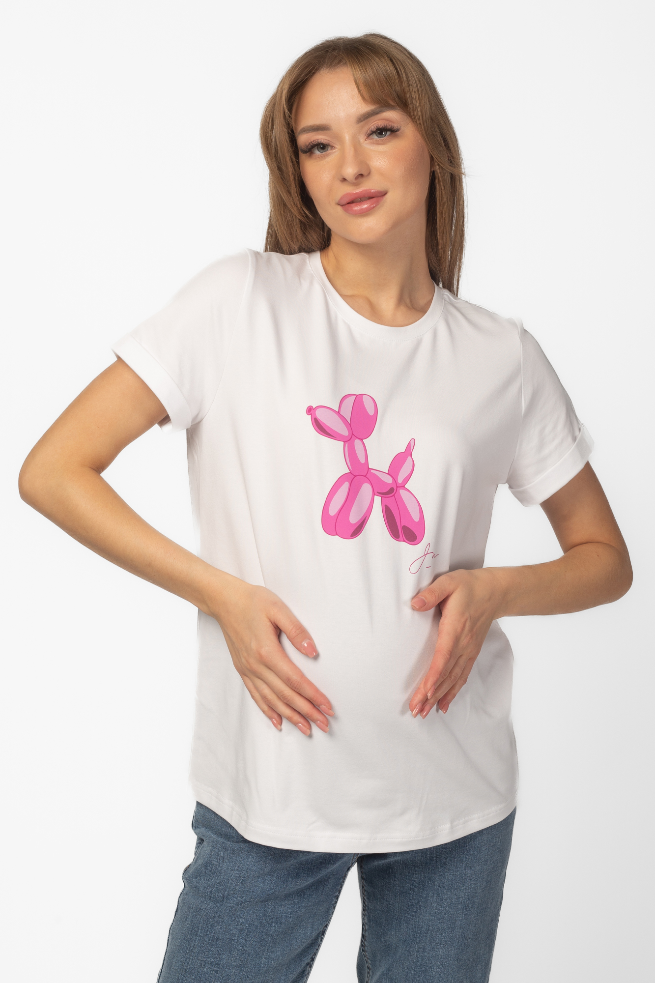 Футболка для беременных 13759 белый принт розовая собака