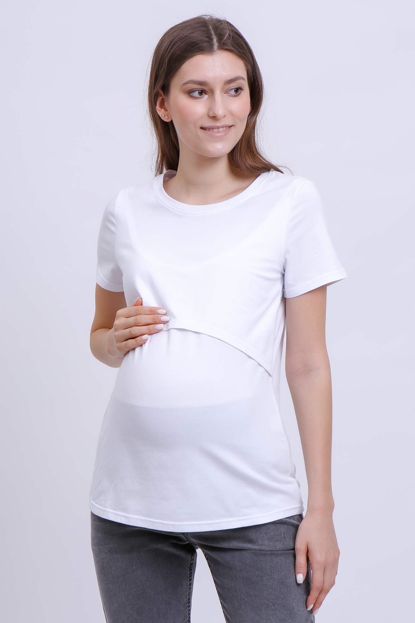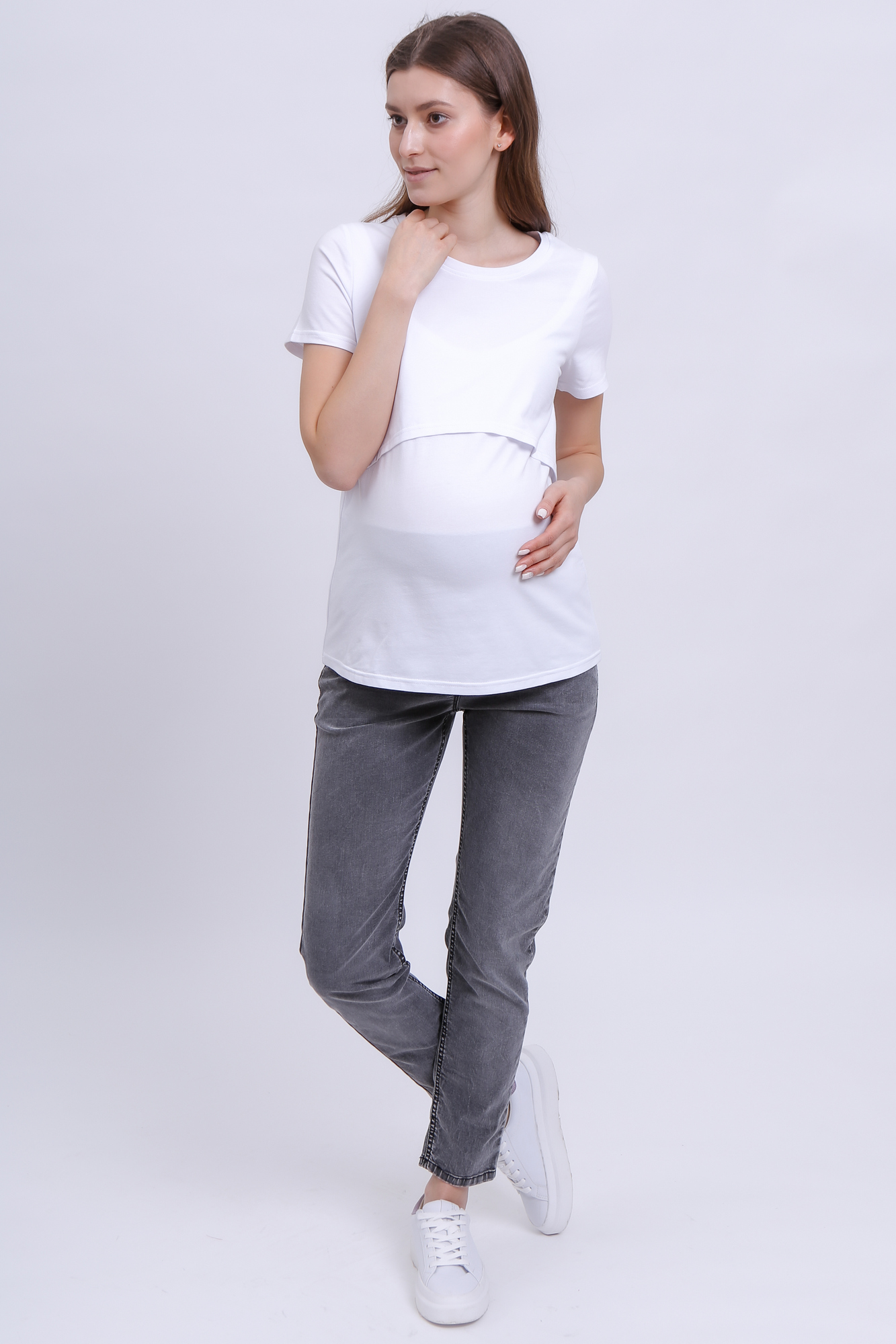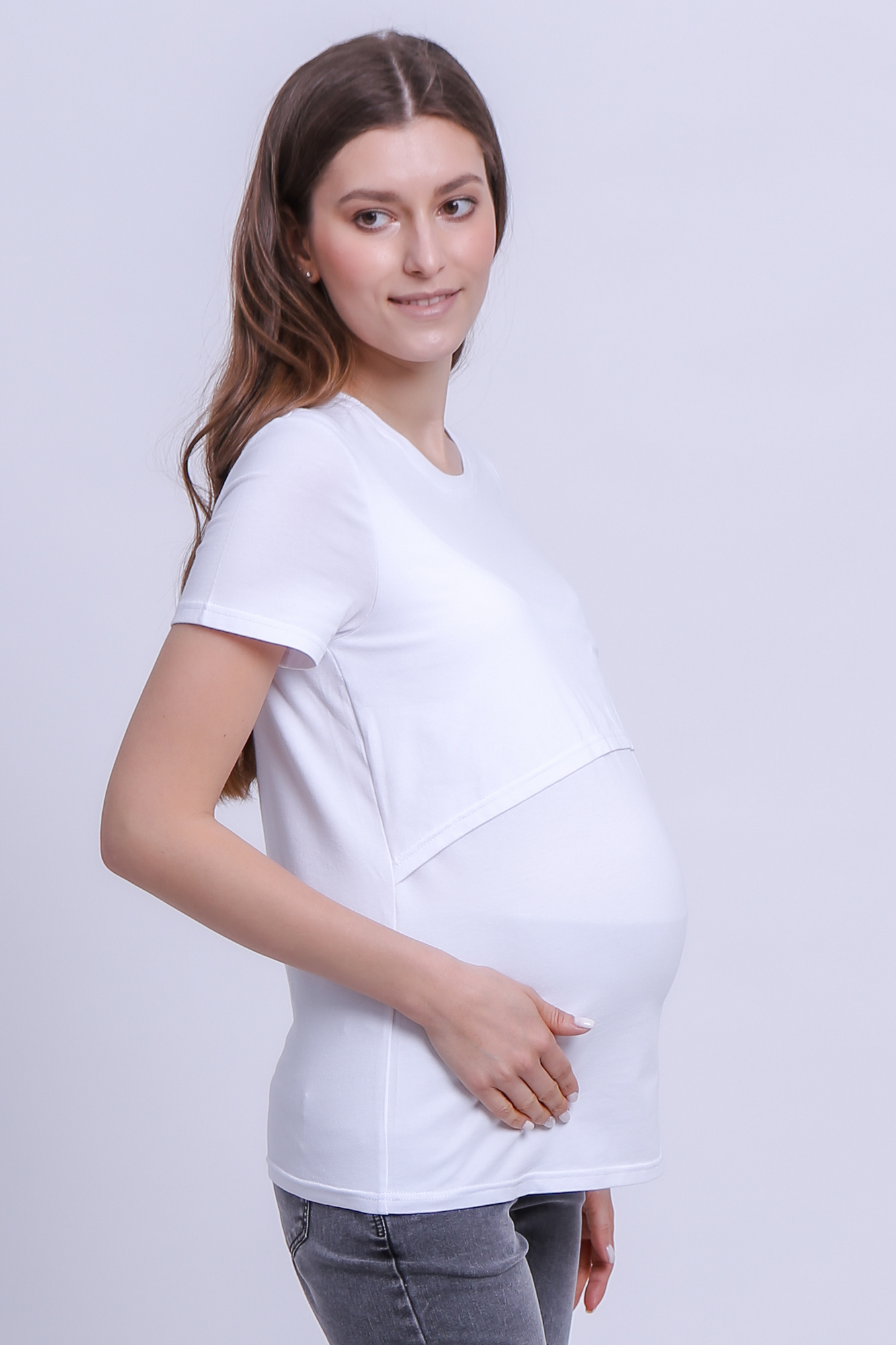Приталенная футболка из хлопка для беременных и кормящих. Благодаря сборкам по бокам, можно носить футболку на любом сроке беременности и после нее. Секрет кормления позволяет комфортно покормить малыша в любой ситуации.