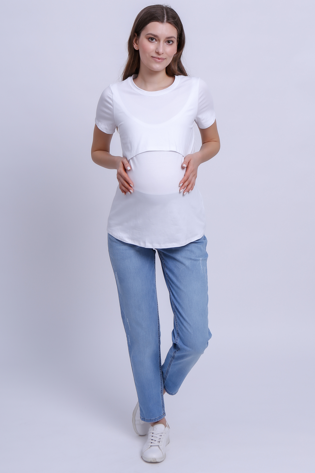Приталенная футболка из хлопка для беременных и кормящих. Благодаря сборкам по бокам, можно носить футболку на любом сроке беременности и после нее. Секрет кормления позволяет комфортно покормить малыша в любой ситуации.