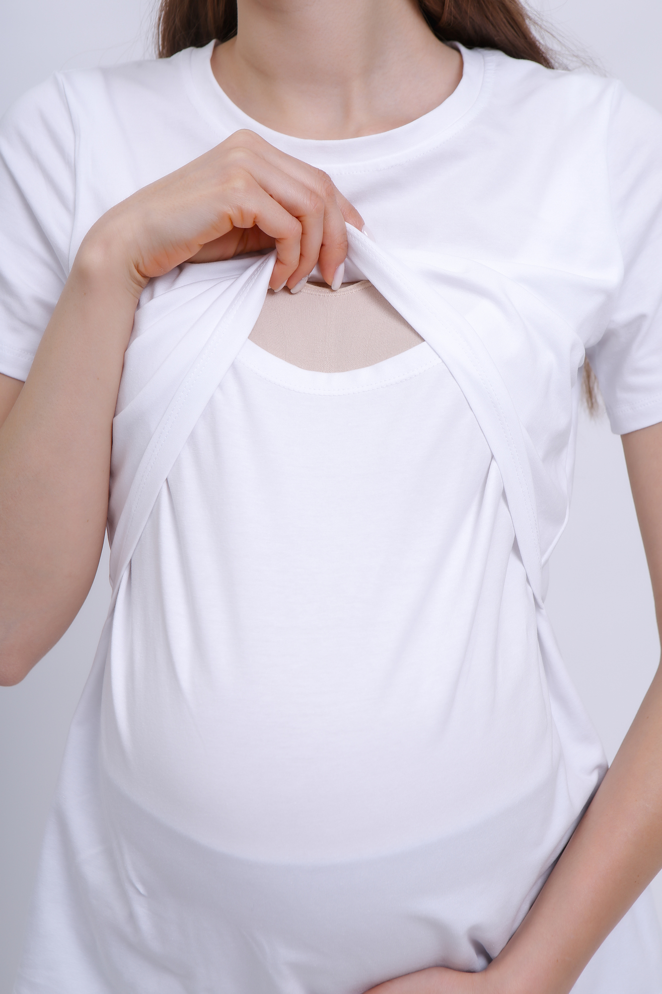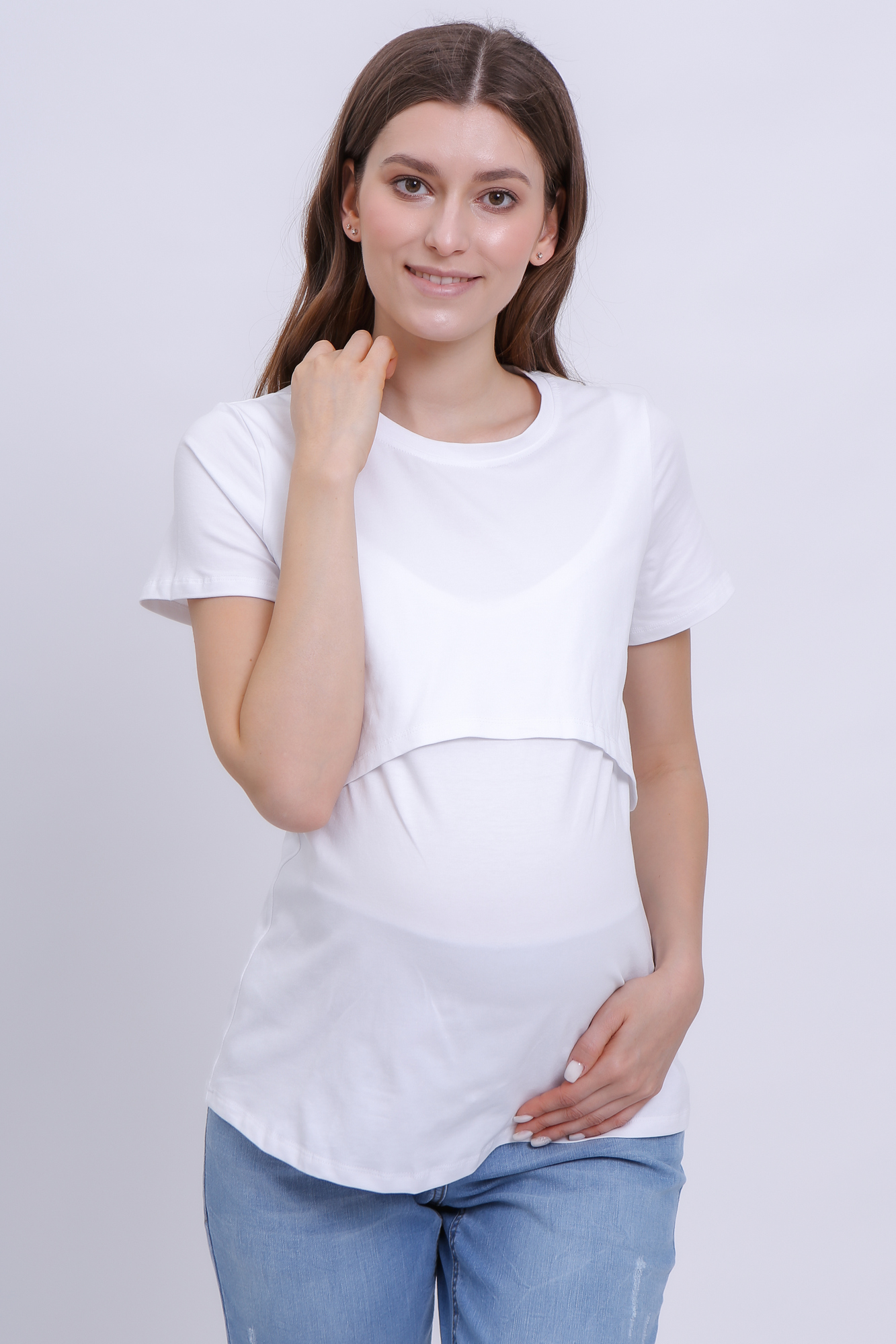 Футболка для беременных и кормящих 10590 белый б/принта