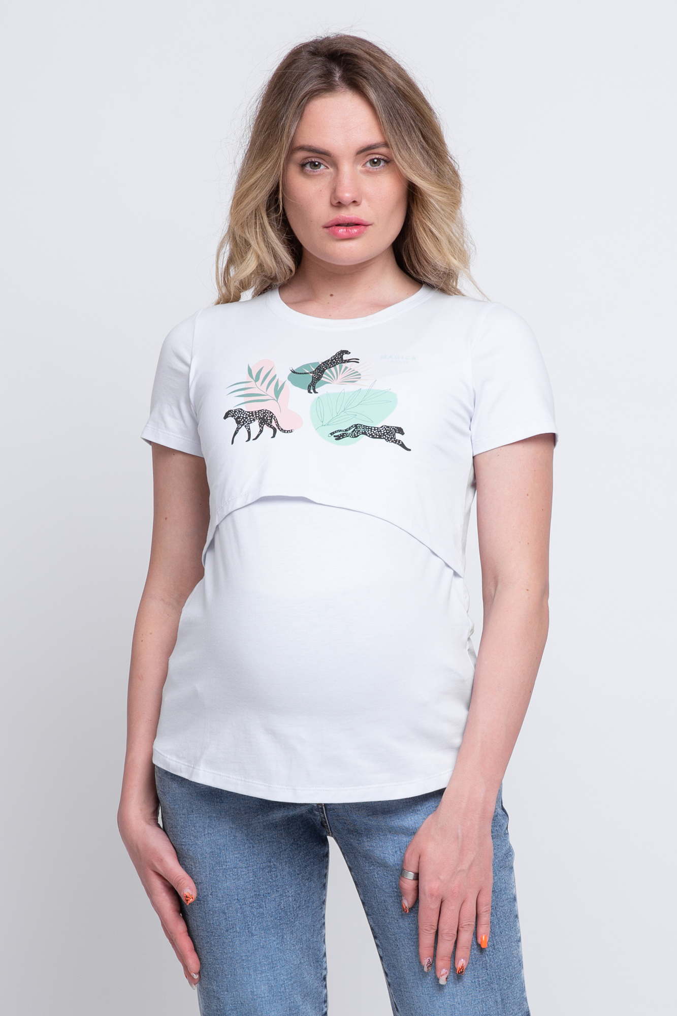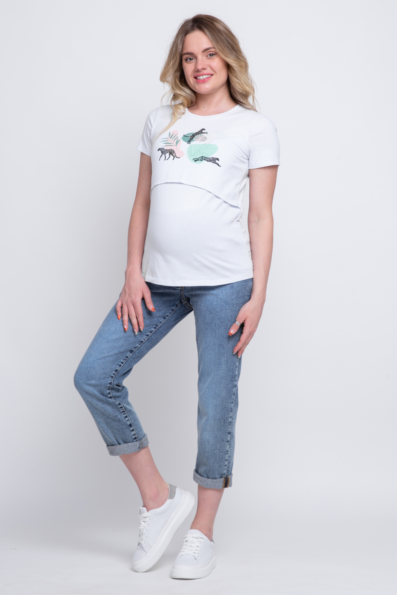 Футболка для беременных и кормящих 10590 белый/принт