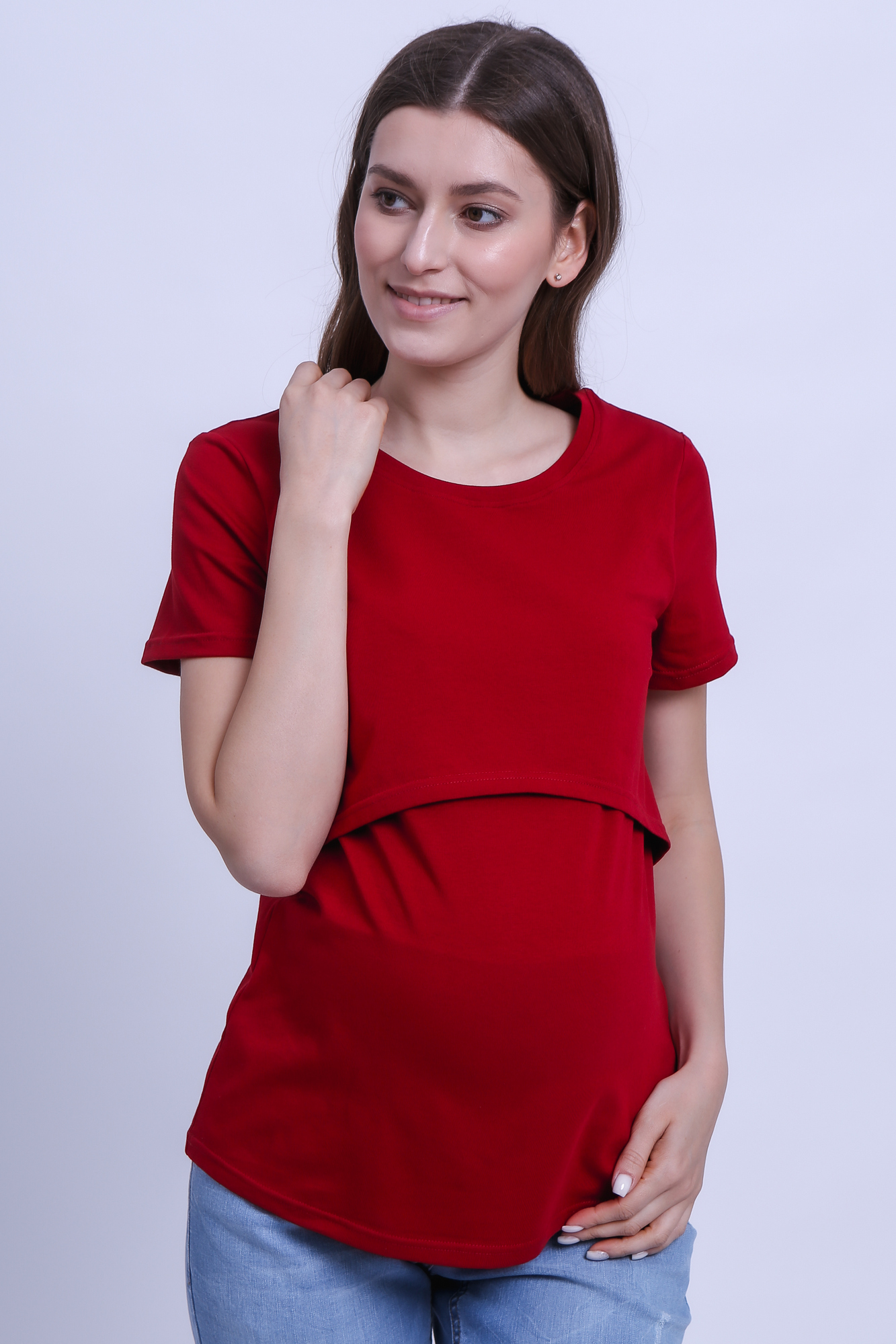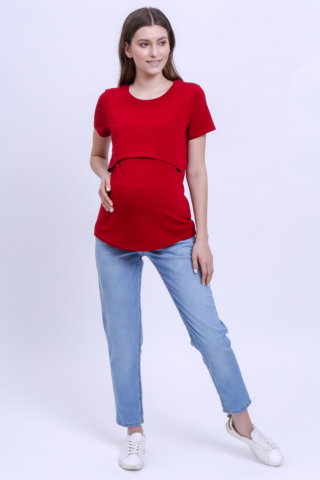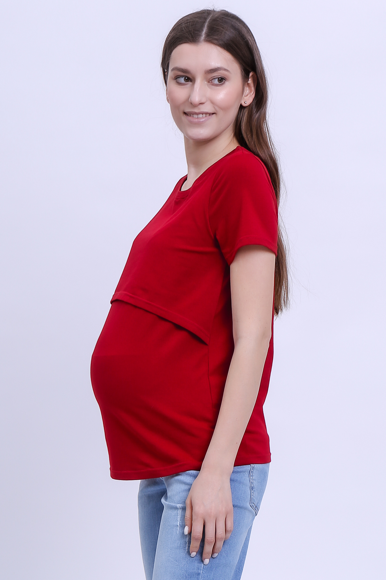 Приталенная футболка из хлопка для беременных и кормящих. Благодаря сборкам по бокам, можно носить футболку на любом сроке беременности и после нее. Секрет кормления позволяет комфортно покормить малыша в любой ситуации.