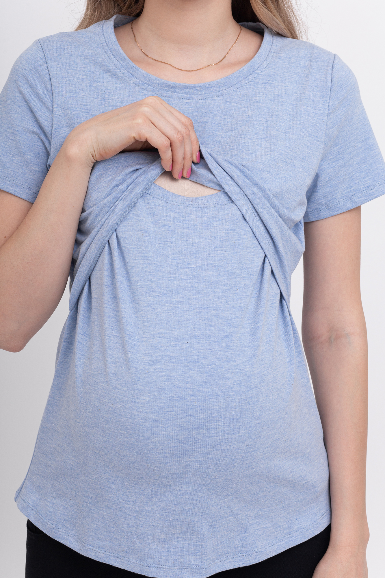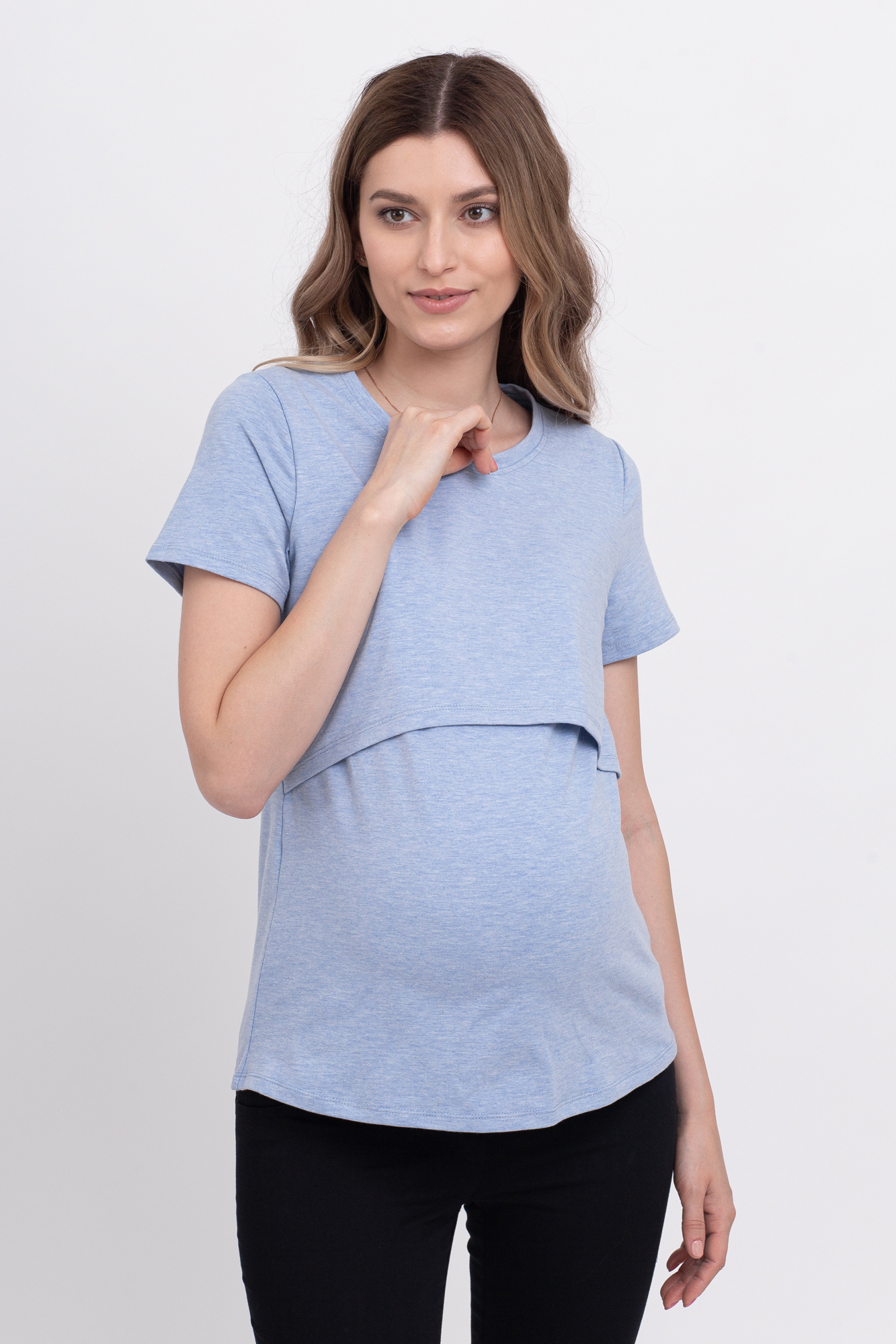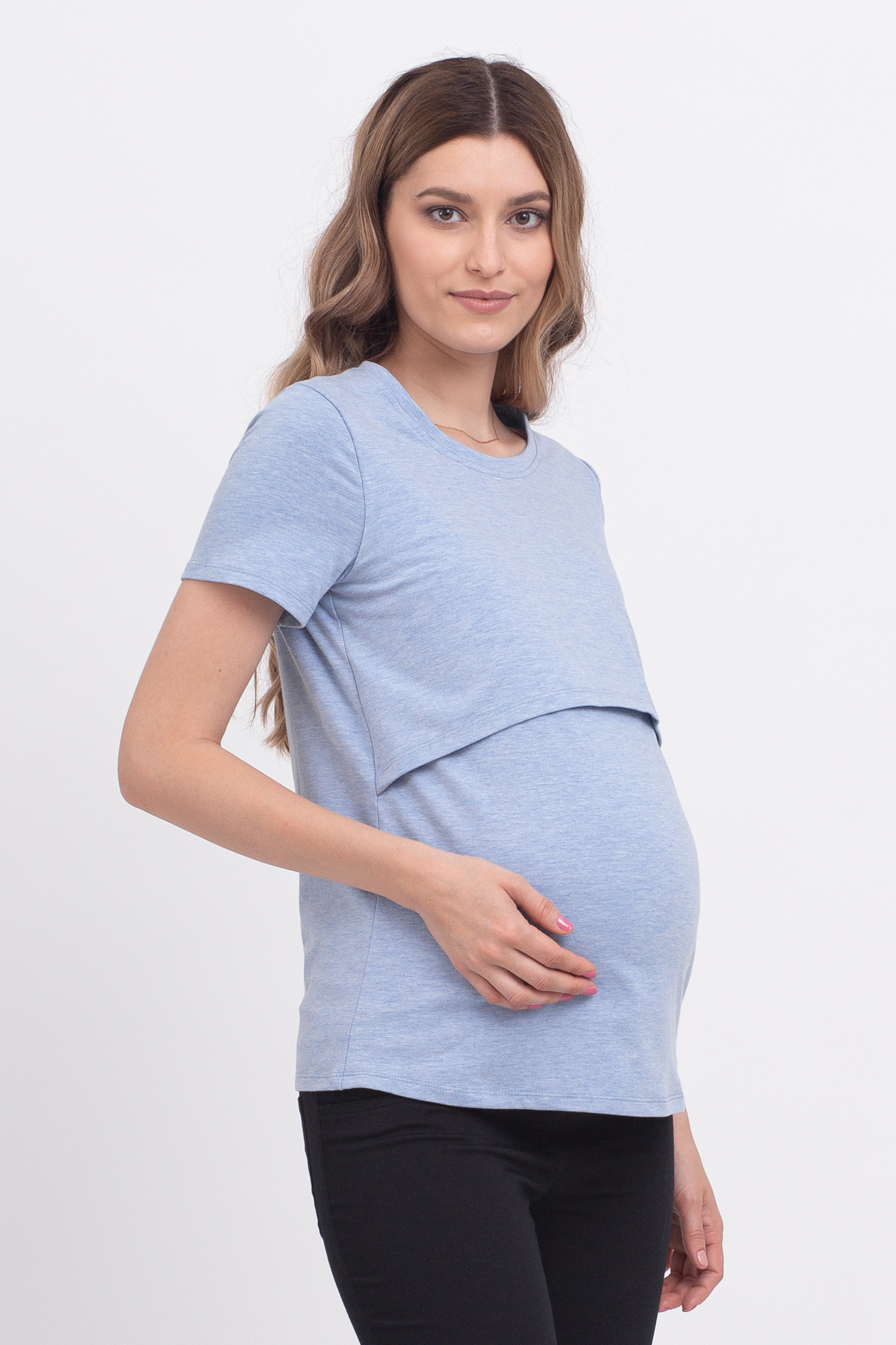 Футболка для беременных и кормящих 10590 голубой без принта