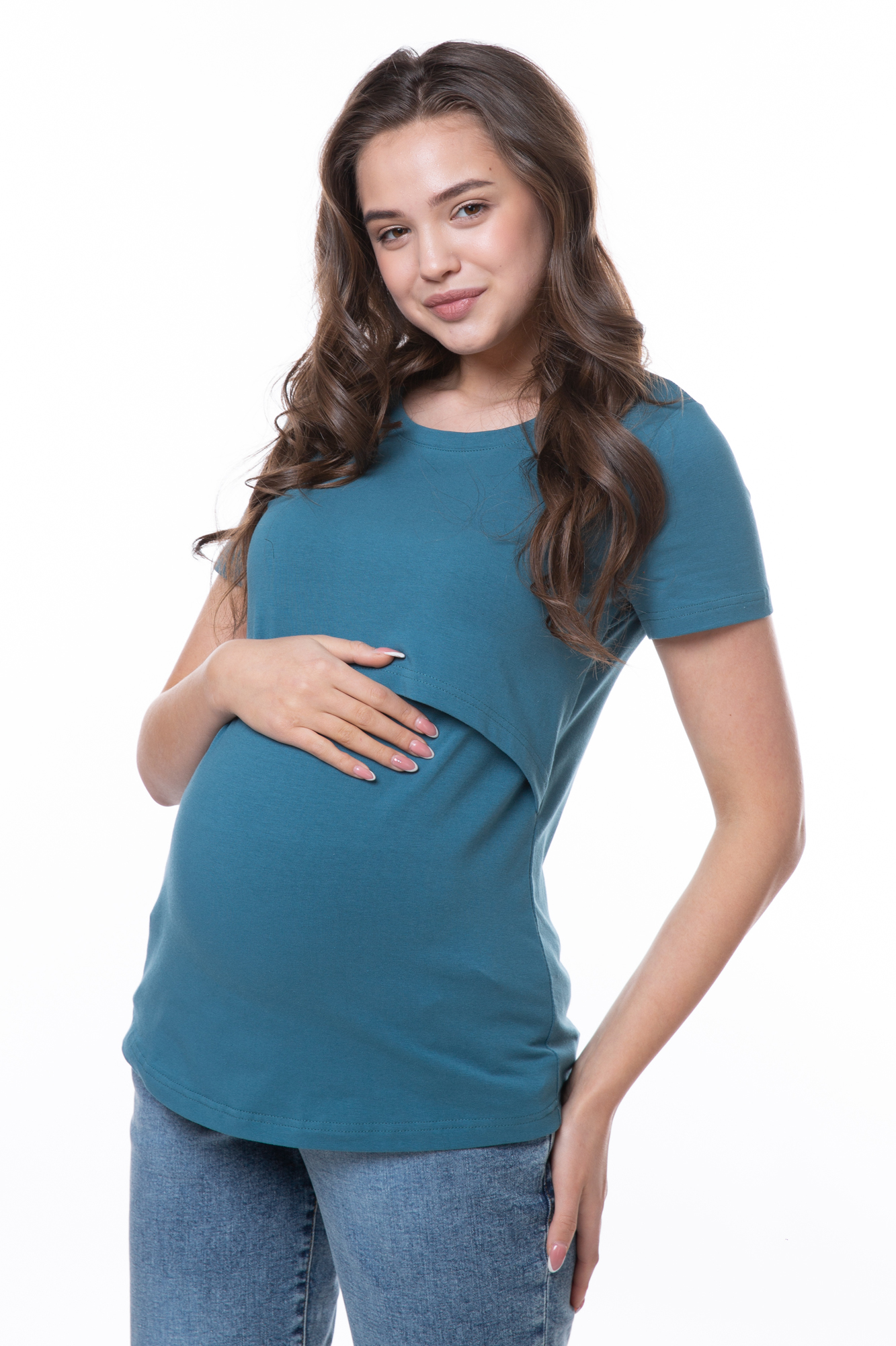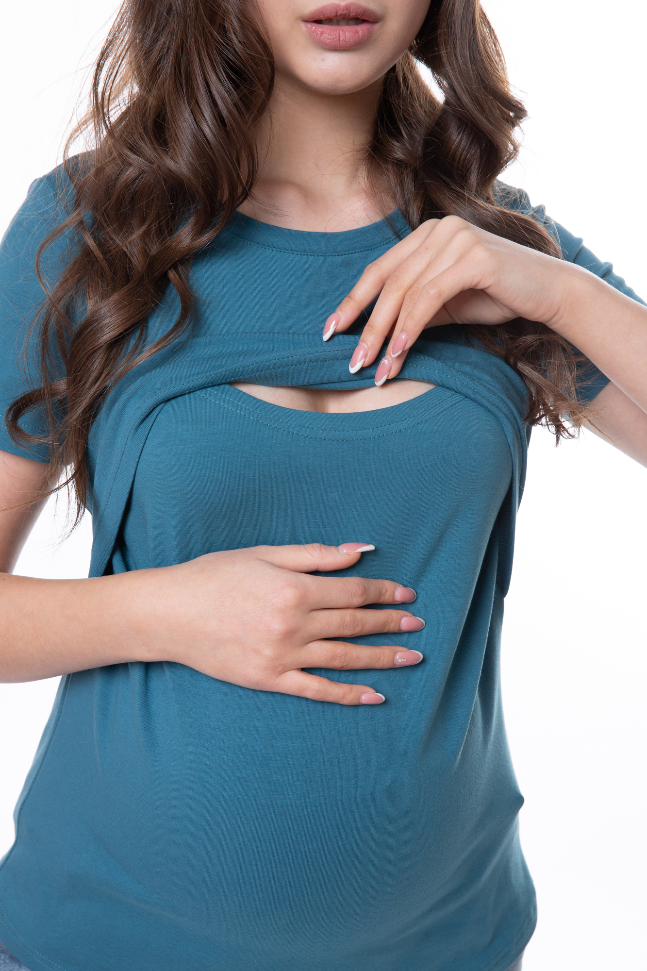Приталенная футболка из хлопка для беременных и кормящих. Благодаря сборкам по бокам, можно носить футболку на любом сроке беременности и после нее. Секрет кормления позволяет комфортно покормить малыша в любой ситуации.