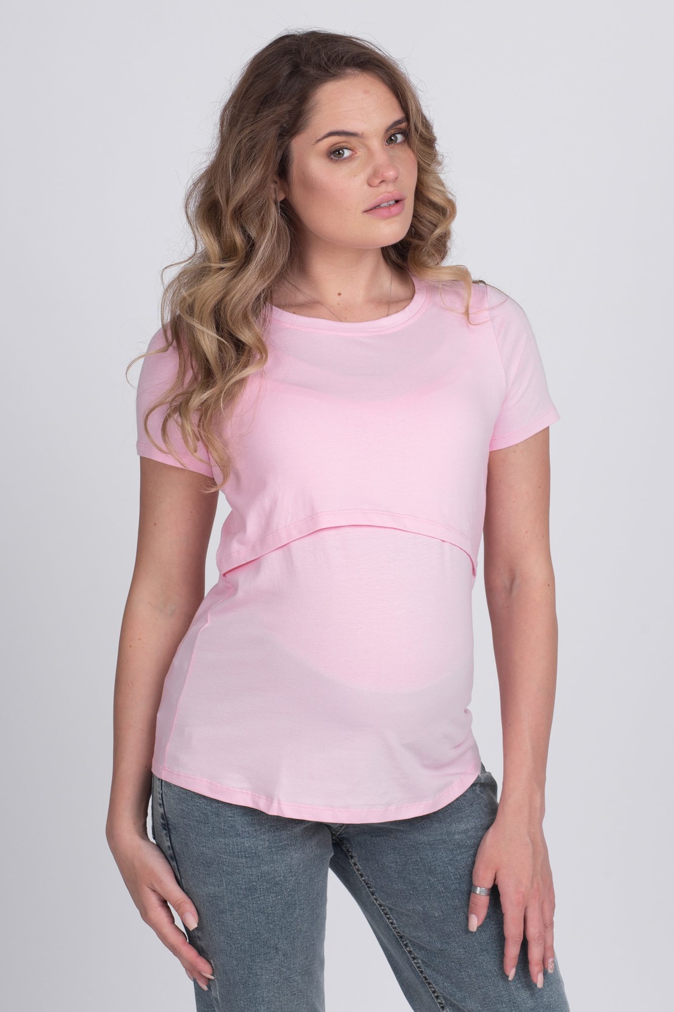 Приталенная футболка из хлопка для беременных и кормящих. Благодаря сборкам по бокам, можно носить футболку на любом сроке беременности и после нее. Изящный принт не смывается при стирке. Секрет кормления позволяет комфортно покормить малыша в любой ситуации.