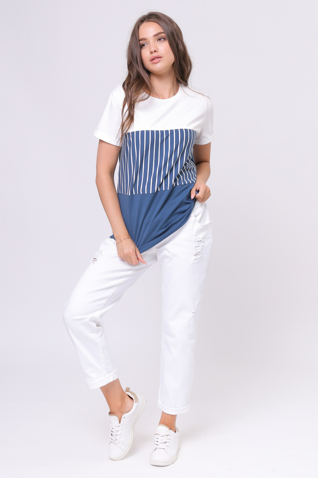 Футболка для беременных и кормящих в модном стиле Колорблок. Особый крой обеспечивает идеальную посадку на всем протяжении беременности и после родов. Благодаря горизонтальным потайным молниям можно покормить малыша с комфортом в любой ситуации.