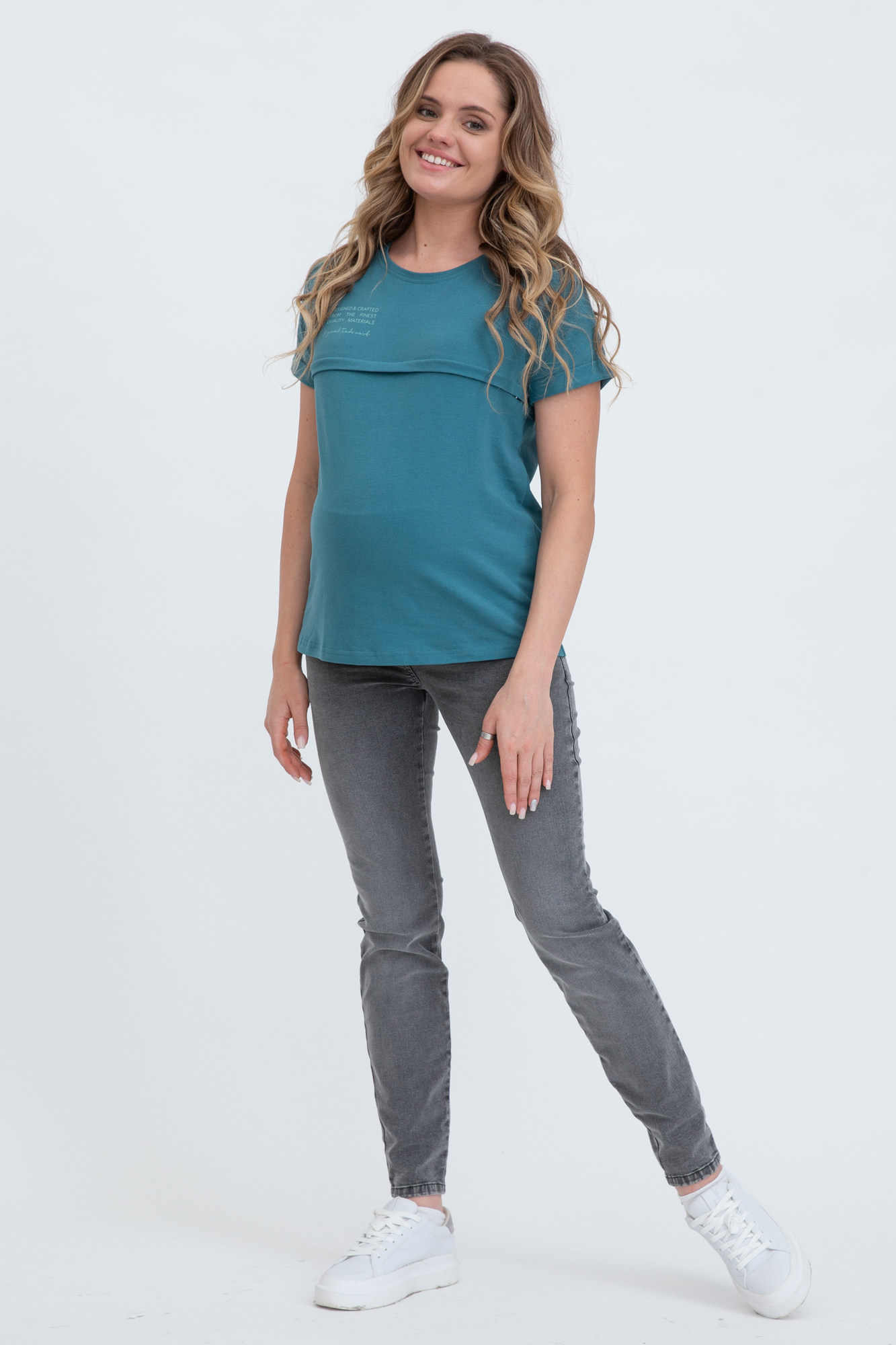 Футболка для беременных и кормящих из высококачественного хлопкового трикотажа. Особый крой обеспечивает идеальную посадку на всем протяжении беременности и после родов. Благодаря горизонтальным потайным молниям можно покормить малыша с комфортом в любой ситуации.